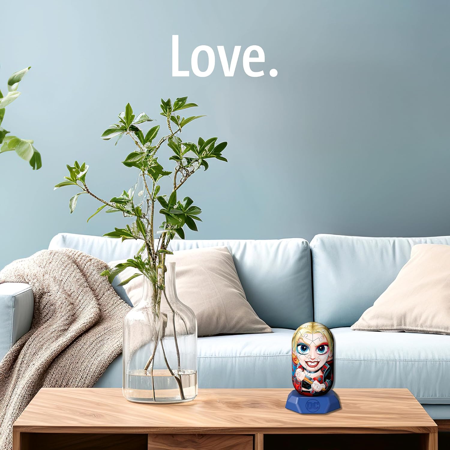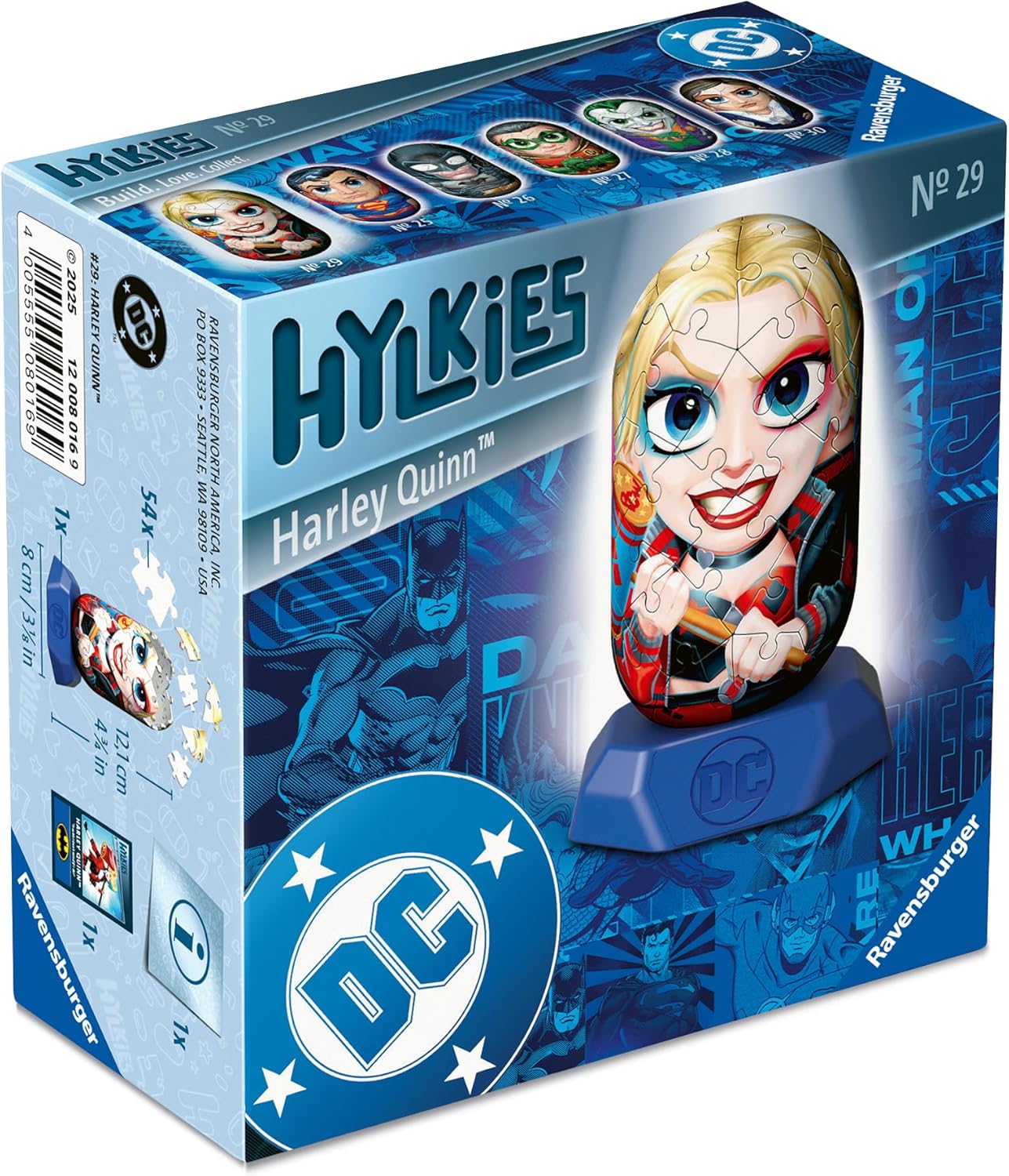 Hylkies Collectible Figure #29 - Harley Quinn: l'anarca psicotico si unisce alla linea di personaggi Hylkies DC in un affascinante modo Hylkies. La figura di Hylkies Harley Quinn si adatta perfettamente alle altre figure della serie Hylkies. Le piccole figure non sono solo una fantastica decorazione DC, ma anche fantastici regali di supereroi DC. Le adorabili capsule Hylkie sono assemblate da soli: da 54 parti di alta qualità numerate sul retro - e senza colla. Innamorati di nuovo dei tuoi eroi cinematografici più famosi e mostra al mondo che sei un grande fan. Sia come pezzo singolo che come parte di una collezione, gli Hylkies sono il punto forte su ogni scaffale. Contenuto: 1 carta collezionabile, 54 pezzi di puzzle in plastica a forma tridimensionale numerati sul retro, supporto in plastica, istruzioni rapide. Dimensioni del prodotto montato incluso supporto (AxLxP): ca. 12,5 cm x 7,7 cm x 8 cm. Diametro della capsula ca. 6 cm