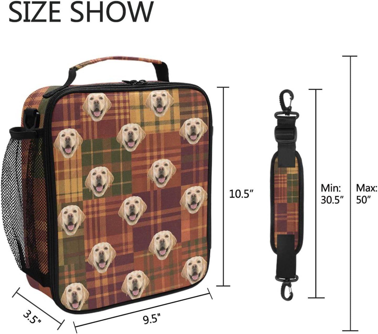 Personalizzato e personalizzato: fai clic su "Personalizza ora", quindi aggiungi un'immagine di tua scelta. Fai un regalo dedicato per qualcuno che ami e a cui tieni. È un regalo perfetto per donne/uomini. Dimensioni: 26 x 8 x 24 cm. Questa borsa per il pranzo ha una capacità sufficiente per gli studenti per portare il pranzo a scuola, impiegati, gite, picnic o escursioni, ecc. Non adatta a bambini di età inferiore ai 3 anni! Materiale: tessuto Oxford 300D + pellicola in alluminio di alta qualità. Caratteristiche del design: una borsa principale, con pellicola di alluminio termoisolante di alta qualità all'interno, svolge un ruolo molto buono nella conservazione del calore. Le tasche laterali in rete sono comode per evitare oggetti come bottiglie d'acqua, ombrelli, ecc. Buon utilizzo: la struttura in tessuto di alta qualità rende questa piccola borsa per il pranzo resistente e facile da pulire. La temperatura può essere mantenuta a lungo, migliorando così la qualità degli alimenti, la freschezza e il gusto e mantenendo il pasto sano. Garanzia: forniamo borse per il pranzo di qualità affidabile, una varietà di colori e modelli, si prega di essere certi di acquistare!