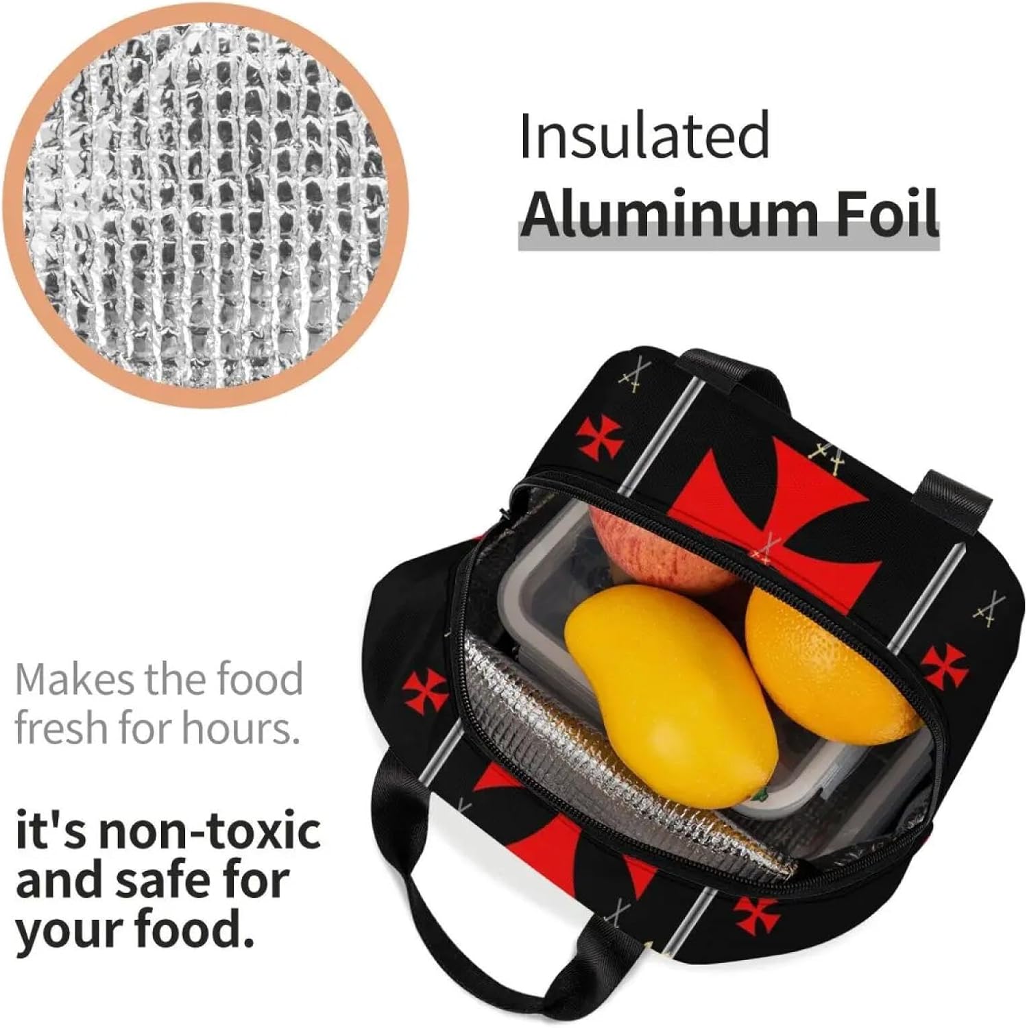 Personalizzato Cavalieri Templari Croce Scudo Simbolo Isolato Pranzo Borse per Le Donne Portatile Dispositivo di Raffreddamento Termico Cibo Pranzo Scatola Scuola Bambini