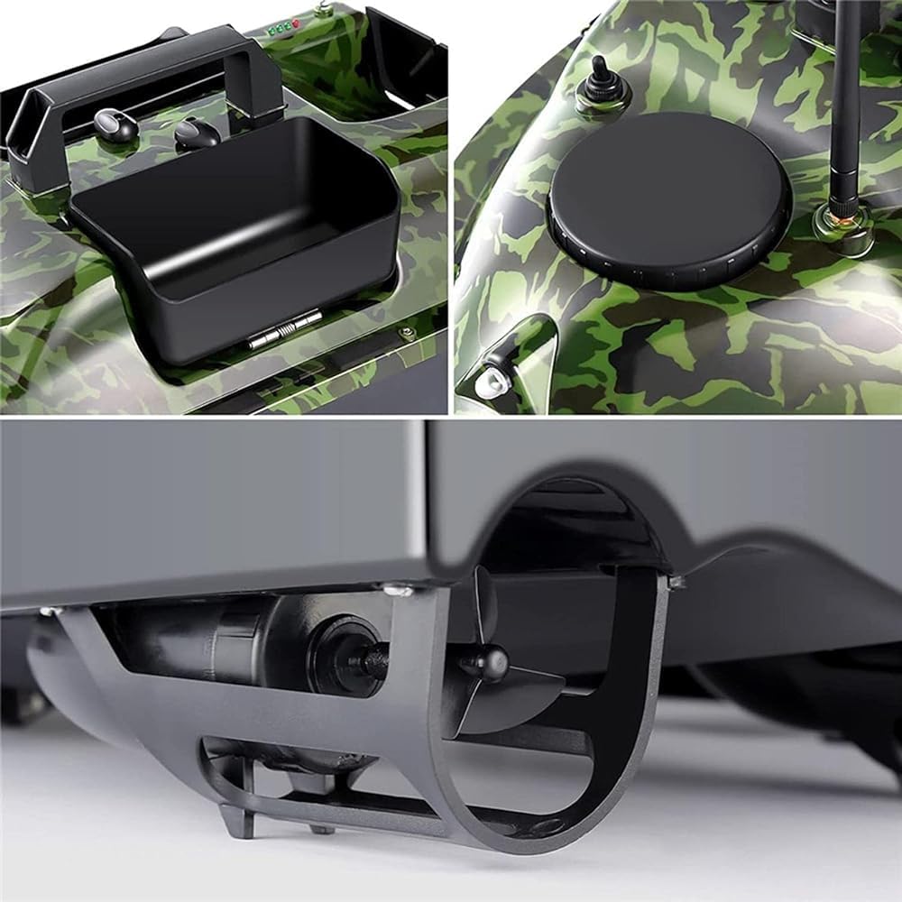 (Ecoscandaglio intelligente): la nostra barca feeder è dotata di un sonar fishfinder wireless. L'imbarcazione radiocomandata può trasportare esca, amo e rilevatore nei punti di pesca contrassegnati. Osservando lo schermo LCD dell'ecoscandaglio, è possibile vedere chiaramente il profilo del fondale e la distribuzione dei pesci. La profondità di rilevamento è compresa tra 0,6 e 45 m. Ideale per la pesca sul ghiaccio, in fiume, in mare, in kayak, ecc. (Telecomando GPS): la barca radiocomandata è stata potenziata dalle 4 postazioni di pesca originali a 16 postazioni di pesca, in base al posizionamento GPS. La barca radiocomandata può spostarsi tra 16 postazioni di pesca. In caso di perdita di segnale o prestazioni ridotte, non c'è da preoccuparsi: la barca radiocomandata torna automaticamente al punto di partenza e lo schermo LCD può visualizzare la carica della batteria, la bussola e la posizione della barca! (Sistema di crociera automatico): se il gommone avanza e non è necessario cambiare direzione, è possibile attivare la crociera automatica tramite il telecomando per avere le mani libere. Inoltre, il gommone è dotato di un giroscopio integrato che stabilizza la fusoliera e corregge automaticamente la direzione di crociera, in modo che il gommone mantenga la rotta originale anche in presenza di vento e onde. (Adattabile a una varietà di ambienti): la barca di alimentazione è dotata di due motori ed eliche per la propulsione. L'elica è dotata di una copertura protettiva per impedire l'aspirazione di alghe. Inoltre, la barca di alimentazione è realizzata in materiale ABS, ha una struttura monoblocco completamente chiusa, uno scafo anticollisione e la fusoliera è dotata di luci a LED, in modo che la posizione della barca possa essere individuata chiaramente anche di notte. (Batteria al litio ad alte prestazioni): la barca di alimentazione è alimentata da una batteria al litio da 5200 mAh. Può essere caricata separatamente ed è facile da installare. Dopo ogni carica completa, la batteria da 5200 mAh può essere utilizzata per circa 2-3 ore. Il metal detector può essere ricaricato tramite USB. È possibile scegliere un numero diverso di batterie tampone in base alle proprie esigenze.