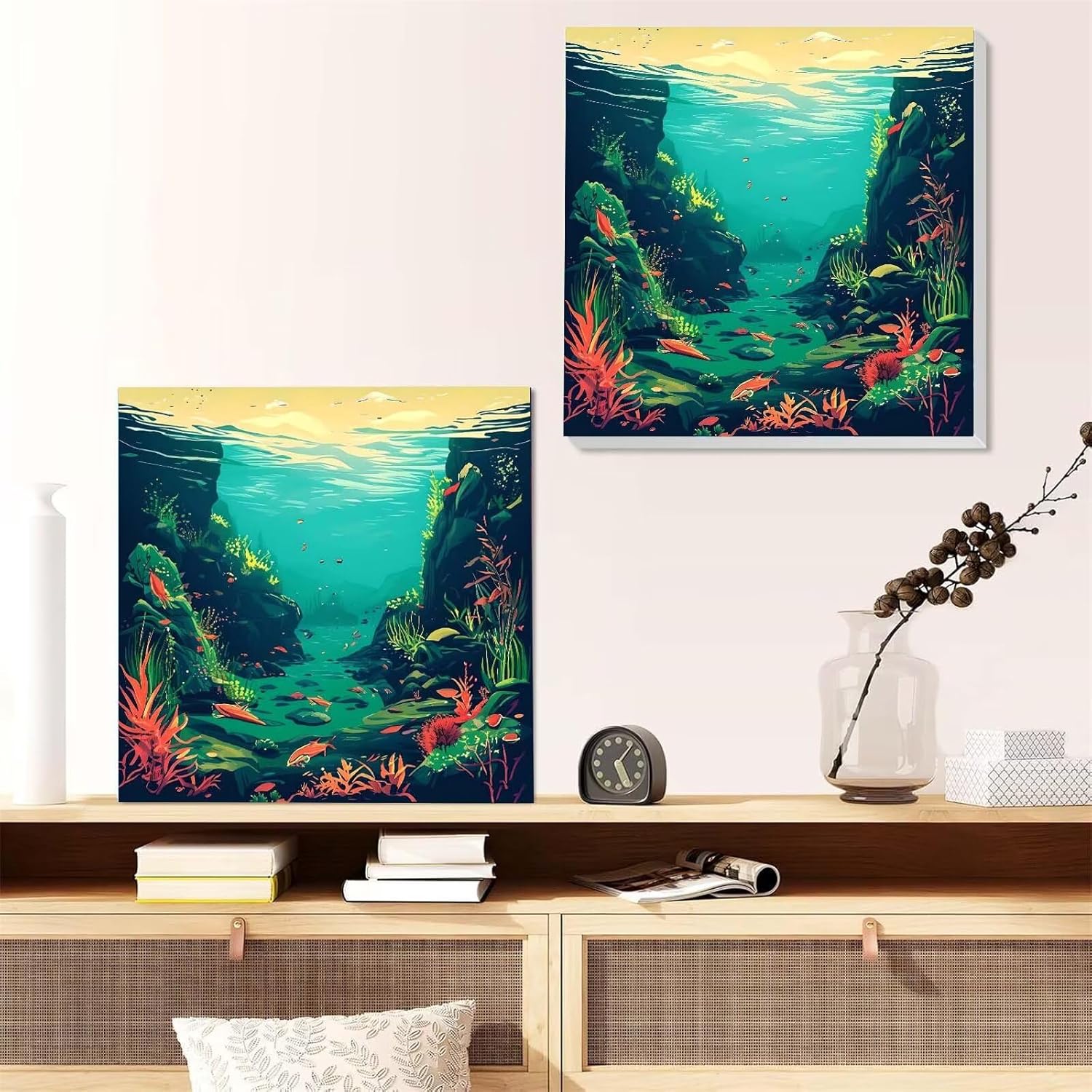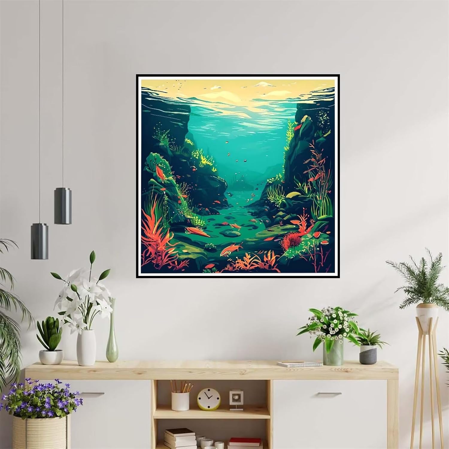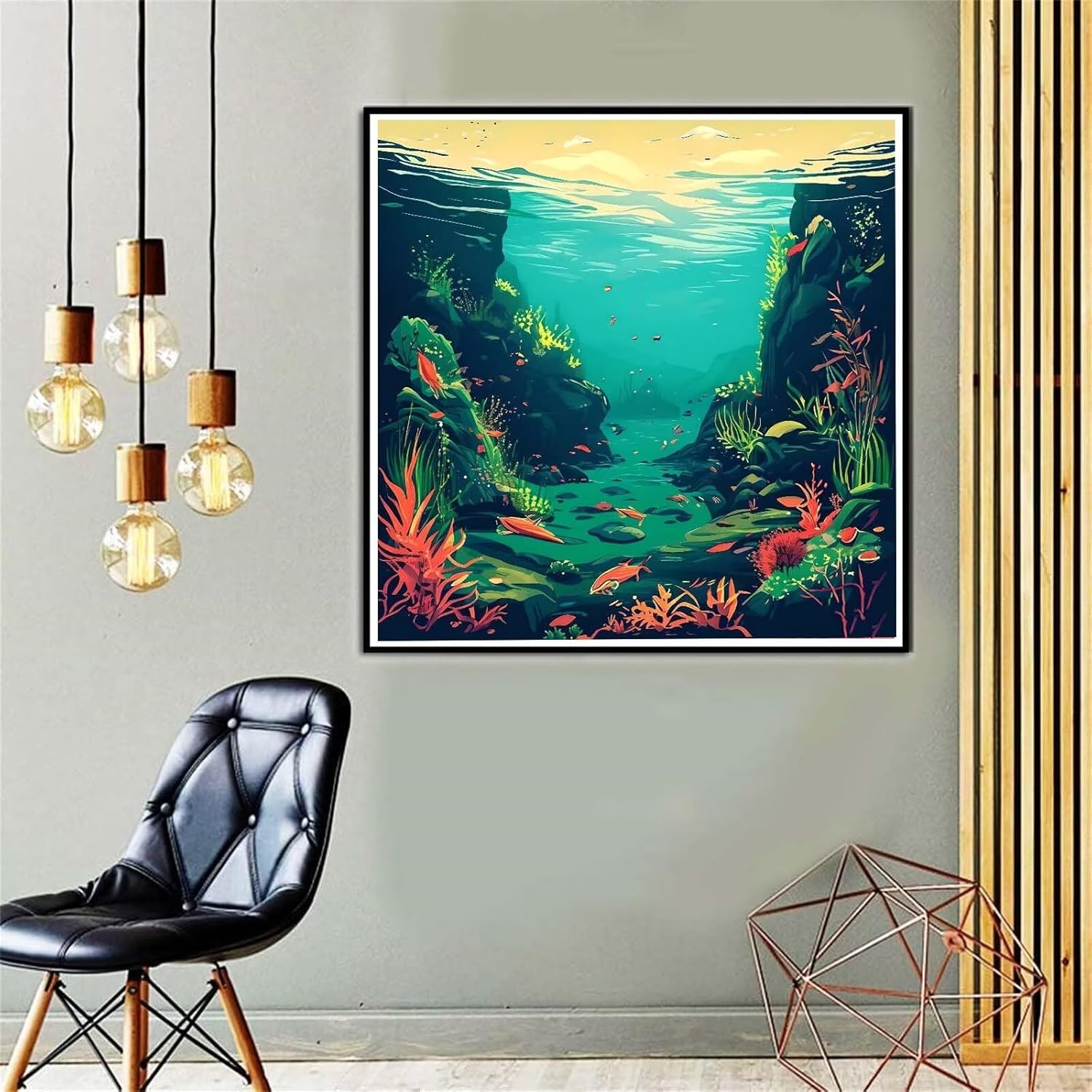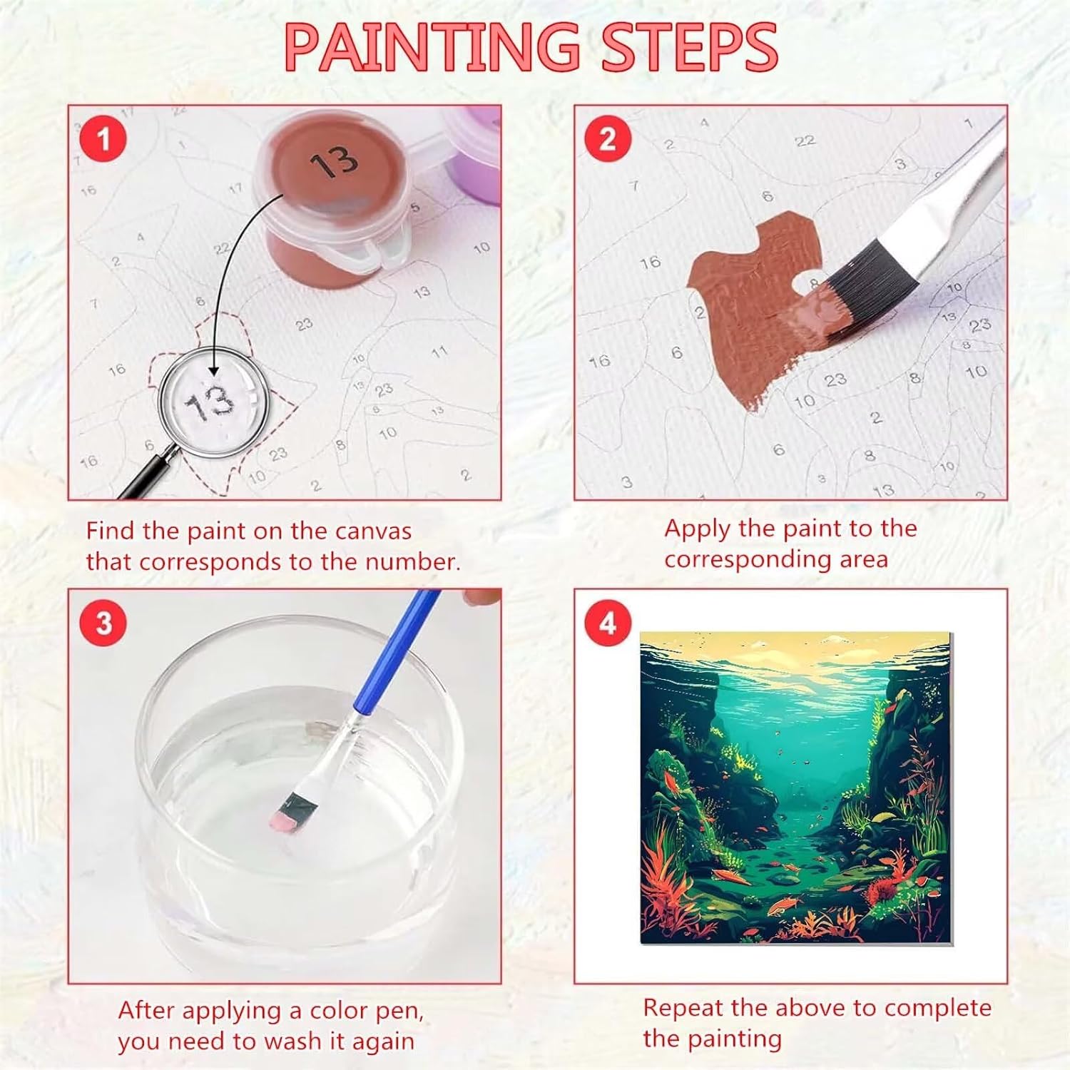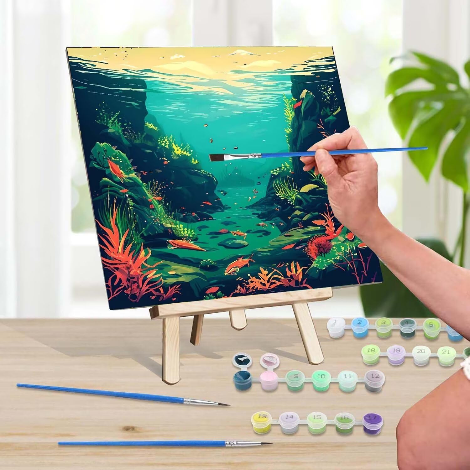Pesce dell'oceano Dipingere con i Numeri per Adulti, Quadri da Dipingere Numerati, Dipingere con i Numeri per Adulti, Kit di Pittura a Olio su Tela DIY per Decorazione della Casa 40x40cm U-3361