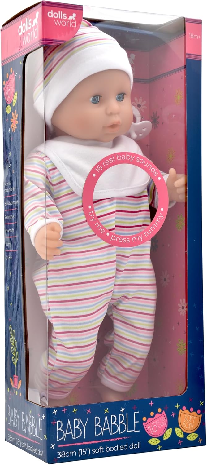 Questa bambola Miecz: la serie Dollsword entusiasma i più piccoli da oltre 30 anni. Ogni bambola offre un'esperienza di gioco di ruolo realistica, incoraggiando le capacità di cura e di cura, l'interazione sociale e l'empatia. Bambino: bellissima bambola morbida da 15 pollici con 16 suoni del bambino nella vita reale. Completo di lusso Sleepy Eyes e ciuccio Suoni interattivi: include 16 suoni realistici per bambini Coccole: Baby Babble ha un corpo super morbido, che lo rende perfetto per le coccole. L'ora della nanna: Baby Babble ha gli occhi assonnati che si chiudono quando lo metti addosso, così puoi metterlo sul letto e dormirà come un vero bambino