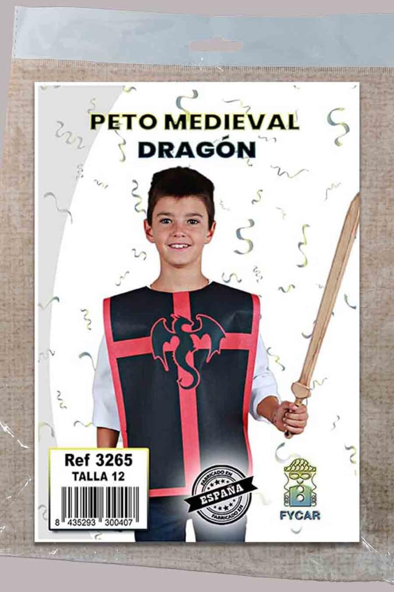 Descrizione prodotto Pettorale drago medievale per bambini, in rosso e nero. Disponibile in diverse dimensioni. Spada di legno non inclusa. Avviso di sicurezza Utilizzare con cautela