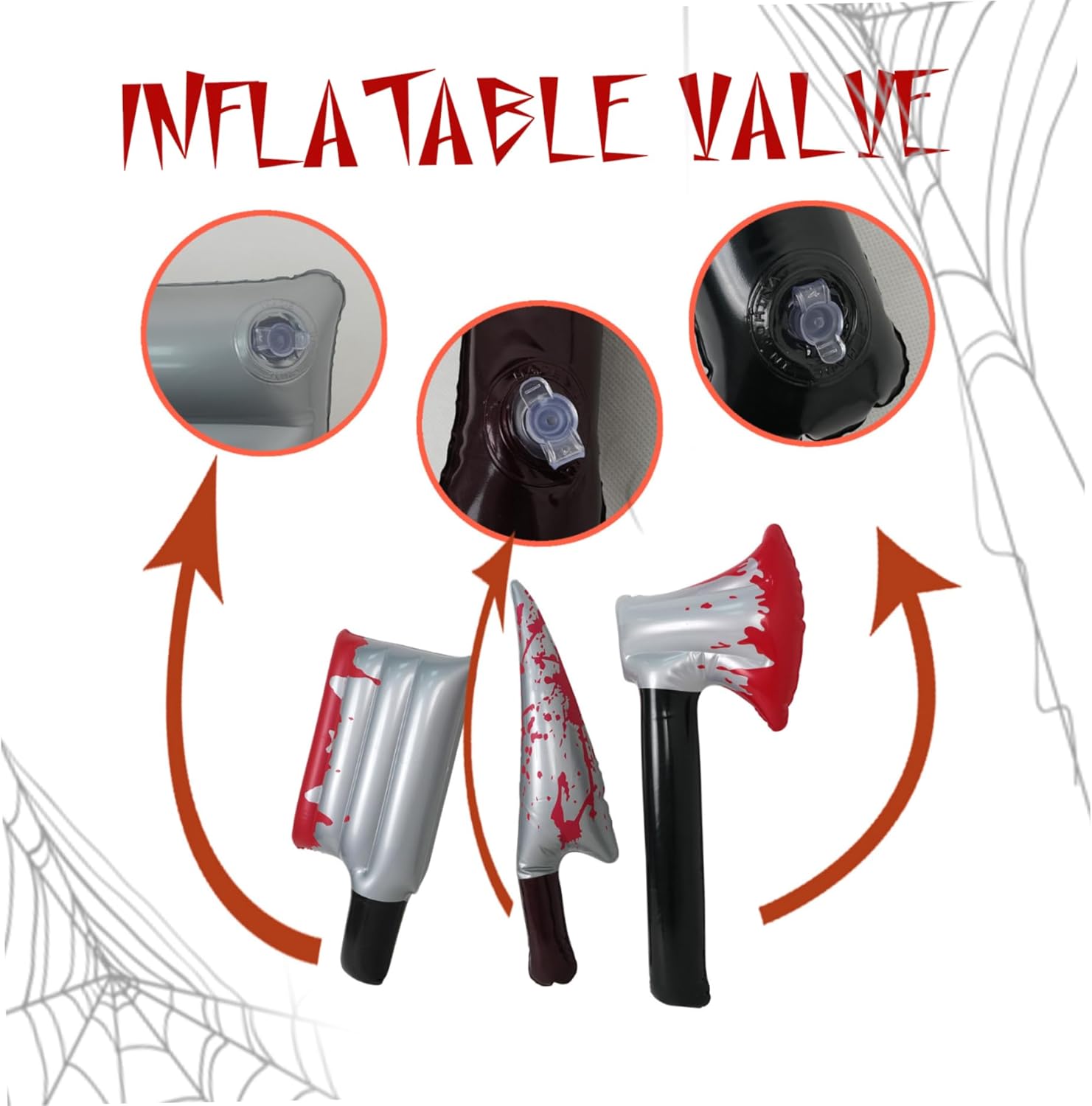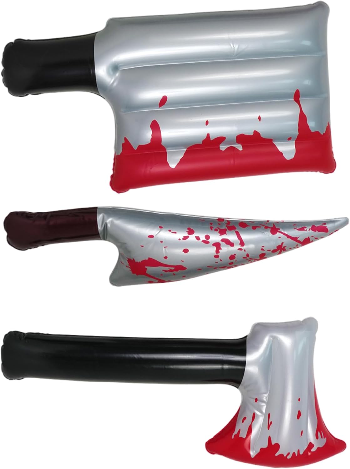 Versatile per feste e cosplay: perfetto per feste di Halloween, eventi a tema, case infestate e cosplay, questi assi falsi gonfiabili migliorano l'atmosfera e completano i costumi senza soluzione di continuità..Oggetti di scena di Halloween Articoli di Halloween realistici: questi set da 3 pezzi presentano assi e coltelli simulati da 16 pollici, aggiungendo autentiche vibrazioni horror alle tue decorazioni di Halloween e spettacoli di cosplay..Il design dettagliato garantisce effetti inquietabili inquietabili..ASSE Lightweight e portatile: gli oggetti di scena gonfiabili sono facili da trasportare e archiviare se sgonfiati, rendendoli altamente convenienti per eventi, servizi fotografici e spettacoli senza la maggior parte degli oggetti di scena tradizionali..Oggetti di scena gonfiabili Effetti del sangue accattivanti: una vivida simulazione di sangue rosso sulle pale aumenta l'estetica spaventosa, attirando l'attenzione e rendendo le tue decorazioni o costumi più sorprendenti e memorabili sia per gli ospiti che per il pubblico..Ascia falsa Design gonfiabile sicuro: realizzato in materiale in PVC stabile e leggero con una valvola facile per un'inflazione e una deflazione rapida, questi oggetti di scena sono sicuri sia per uso interno che esterno, rendendo la configurazione e lo stoccaggio senza problemi..Ascia giocattolo
