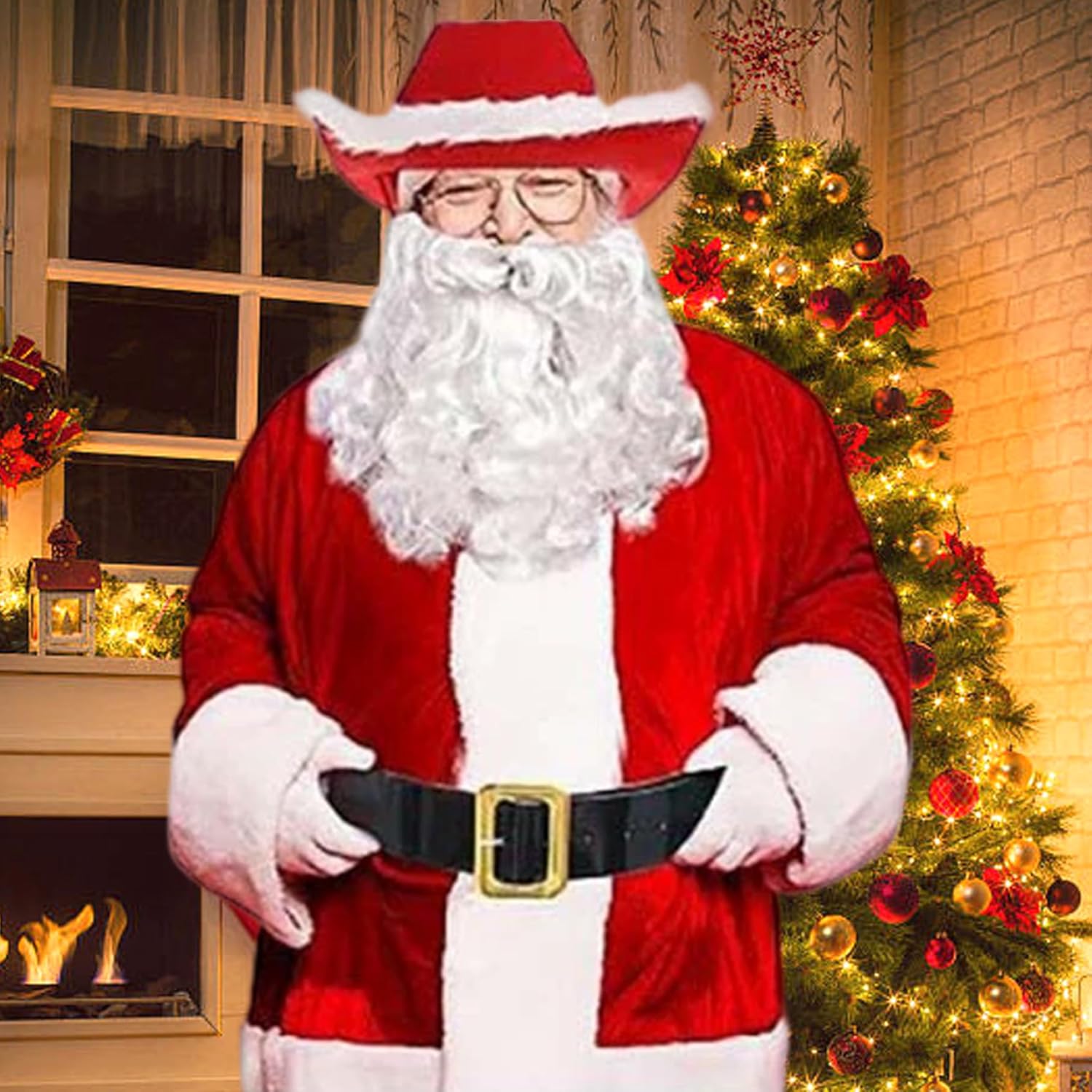 Vestibilità comoda: la cintura regolabile e le dimensioni flessibili del cappello garantiscono comfort durante l'uso prolungato in occasione di feste, cosplay o eventi stagionali. Costume da Babbo Natale con barba da Babbo Natale Costume da Babbo Natale per uomo adulto Autentico look da Babbo Natale: realizzato con materiali morbidi e morbidi per imitare il classico costume da Babbo Natale che gli uomini adulti aspettano per spettacoli natalizi di alta qualità..Costume da Babbo Natale Costume da Babbo Natale per uomo adulto Costume da Babbo Natale per uomo adulto Set festivo da 5 pezzi: include cappello da Babbo Natale, barba, occhiali, guanti e cintura per un'esperienza di costume natalizia completa progettata sia per uomini che per donne..Costume da Babbo Natale per uomo adulto Abito da Babbo Natale per uomo adulto Abito da Babbo Natale Uso versatile: perfetto per cosplay natalizi, spettacoli festivi, feste a tema ed eventi promozionali, migliorando lo spirito festivo..Costume da Babbo Natale per adulti da uomo Stabile e riutilizzabile: realizzato con materiali robusti che resistono a molteplici usi e facili da pulire, fornendo un valore duraturo durante molte festività natalizie..Vestito da Babbo Natale