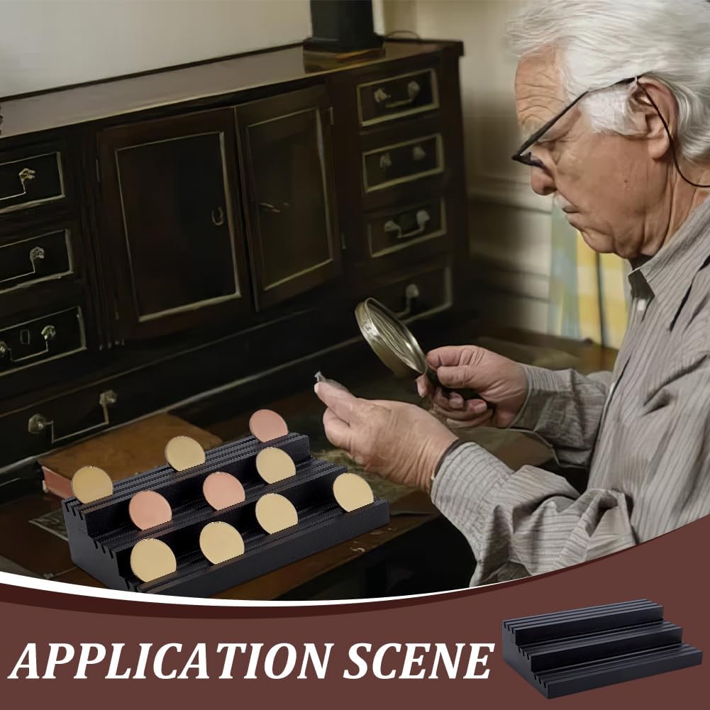 Design a 9 file: il design a 9 file dei nostri espositori offre spazio sufficiente per visualizzare più monete sfida contemporaneamente, semplificando la classificazione e la visualizzazione delle monete per soddisfare le esigenze di esposizione dei collezionisti. Espositore per monete a 3 livelli: questo espositore per monete presenta una struttura a 3 livelli e ogni livello può contenere monete per tipo, tema, ecc., rendendo più semplice l'organizzazione e la conservazione e rendendo l'esposizione delle monete più decorativa. Dimensioni: questo espositore portamonete misura circa 15x25x6 cm. Materiale affidabile: questo espositore per monete è fatto di legno, robusto e durevole, può sopportare un certo peso, per proteggere la stabilità e la durata dell'espositore, non è facile da deformare, danneggiare, ecc. A causa del peso di trasporto Ampiamente usato: ideale per monete sfida, monete commemorative, militari monete o altri espositori per monete da collezione, un ottimo regalo per la famiglia e gli amici in occasione di compleanni, festa del papà, Natale, Ringraziamento, Giorno della Memoria e altre festività