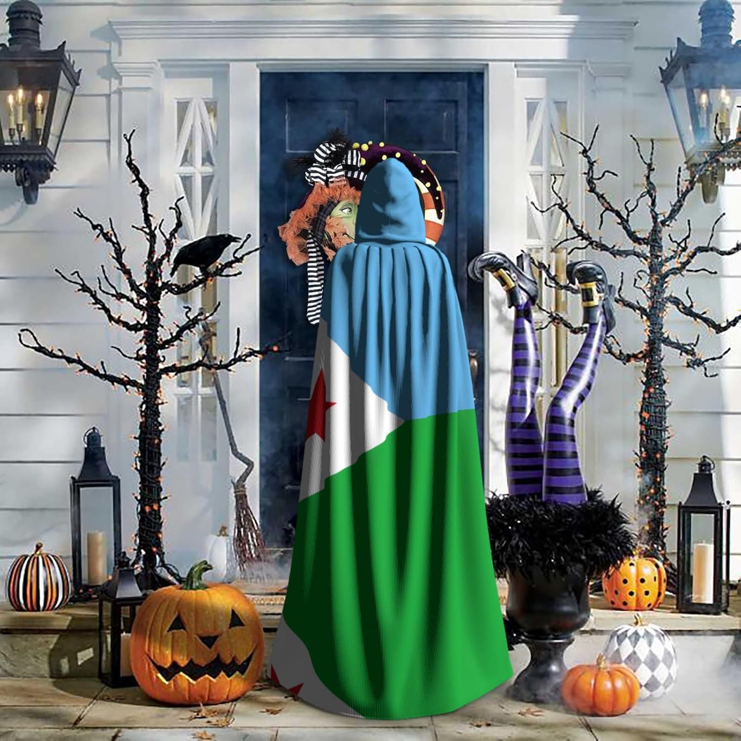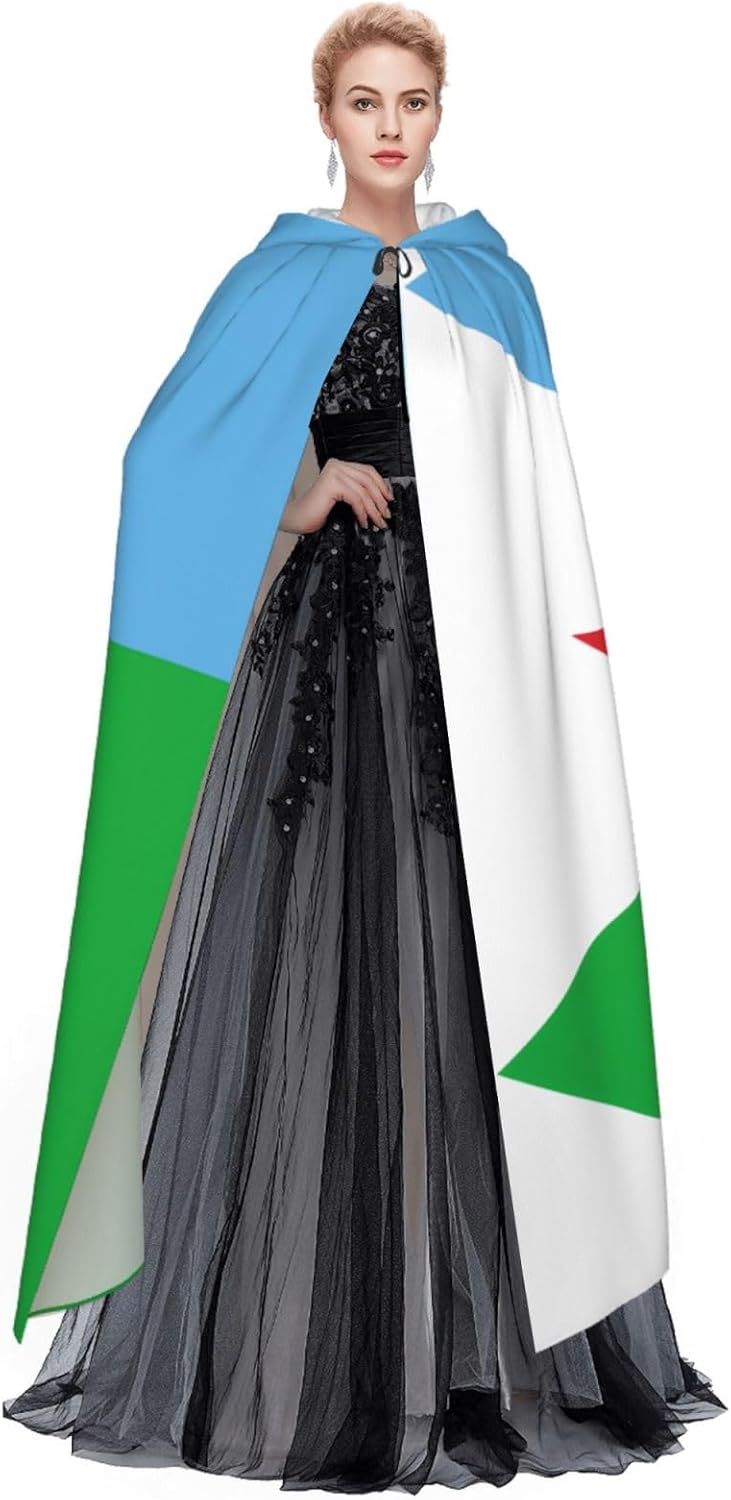 Bandiera di Gibuti per adulti, mantello decorativo con papillon e senza cerniera, adatto per Halloween, cosplay, costume da palcoscenico, feste in maschera, feste a tema, balli, fumetti, ecc.