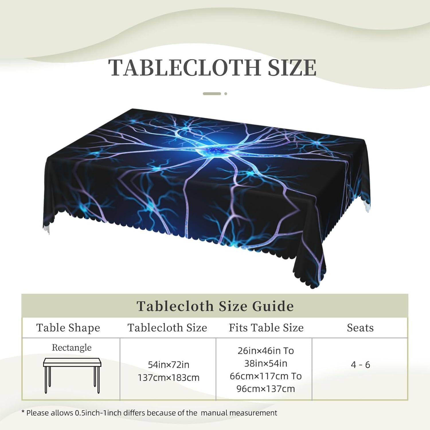 Bellissimo motivo dal design: questa tovaglia è stampata con un bellissimo motivo di espansione dei neuroni che illuminerà la tua sala da pranzo, soggiorno e patio con un aspetto fresco. Materiale di alta qualità: questa tovaglia da 54" x 72" è realizzata in tessuto di poliestere di alta qualità, resistente alle pieghe, all'acqua e durevole. Proteggi il tavolo: con questa tovaglia, il tuo tavolo non sarà facilmente macchiato da oli e salse. Inoltre protegge il tuo tavolo da graffi e urti e lo fa sembrare nuovo. Adatto a molteplici occasioni: adatto per ogni occasione a casa, festa, hotel, ristorante, bar, cucina, patio o sala da pranzo. Puoi trovare la tovaglia giusta da abbinare a stoviglie, posate, tovaglioli, tovagliette e altre decorazioni. Resistente e adatta per uso interno ed esterno. Istruzioni per la cura: basta pulire con un panno umido per mantenere la tovaglia fresca e pulita. Lavare in lavatrice in acqua fredda, non candeggiare. Se necessario stirare a bassa temperatura dal rovescio della tovaglia