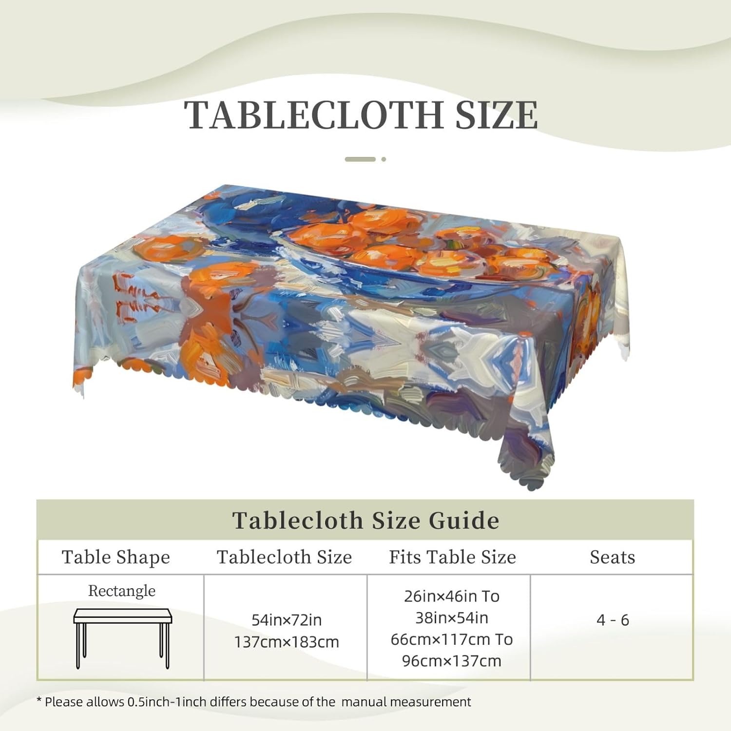 Bellissimo motivo: questa tovaglia è stampata con un bellissimo dipinto a olio che illuminerà la tua sala da pranzo, soggiorno e patio con un aspetto fresco. Materiale di alta qualità: questa tovaglia da 54" x 72" è realizzata in tessuto di poliestere di alta qualità, resistente alle pieghe, all'acqua e durevole. Proteggi il tavolo: con questa tovaglia, il tuo tavolo non sarà facilmente macchiato da oli e salse. Inoltre protegge il tuo tavolo da graffi e urti e lo fa sembrare nuovo. Adatto a molteplici occasioni: adatto per ogni occasione a casa, festa, hotel, ristorante, bar, cucina, patio o sala da pranzo. Puoi trovare la tovaglia giusta da abbinare a stoviglie, posate, tovaglioli, tovagliette e altre decorazioni. Resistente e adatta per uso interno ed esterno. Istruzioni per la cura: basta pulire con un panno umido per mantenere la tovaglia fresca e pulita. Lavare in lavatrice in acqua fredda, non candeggiare. Se necessario stirare a bassa temperatura dal rovescio della tovaglia