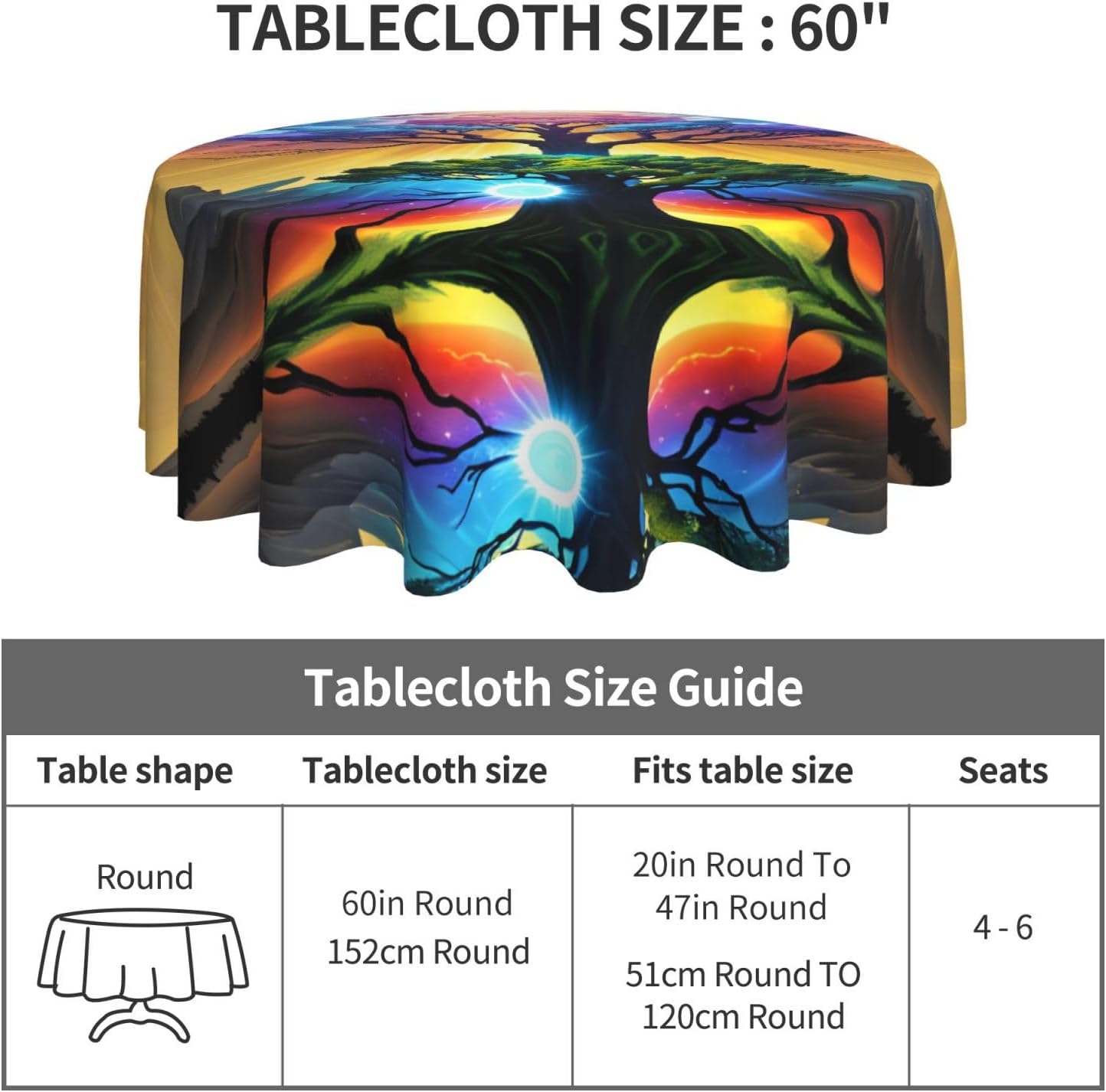 Bellissimo motivo: questa tovaglia è stampata con un bellissimo motivo ad albero celeste che illumina la tua sala da pranzo, il soggiorno e il patio con un look fresco. MATERIALE DI ALTA QUALITÀ: questa tovaglia da 60" x 60" è realizzata in tessuto di poliestere di alta qualità, resistente alle pieghe, alle macchie, all'acqua e durevole. Proteggi la tavola: Con questa tovaglia la tua tavola non si sporcherà facilmente con oli e salse. Inoltre protegge il tuo tavolo da graffi e urti e lo fa sembrare nuovo. Adatto a molteplici occasioni: adatto per ogni occasione a casa, festa, hotel, ristorante, bar, cucina, patio o sala da pranzo. Puoi trovare la tovaglia giusta da abbinare a stoviglie, posate, tovaglioli, tovagliette e altre decorazioni. Durevole e adatto per uso interno ed esterno. Istruzioni per la cura: basta pulire con un panno umido per mantenere la tovaglia fresca e pulita. Lavare in lavatrice in acqua fredda, non candeggiare. Se necessario stirare a bassa temperatura dal rovescio della tovaglia.