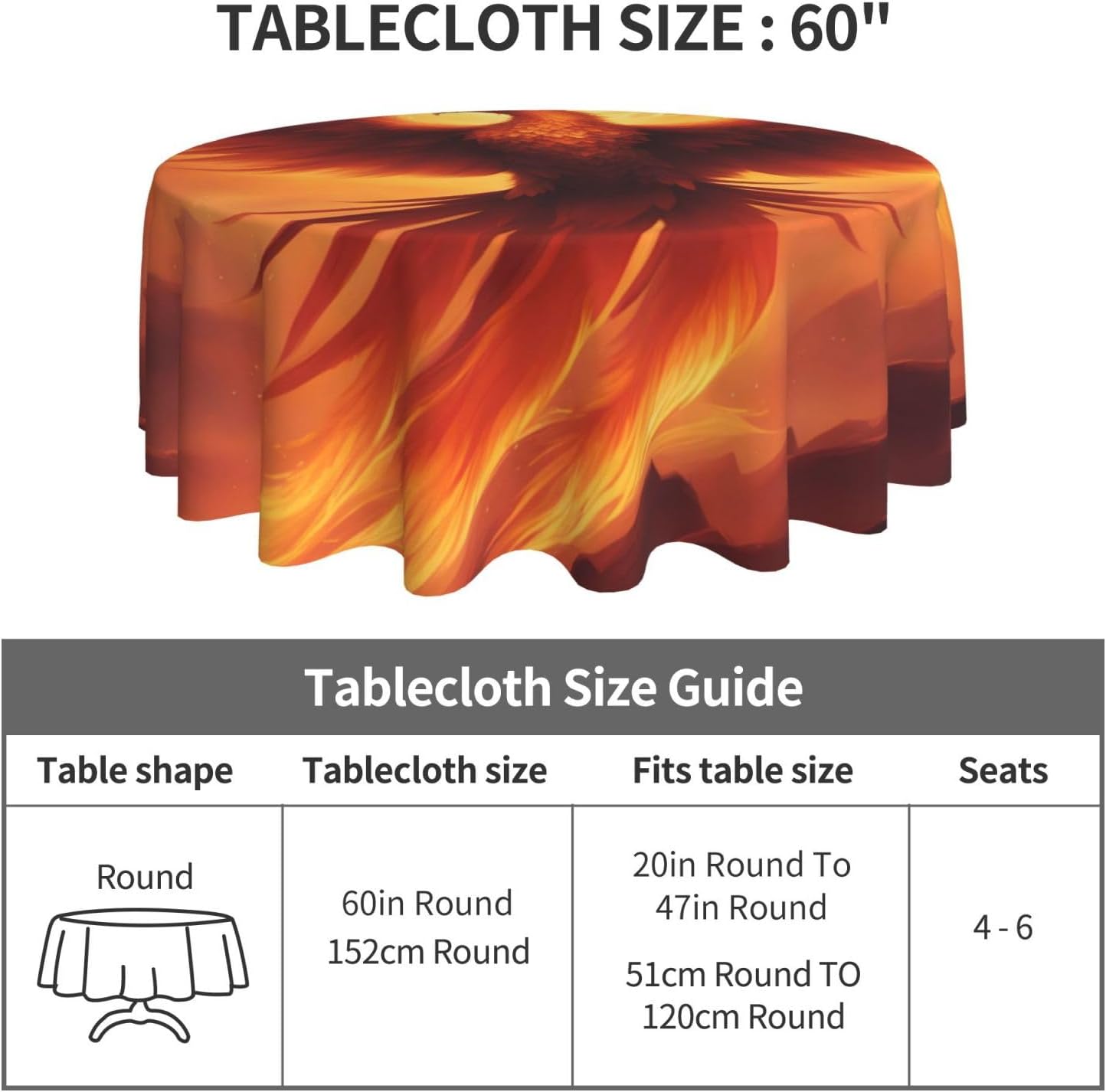 Bellissimo motivo: questa tovaglia è stampata con un bellissimo motivo a fenice che illuminerà la tua sala da pranzo, il soggiorno e il patio con un look fresco. MATERIALE DI ALTA QUALITÀ: questa tovaglia da 60" x 60" è realizzata in tessuto di poliestere di alta qualità, resistente alle pieghe, alle macchie, all'acqua e durevole. Proteggi la tavola: Con questa tovaglia la tua tavola non si sporcherà facilmente con oli e salse. Inoltre protegge il tuo tavolo da graffi e urti e lo fa sembrare nuovo. Adatto a molteplici occasioni: adatto per ogni occasione a casa, festa, hotel, ristorante, bar, cucina, patio o sala da pranzo. Puoi trovare la tovaglia giusta da abbinare a stoviglie, posate, tovaglioli, tovagliette e altre decorazioni. Durevole e adatto per uso interno ed esterno. Istruzioni per la cura: basta pulire con un panno umido per mantenere la tovaglia fresca e pulita. Lavare in lavatrice in acqua fredda, non candeggiare. Se necessario stirare a bassa temperatura dal rovescio della tovaglia.