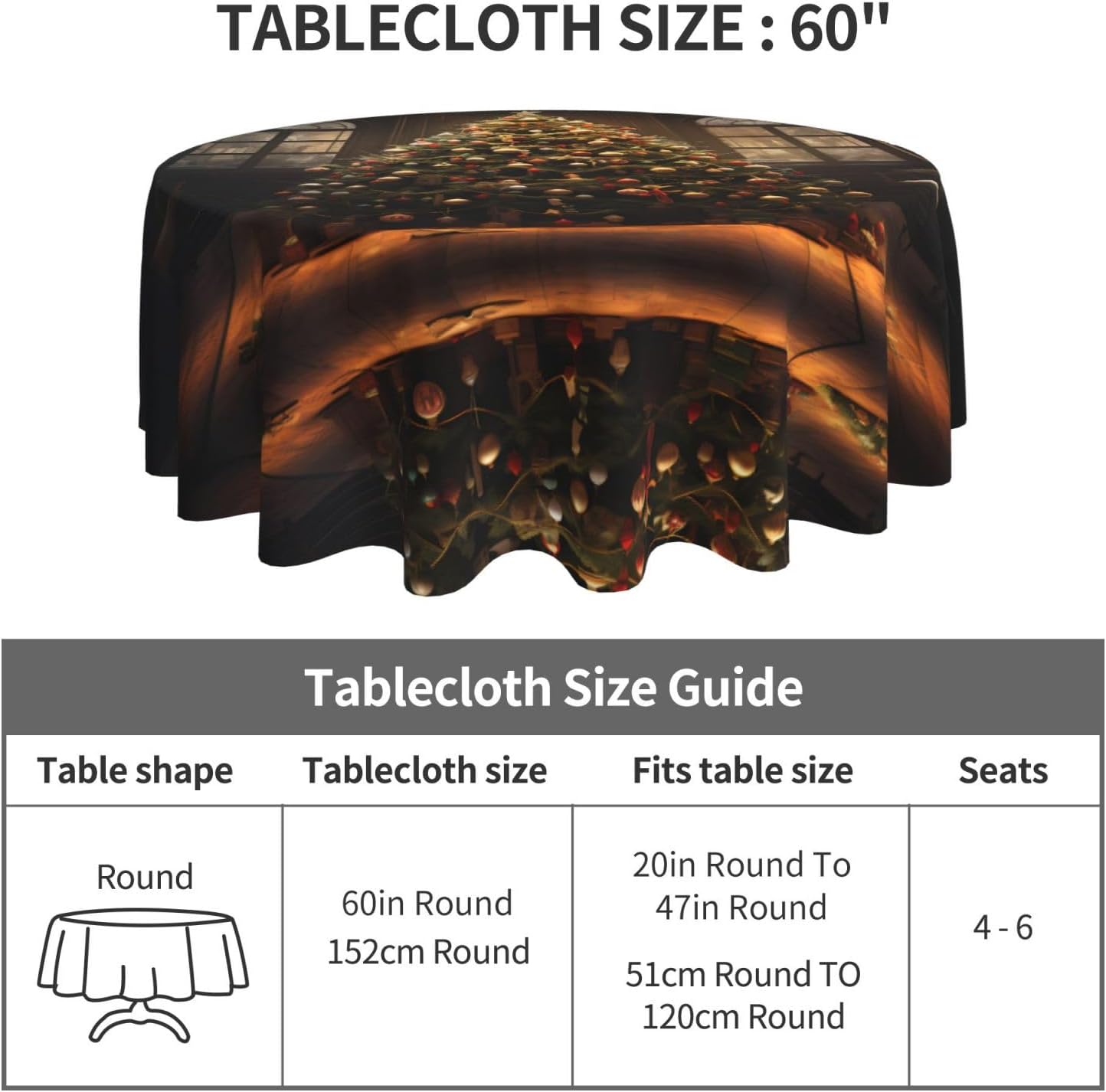 Bellissimo motivo: questa tovaglia è stampata con un bellissimo motivo ad albero di Natale che illuminerà la tua sala da pranzo, il soggiorno e il patio con un look fresco. MATERIALE DI ALTA QUALITÀ: questa tovaglia da 60" x 60" è realizzata in tessuto di poliestere di alta qualità, resistente alle pieghe, alle macchie, all'acqua e durevole. Proteggi la tavola: Con questa tovaglia la tua tavola non si sporcherà facilmente con oli e salse. Inoltre protegge il tuo tavolo da graffi e urti e lo fa sembrare nuovo. Adatto a molteplici occasioni: adatto per ogni occasione a casa, festa, hotel, ristorante, bar, cucina, patio o sala da pranzo. Puoi trovare la tovaglia giusta da abbinare a stoviglie, posate, tovaglioli, tovagliette e altre decorazioni. Durevole e adatto per uso interno ed esterno. Istruzioni per la cura: basta pulire con un panno umido per mantenere la tovaglia fresca e pulita. Lavare in lavatrice in acqua fredda, non candeggiare. Se necessario stirare a bassa temperatura dal rovescio della tovaglia.