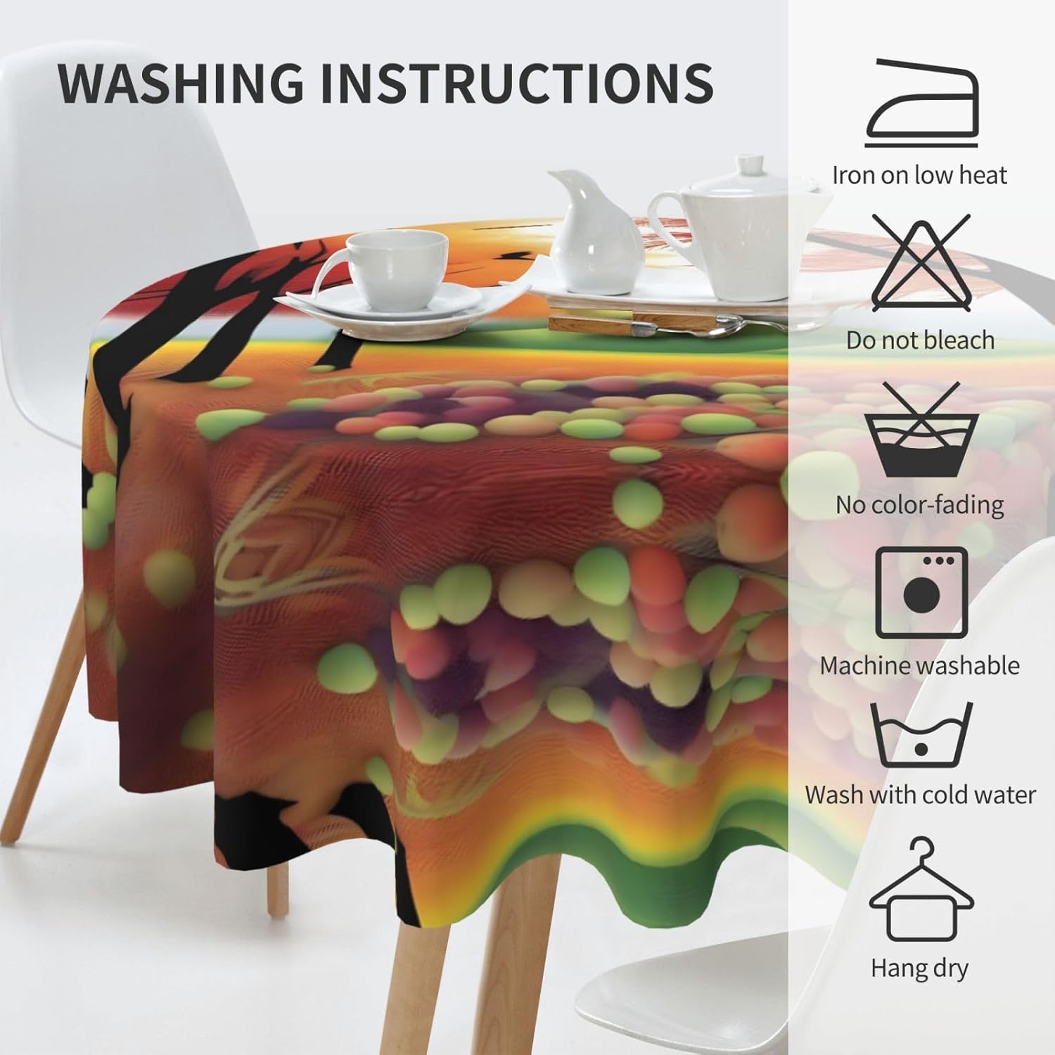 Bellissimo motivo: questa tovaglia è stampata con un bellissimo motivo autunnale, che illuminerà la tua sala da pranzo, il soggiorno e il patio con un aspetto fresco. MATERIALE DI ALTA QUALITÀ: questa tovaglia da 60" x 60" è realizzata in tessuto di poliestere di alta qualità, resistente alle pieghe, alle macchie, all'acqua e durevole. Proteggi la tavola: Con questa tovaglia la tua tavola non si sporcherà facilmente con oli e salse. Inoltre protegge il tuo tavolo da graffi e urti e lo fa sembrare nuovo. Adatto a molteplici occasioni: adatto per ogni occasione a casa, festa, hotel, ristorante, bar, cucina, patio o sala da pranzo. Puoi trovare la tovaglia giusta da abbinare a stoviglie, posate, tovaglioli, tovagliette e altre decorazioni. Durevole e adatto per uso interno ed esterno. Istruzioni per la cura: basta pulire con un panno umido per mantenere la tovaglia fresca e pulita. Lavare in lavatrice in acqua fredda, non candeggiare. Se necessario stirare a bassa temperatura dal rovescio della tovaglia.