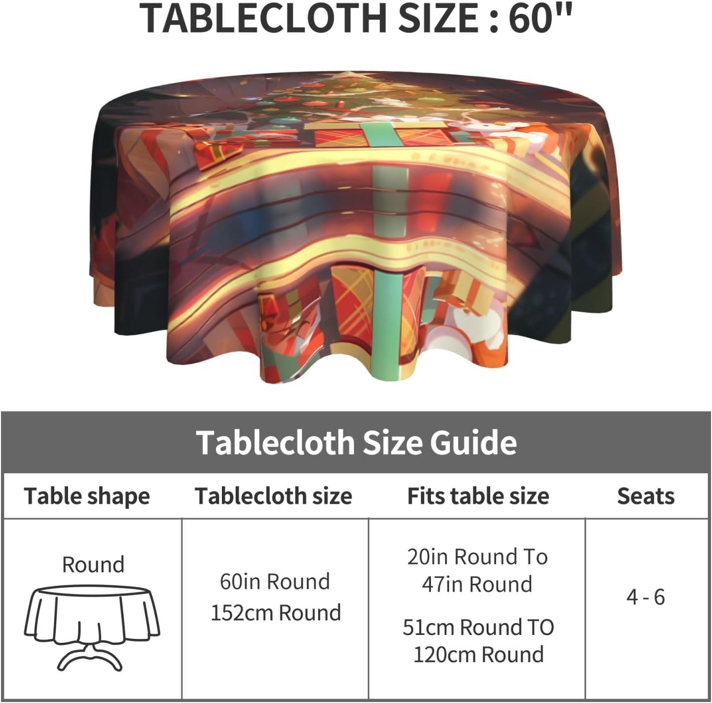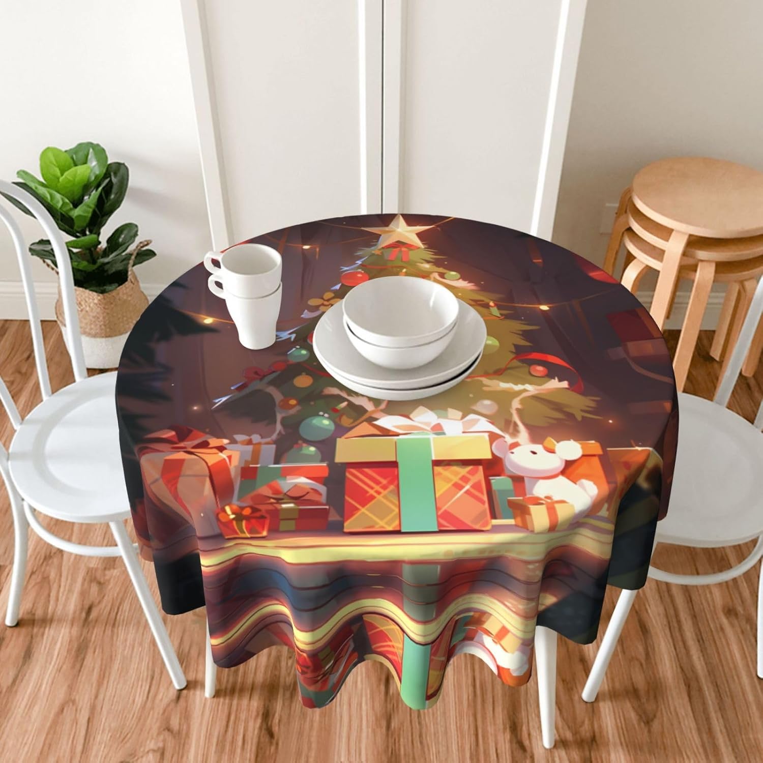 Bellissimo motivo: questa tovaglia è stampata con un bellissimo motivo ad albero di Natale che illuminerà la tua sala da pranzo, il soggiorno e il patio con un look fresco. MATERIALE DI ALTA QUALITÀ: questa tovaglia da 60" x 60" è realizzata in tessuto di poliestere di alta qualità, resistente alle pieghe, alle macchie, all'acqua e durevole. Proteggi la tavola: Con questa tovaglia la tua tavola non si sporcherà facilmente con oli e salse. Inoltre protegge il tuo tavolo da graffi e urti e lo fa sembrare nuovo. Adatto a molteplici occasioni: adatto per ogni occasione a casa, festa, hotel, ristorante, bar, cucina, patio o sala da pranzo. Puoi trovare la tovaglia giusta da abbinare a stoviglie, posate, tovaglioli, tovagliette e altre decorazioni. Durevole e adatto per uso interno ed esterno. Istruzioni per la cura: basta pulire con un panno umido per mantenere la tovaglia fresca e pulita. Lavare in lavatrice in acqua fredda, non candeggiare. Se necessario stirare a bassa temperatura dal rovescio della tovaglia.