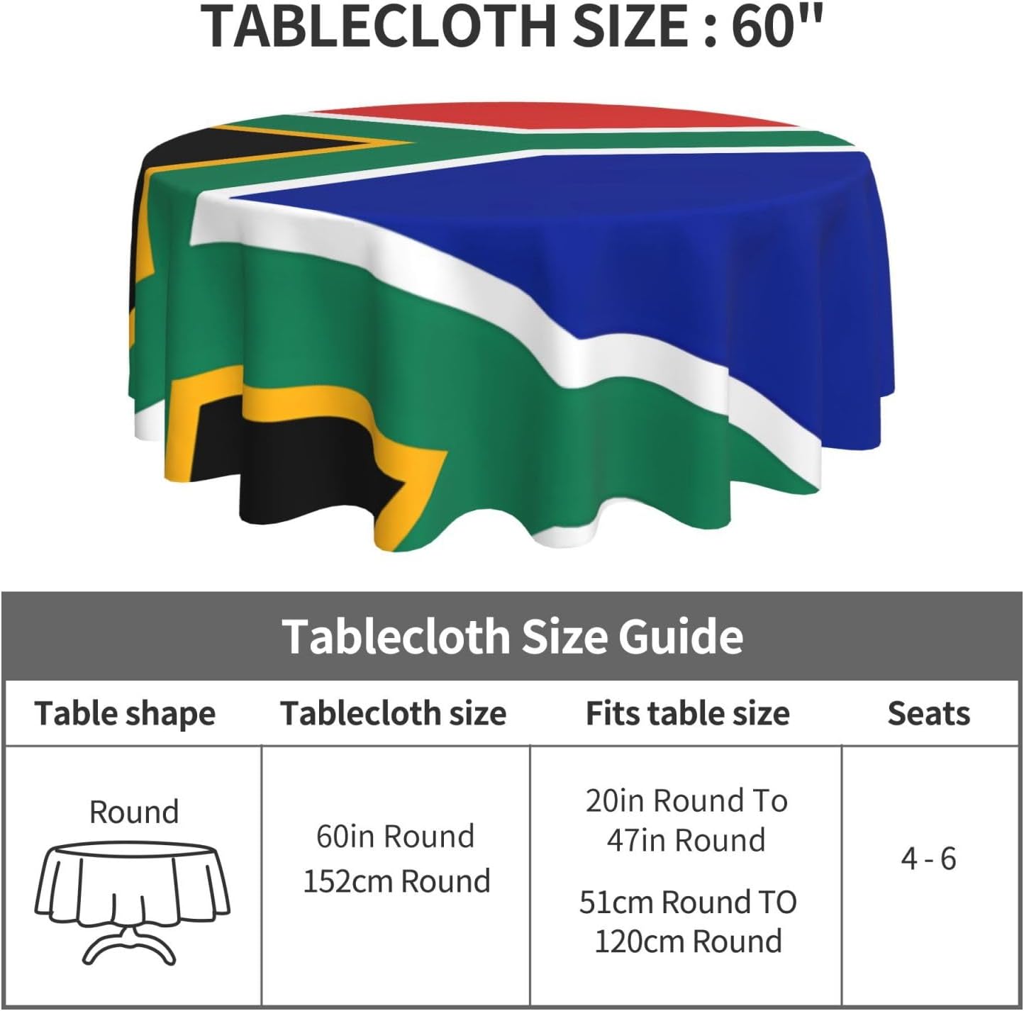 Bellissimo motivo: questa tovaglia è stampata con un bellissimo motivo a bandiera del Sud Africa che illuminerà la tua sala da pranzo, il soggiorno e il patio con un look fresco. MATERIALE DI ALTA QUALITÀ: questa tovaglia da 60" x 60" è realizzata in tessuto di poliestere di alta qualità, resistente alle pieghe, alle macchie, all'acqua e durevole. Proteggi la tavola: Con questa tovaglia la tua tavola non si sporcherà facilmente con oli e salse. Inoltre protegge il tuo tavolo da graffi e urti e lo fa sembrare nuovo. Adatto a molteplici occasioni: adatto per ogni occasione a casa, festa, hotel, ristorante, bar, cucina, patio o sala da pranzo. Puoi trovare la tovaglia giusta da abbinare a stoviglie, posate, tovaglioli, tovagliette e altre decorazioni. Durevole e adatto per uso interno ed esterno. Istruzioni per la cura: basta pulire con un panno umido per mantenere la tovaglia fresca e pulita. Lavare in lavatrice in acqua fredda, non candeggiare. Se necessario stirare a bassa temperatura dal rovescio della tovaglia.
