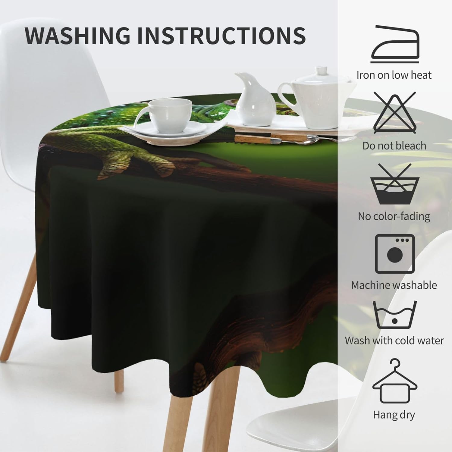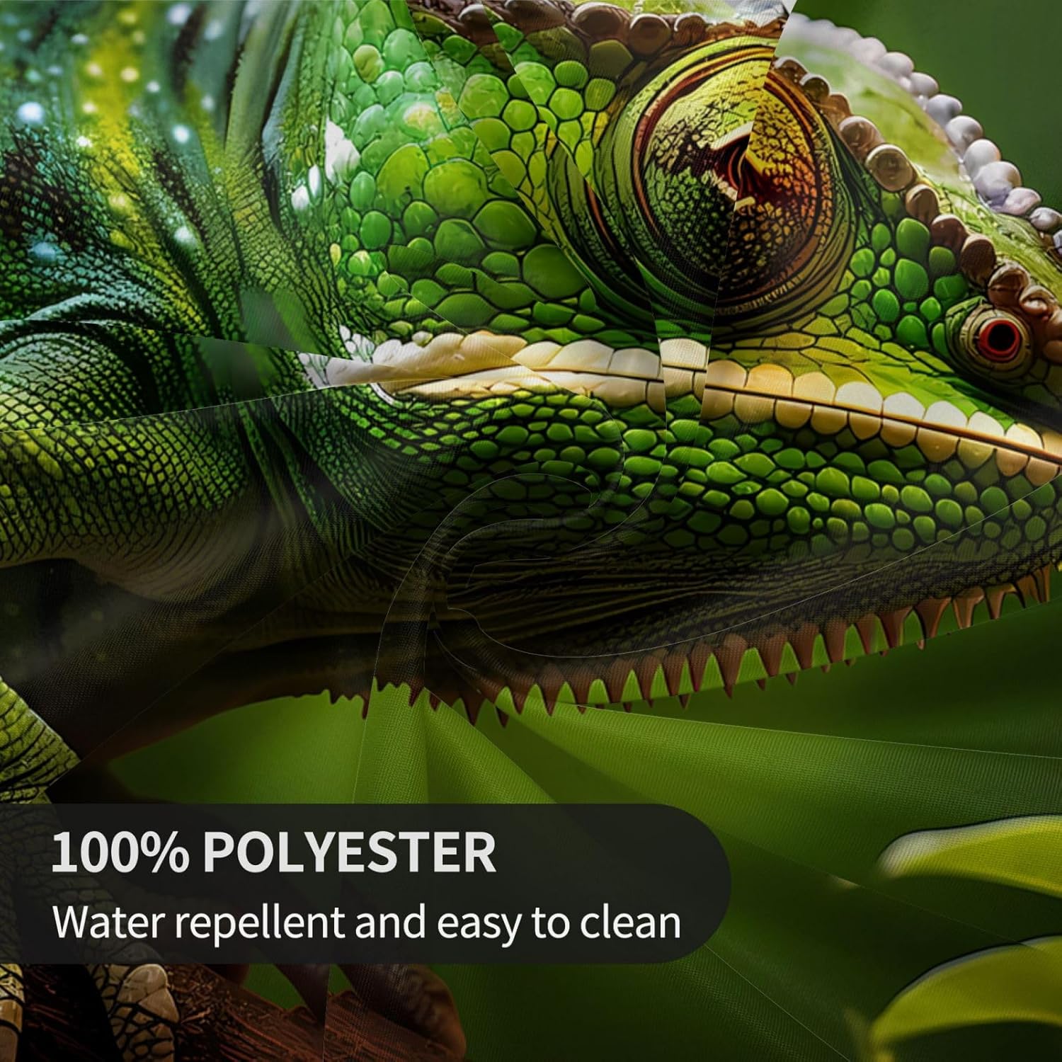 Bellissimo motivo: questa tovaglia è stampata con un bellissimo motivo camaleonte che illuminerà la tua sala da pranzo, il soggiorno e il patio con un aspetto fresco. MATERIALE DI ALTA QUALITÀ: questa tovaglia da 60" x 60" è realizzata in tessuto di poliestere di alta qualità, resistente alle pieghe, alle macchie, all'acqua e durevole. Proteggi la tavola: Con questa tovaglia la tua tavola non si sporcherà facilmente con oli e salse. Inoltre protegge il tuo tavolo da graffi e urti e lo fa sembrare nuovo. Adatto a molteplici occasioni: adatto per ogni occasione a casa, festa, hotel, ristorante, bar, cucina, patio o sala da pranzo. Puoi trovare la tovaglia giusta da abbinare a stoviglie, posate, tovaglioli, tovagliette e altre decorazioni. Durevole e adatto per uso interno ed esterno. Istruzioni per la cura: basta pulire con un panno umido per mantenere la tovaglia fresca e pulita. Lavare in lavatrice in acqua fredda, non candeggiare. Se necessario stirare a bassa temperatura dal rovescio della tovaglia.
