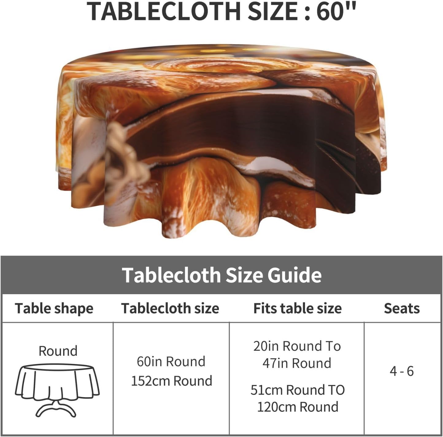 Bellissimo motivo: questa tovaglia è stampata con un bellissimo motivo da forno che illuminerà la tua sala da pranzo, il soggiorno e il patio con un look fresco. MATERIALE DI ALTA QUALITÀ: questa tovaglia da 60" x 60" è realizzata in tessuto di poliestere di alta qualità, resistente alle pieghe, alle macchie, all'acqua e durevole. Proteggi la tavola: Con questa tovaglia la tua tavola non si sporcherà facilmente con oli e salse. Inoltre protegge il tuo tavolo da graffi e urti e lo fa sembrare nuovo. Adatto a molteplici occasioni: adatto per ogni occasione a casa, festa, hotel, ristorante, bar, cucina, patio o sala da pranzo. Puoi trovare la tovaglia giusta da abbinare a stoviglie, posate, tovaglioli, tovagliette e altre decorazioni. Durevole e adatto per uso interno ed esterno. Istruzioni per la cura: basta pulire con un panno umido per mantenere la tovaglia fresca e pulita. Lavare in lavatrice in acqua fredda, non candeggiare. Se necessario stirare a bassa temperatura dal rovescio della tovaglia.