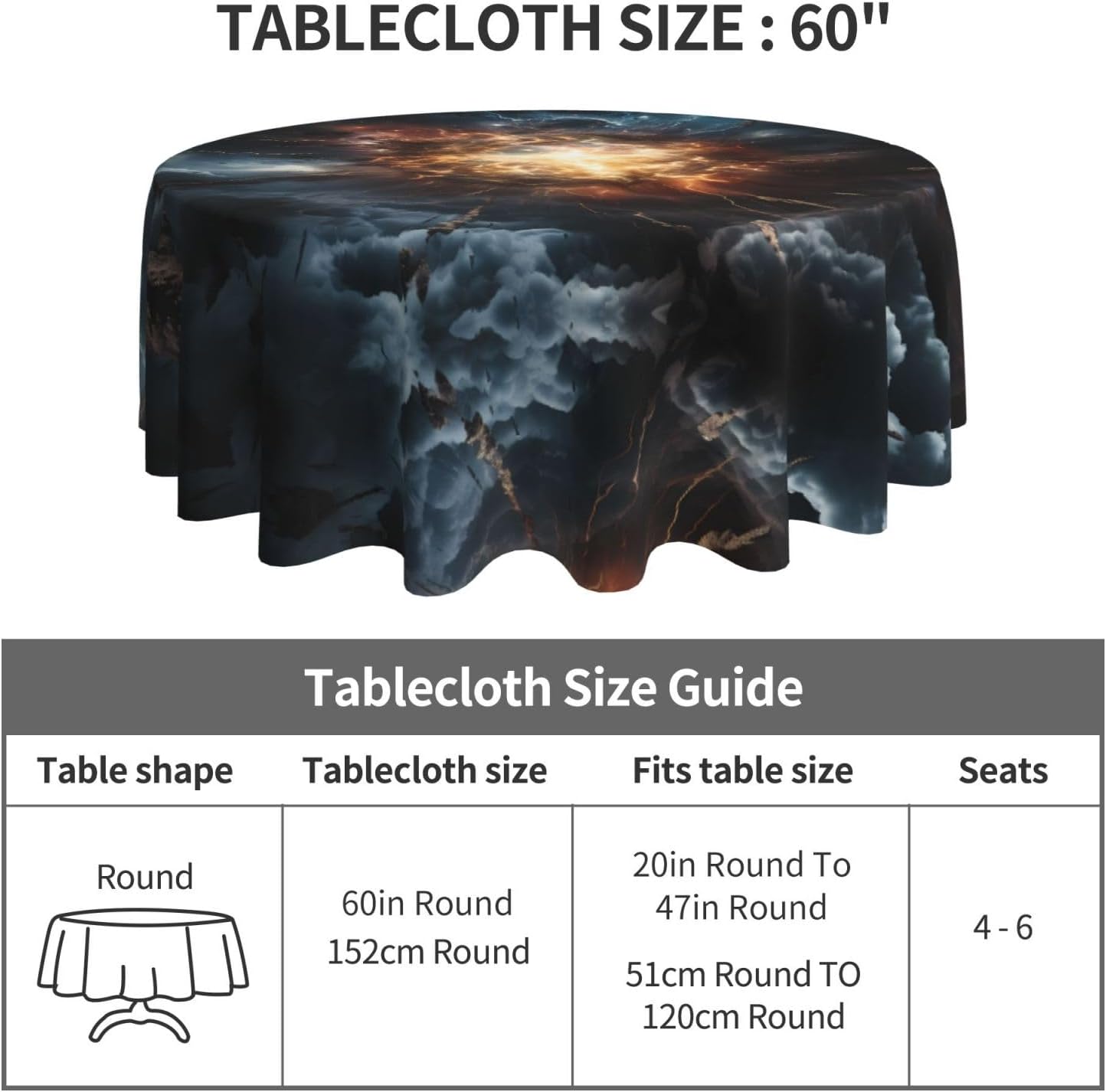 Bellissimo motivo: questa tovaglia è stampata con una bellissima esplosione di terra che illuminerà la tua sala da pranzo, il soggiorno e il patio con un aspetto fresco. MATERIALE DI ALTA QUALITÀ: questa tovaglia da 60" x 60" è realizzata in tessuto di poliestere di alta qualità, resistente alle pieghe, alle macchie, all'acqua e durevole. Proteggi la tavola: Con questa tovaglia la tua tavola non si sporcherà facilmente con oli e salse. Inoltre protegge il tuo tavolo da graffi e urti e lo fa sembrare nuovo. Adatto a molteplici occasioni: adatto per ogni occasione a casa, festa, hotel, ristorante, bar, cucina, patio o sala da pranzo. Puoi trovare la tovaglia giusta da abbinare a stoviglie, posate, tovaglioli, tovagliette e altre decorazioni. Durevole e adatto per uso interno ed esterno. Istruzioni per la cura: basta pulire con un panno umido per mantenere la tovaglia fresca e pulita. Lavare in lavatrice in acqua fredda, non candeggiare. Se necessario stirare a bassa temperatura dal rovescio della tovaglia.