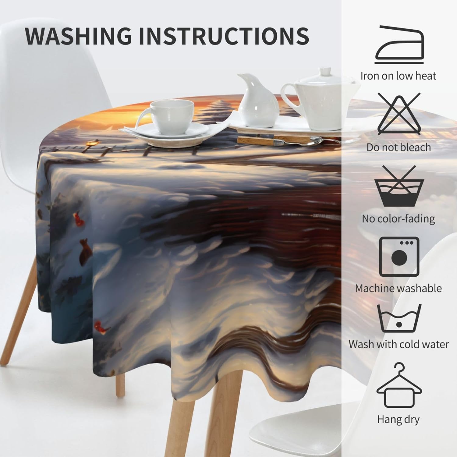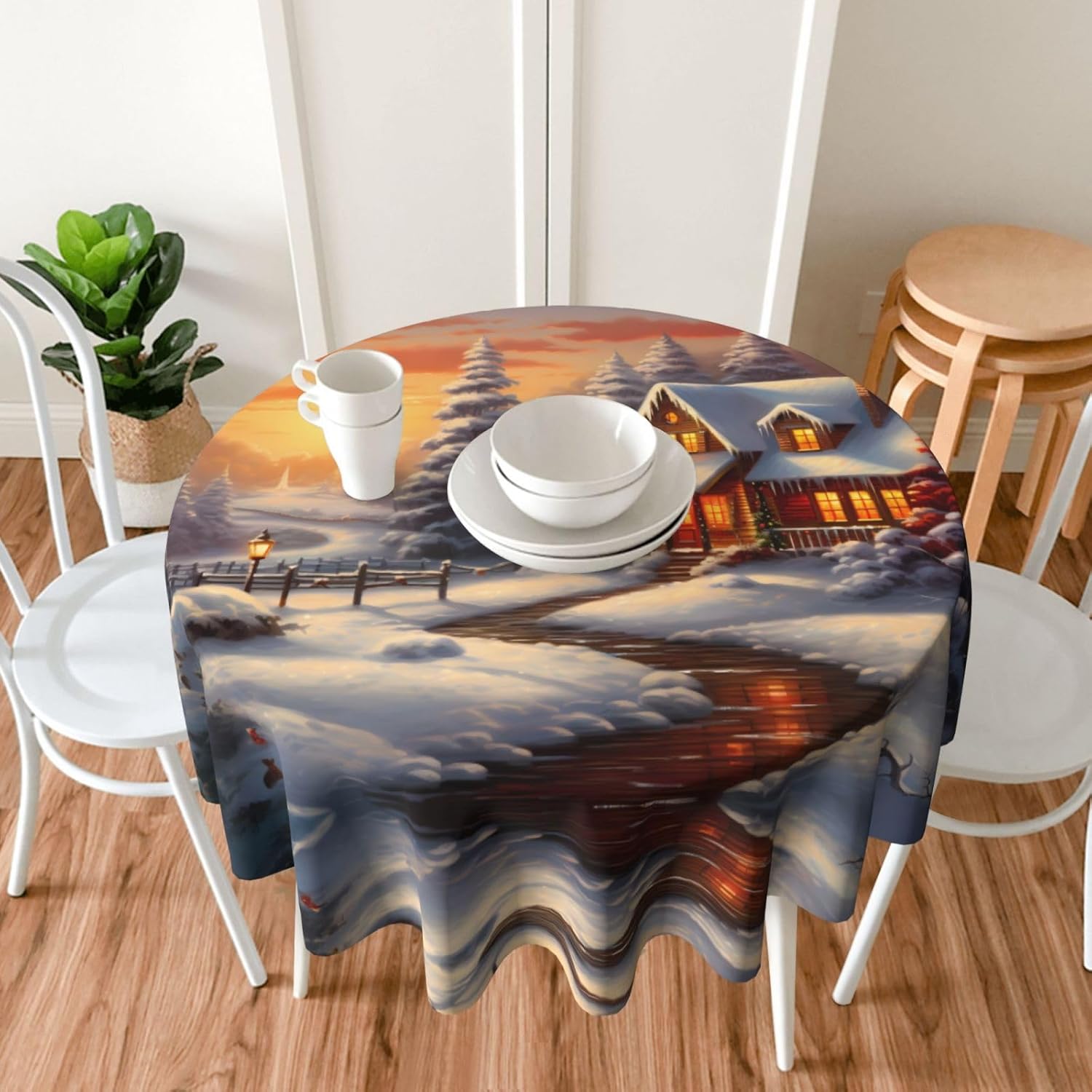 Bellissimo design a motivi: su questa tovaglia è stampata una bellissima serata di Natale con una luce calda che illumina la tua sala da pranzo, il soggiorno e il patio con un aspetto fresco. MATERIALE DI ALTA QUALITÀ: questa tovaglia da 60" x 60" è realizzata in tessuto di poliestere di alta qualità, resistente alle pieghe, alle macchie, all'acqua e durevole. Proteggi la tavola: Con questa tovaglia la tua tavola non si sporcherà facilmente con oli e salse. Inoltre protegge il tuo tavolo da graffi e urti e lo fa sembrare nuovo. Adatto a molteplici occasioni: adatto per ogni occasione a casa, festa, hotel, ristorante, bar, cucina, patio o sala da pranzo. Puoi trovare la tovaglia giusta da abbinare a stoviglie, posate, tovaglioli, tovagliette e altre decorazioni. Durevole e adatto per uso interno ed esterno. Istruzioni per la cura: basta pulire con un panno umido per mantenere la tovaglia fresca e pulita. Lavare in lavatrice in acqua fredda, non candeggiare. Se necessario stirare a bassa temperatura dal rovescio della tovaglia.