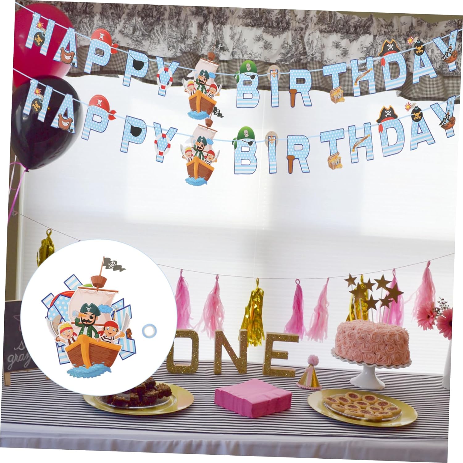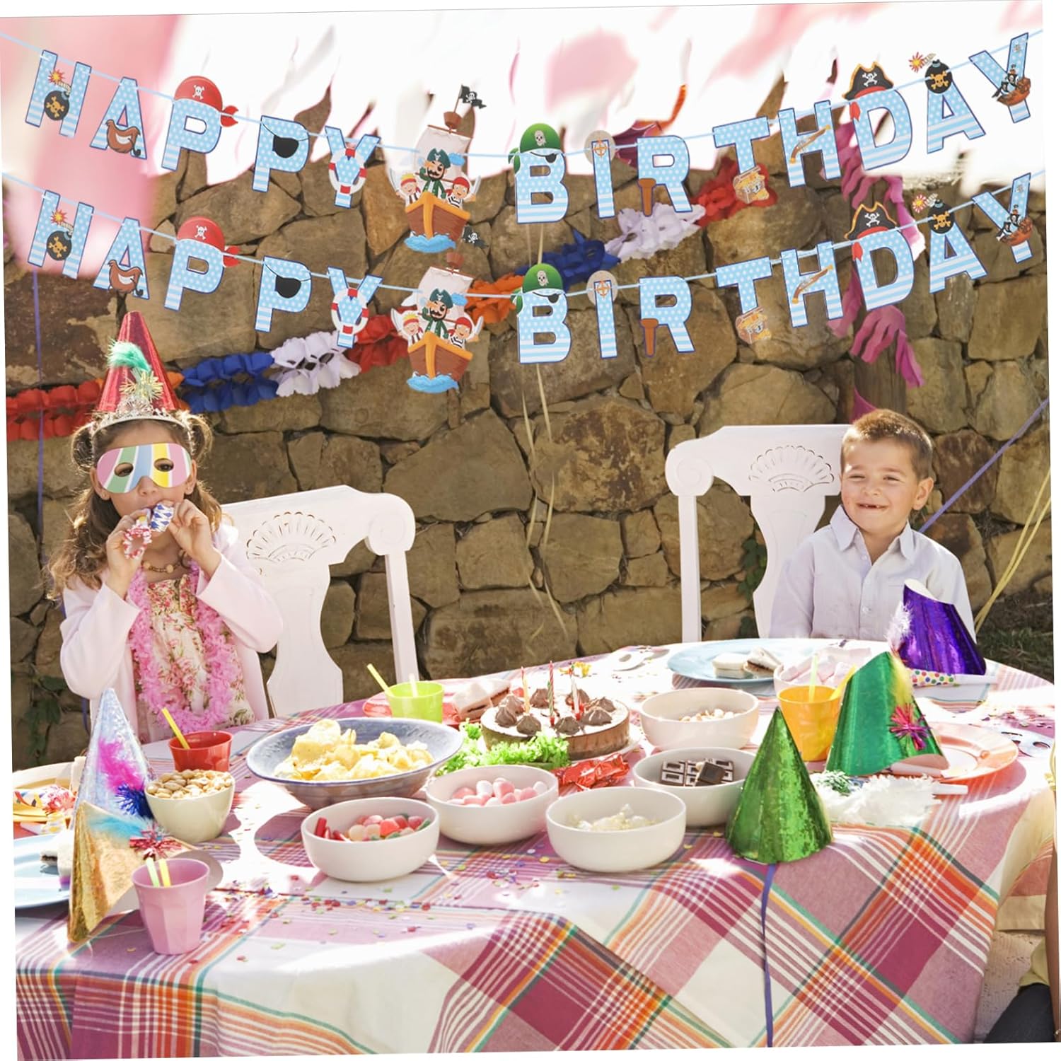 Tema pirata: possono anche essere utilizzati come sfondo fotografico per scattare foto significative con i tuoi amici, decorazioni di carta. Banner fotografico - realizzato in materiale da utilizzare come decorazione di buon compleanno per i ragazzi. Ghirlanda di compleanno pirata - ideale per oggetti di scena, con design di elementi pirata, crea un'atmosfera felice, oggetto di compleanno. Forniture per feste pirata - Adatto per feste di compleanno, casa per aggiungere divertimento e colore alla festa, ghirlanda fotografica. Festa dei pirati: creano uno sfondo divertente e divertente per la tua festa, ecc., appendendo bandiere con tema pirata.