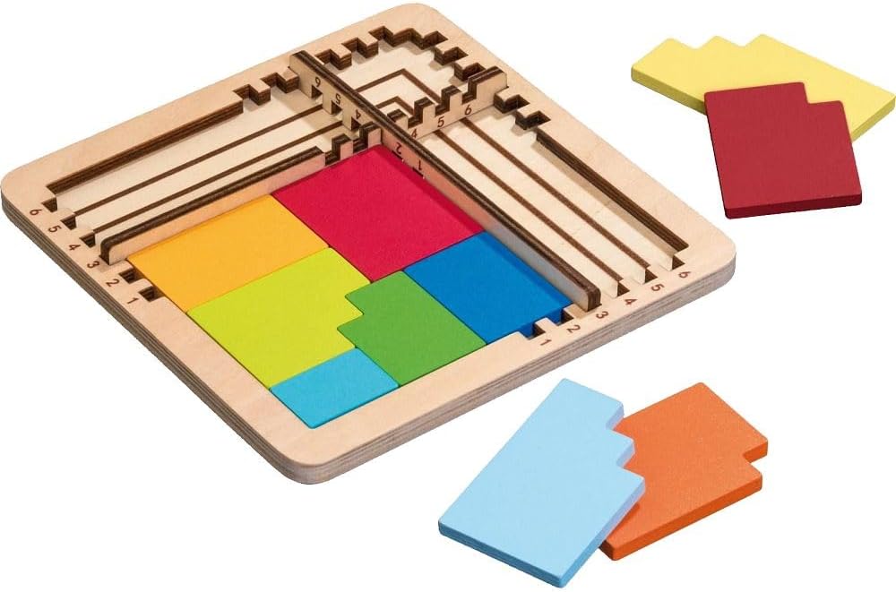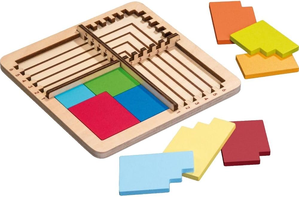 Materiale: legno Difficoltà: Estremamente difficile Età consigliata: a partire dai 6 anni Formato: Materiale: compensato. Dimensioni telaio: 150 x 150 x 8 mm. Durata del gioco: circa 10 minuti
