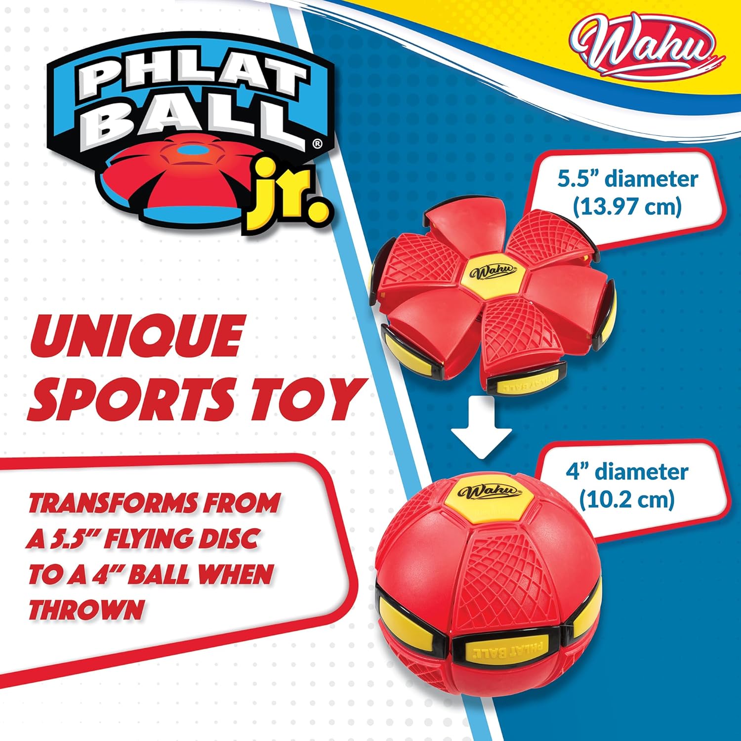 VERSIONE MINI DELLA PHLAT BALL CLASSIC: con un disco da 15,2 cm di diametro e una palla da 10,2 cm di diametro, questa versione mini della Phlat Ball Classic Red promette un'esperienza compatta e dinamica per gli appassionati di giochi all'aperto GIOCATTOLO DA ESTERNO MUST-have: aggiungi entusiasmo alle tue attività nel parco o in giardino con questo frisbee che si trasforma istantaneamente in una palla; Schiacciala e intraprendi una nuova sequenza di giochi diversificati DA PORTARE OVUNQUE: leggera e compatta, la palla si piega facilmente, rendendola l'accessorio ideale per le avventure all'aria aperta; Pronto per l'azione in qualsiasi momento, questo Phlat Ball Mini rosso è pronto per essere portato ovunque l'avventura ti chiami GIOCATTOLO INNOVATIVO: il materiale unico del Phlat Ball Junior rosso offre una presa eccezionale, consentendo azioni rapide e precise; Questa innovazione garantisce un'esperienza di gioco fluida e dinamica, stimolando agilità e coordinazione. IDEA REGALO PER GIOCHI ALL'APERTO: Grazie alla sua varietà di funzionalità interattive e al suo aspetto educativo, il Phlat Ball Junior rosso è il regalo ideale per bambini attivi e avventurosi; Regalatelo per un compleanno, una festa o semplicemente per il piacere di regalare