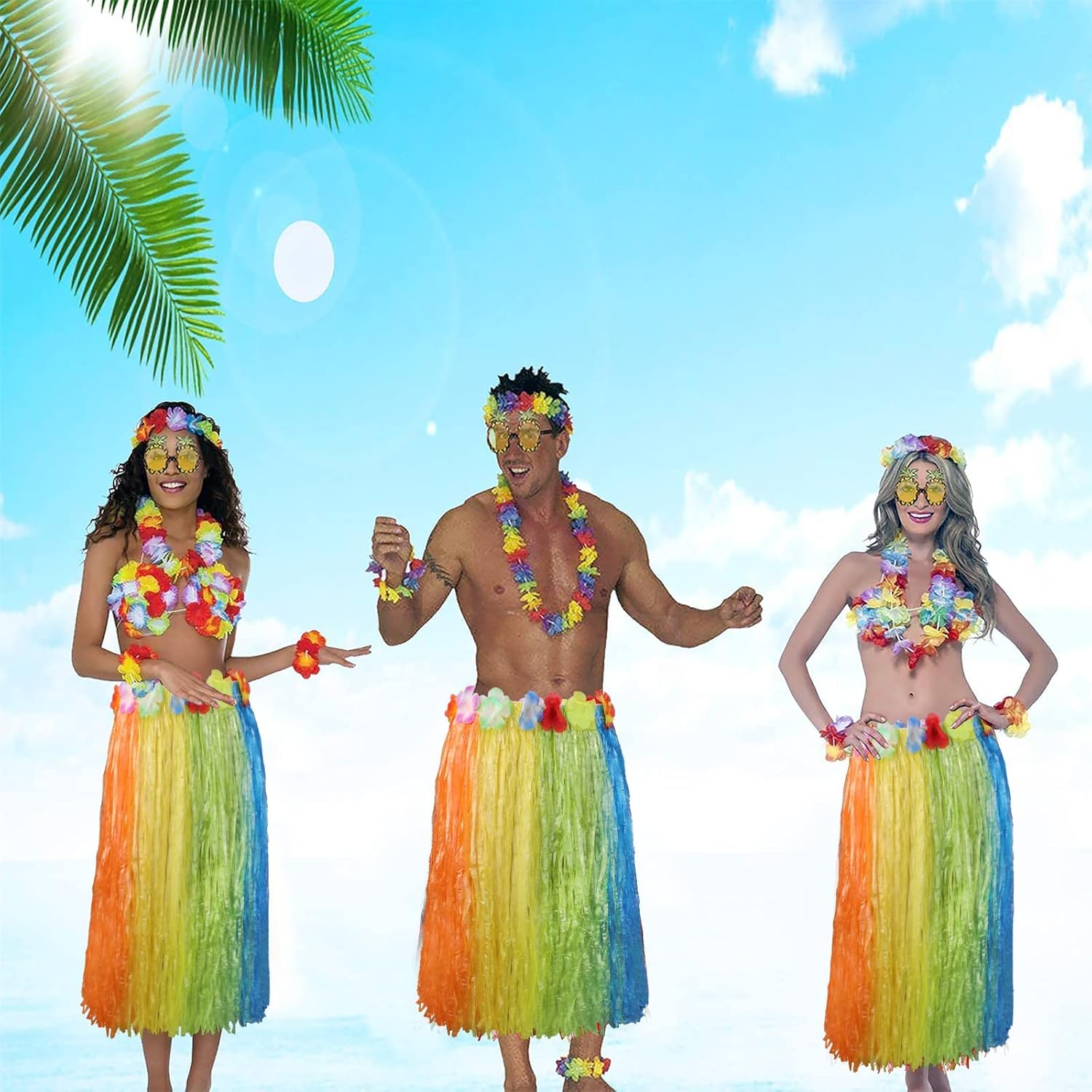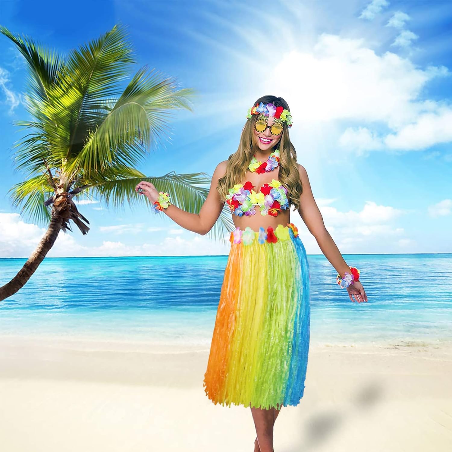 PHOGARY 8PCS Gonna Hula Kit di Accessori per Costumi per Hawaii Luau Party - Ballando Hula con Fiore Bikini Top, Lei Hawaiana, Molletta, Occhiali da Sole
