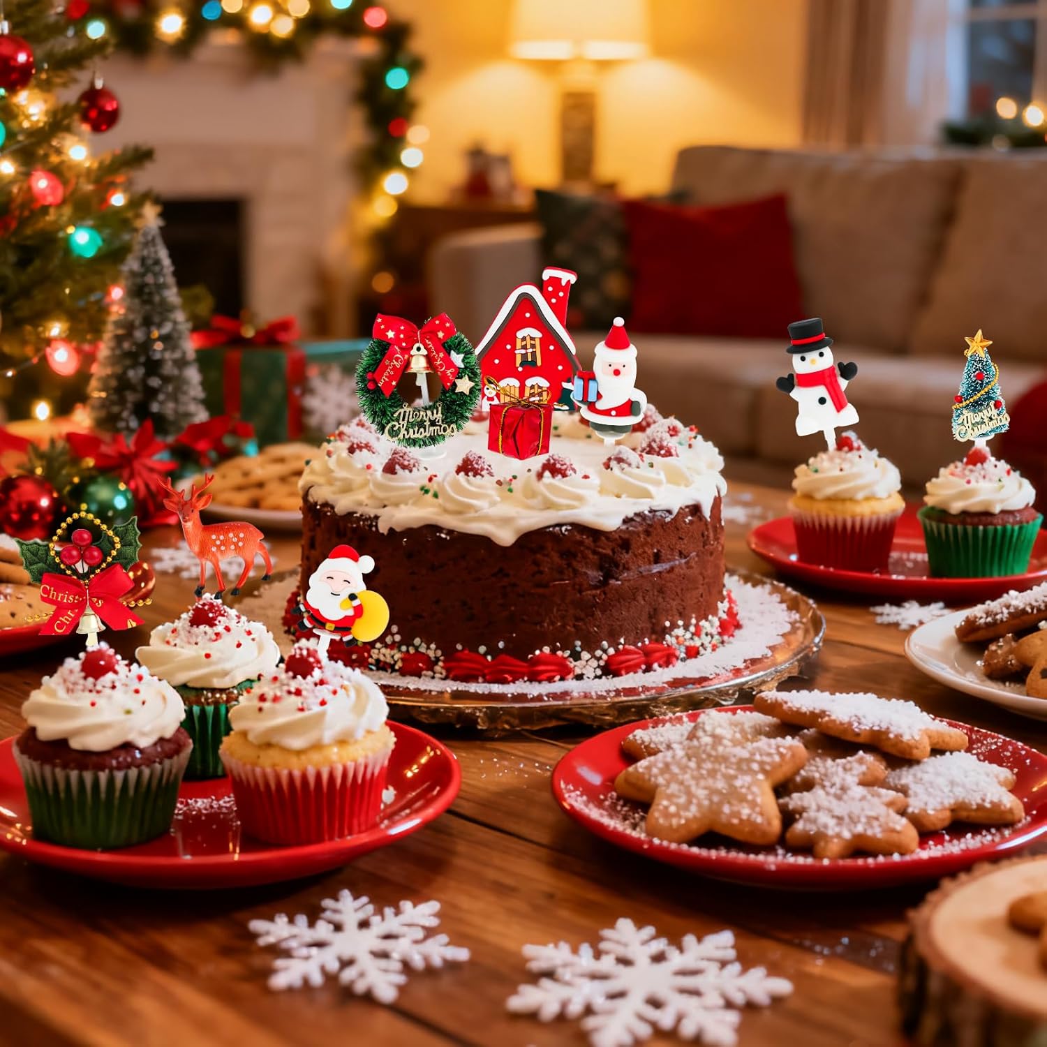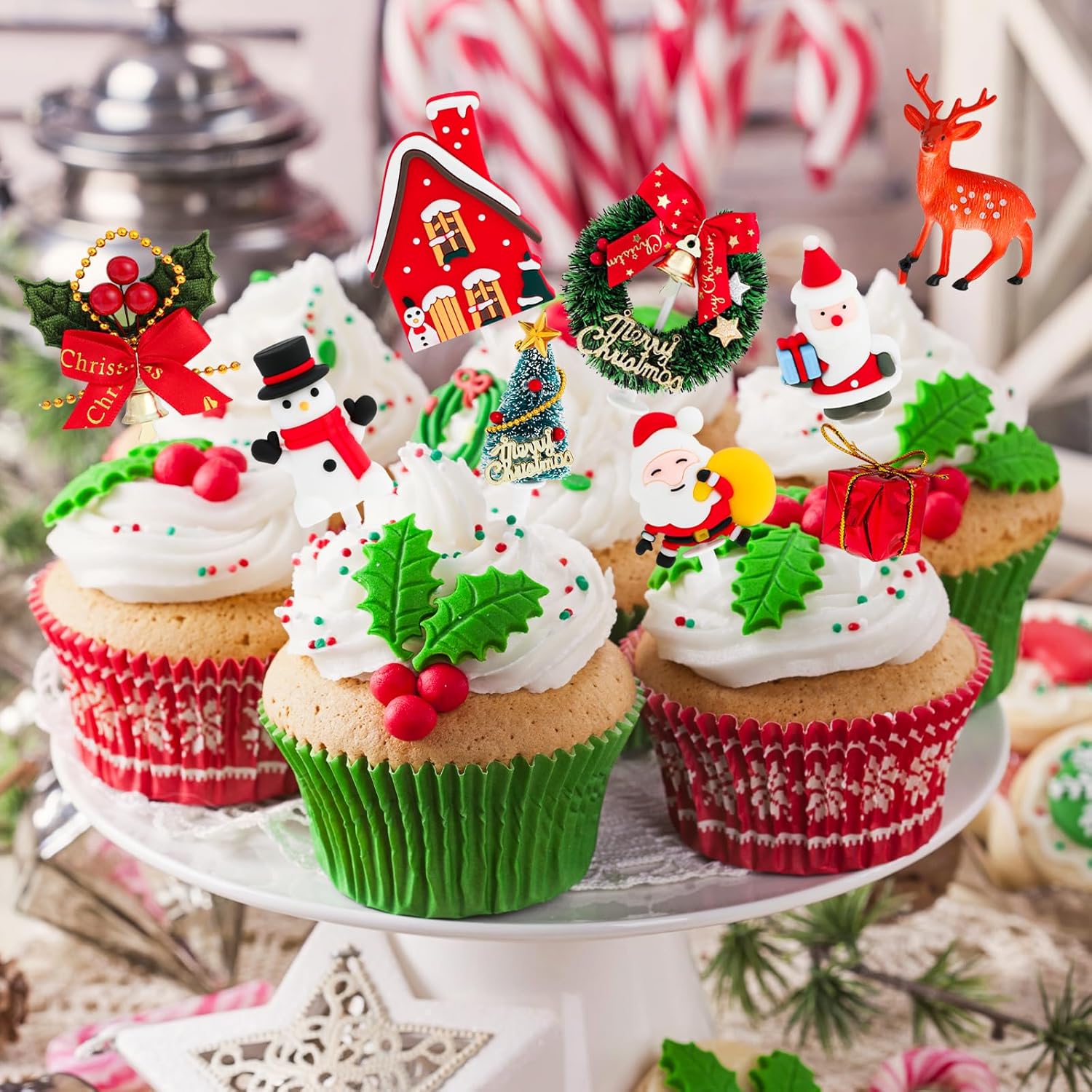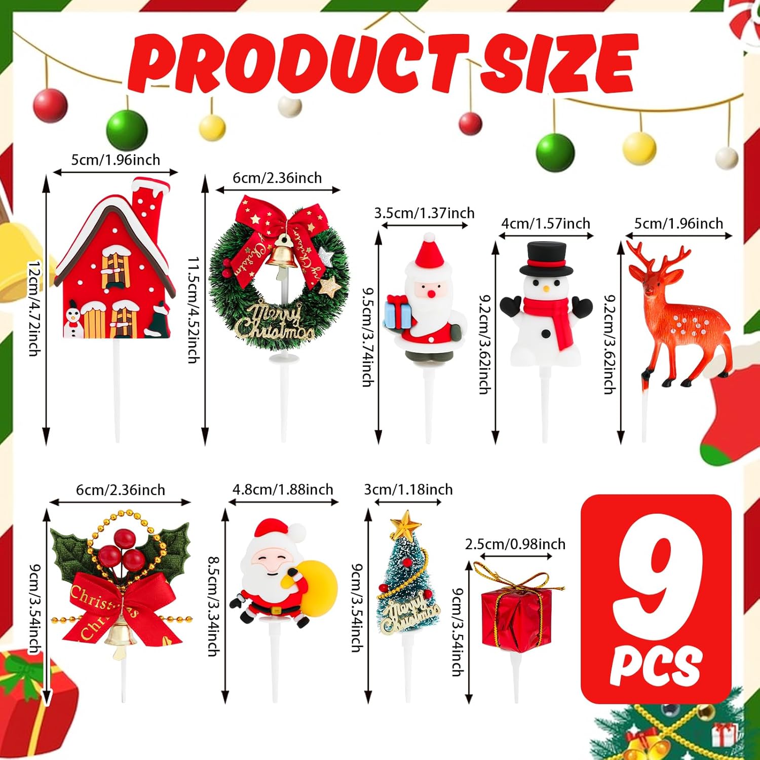 Set di 9 Soggetti Decorativi Natalizi assortiti: Include Babbo Natale, pupazzo di neve, albero di Natale, renna, casa, regali, corona di Natale, foglie di agrifoglio di Natale. Perfetto per decorare le torte di Natale e renderle ancora più invitanti Alta qualità: realizzato con materiali di alta qualità, questo accessorio per decorare torte è riutilizzabile e resistente, e può essere utilizzato per diversi Natali a venire. Si prega di utilizzarlo con cura Facile da usare: Basta inserire le decorazioni per muffin nelle torte o nei cupcakes. Queste decorazioni sono semplici ma efficaci, perfette per creare un'atmosfera calda e gioiosa durante le tue celebrazioni di fine anno Atmosfera Festiva Potenziata: Incorpora elementi iconici del Natale (albero, renna, pupazzo di neve, Babbo Natale...) per intensificare lo spirito festivo. Ideale per Natale, le feste di fine anno, i raduni familiari, ecc Decorazione Culinaria Versatile: Perfetto per abbellire cupcakes, torte e altre creazioni alimentari. Accessori creativi essenziali per gli amanti della pasticceria e degli eventi, per aggiungere un tocco festoso ai dolci natalizi e alle feste di fine anno