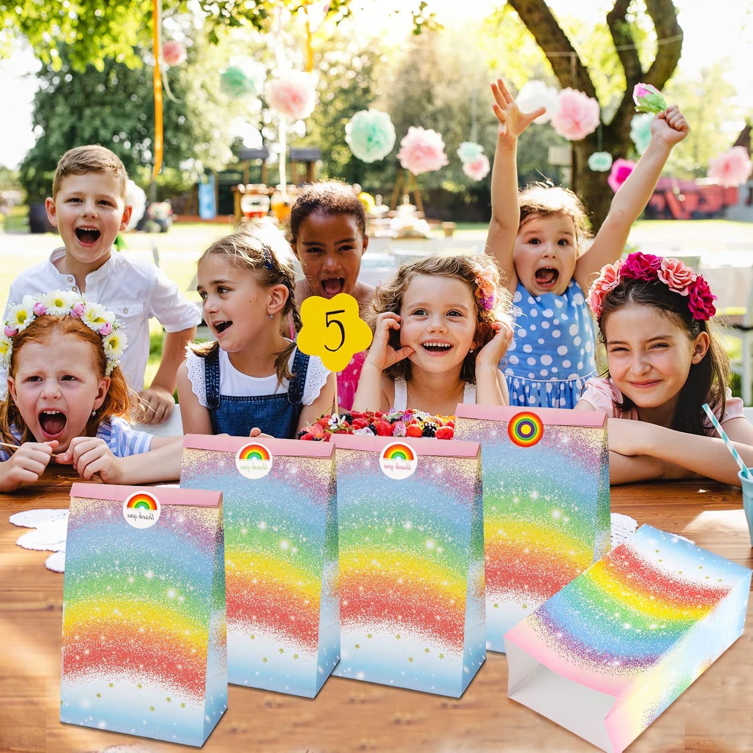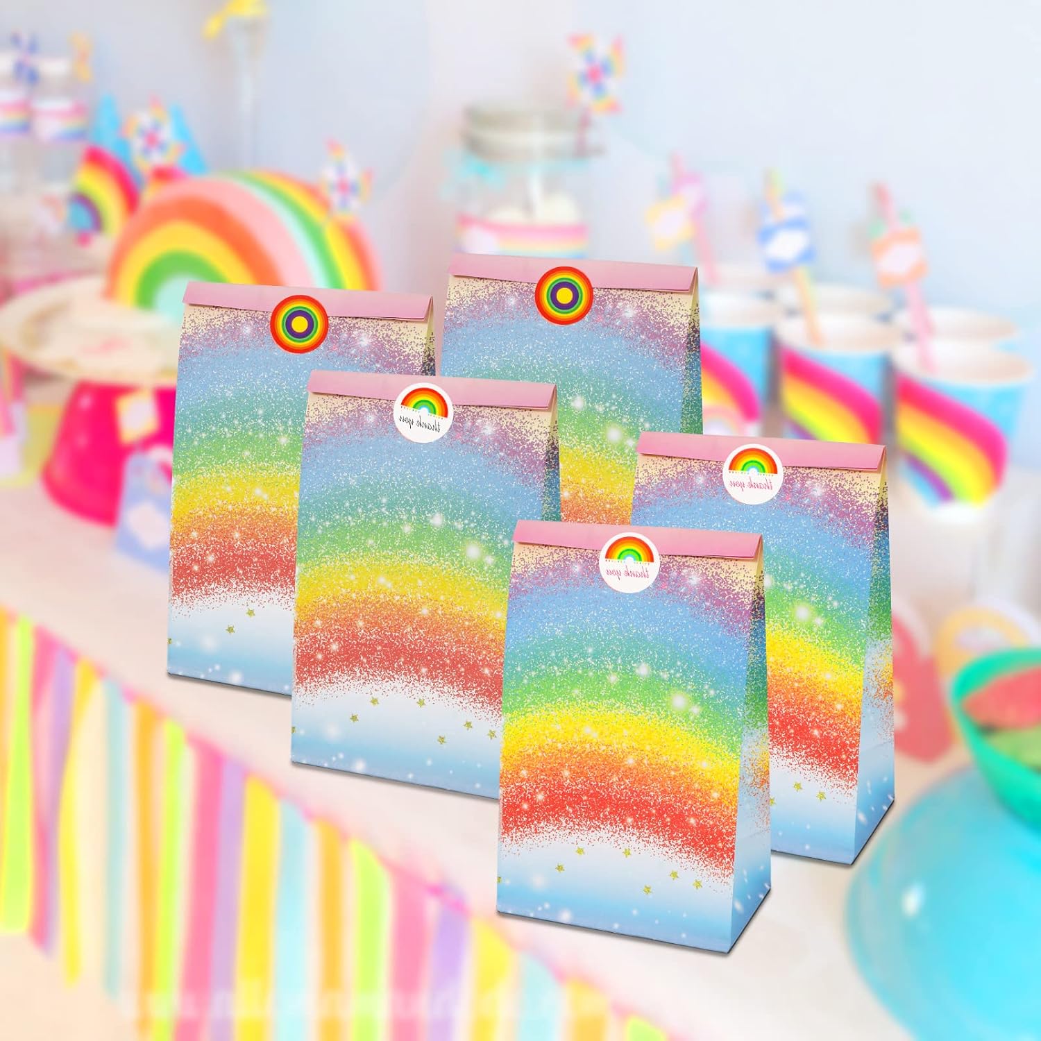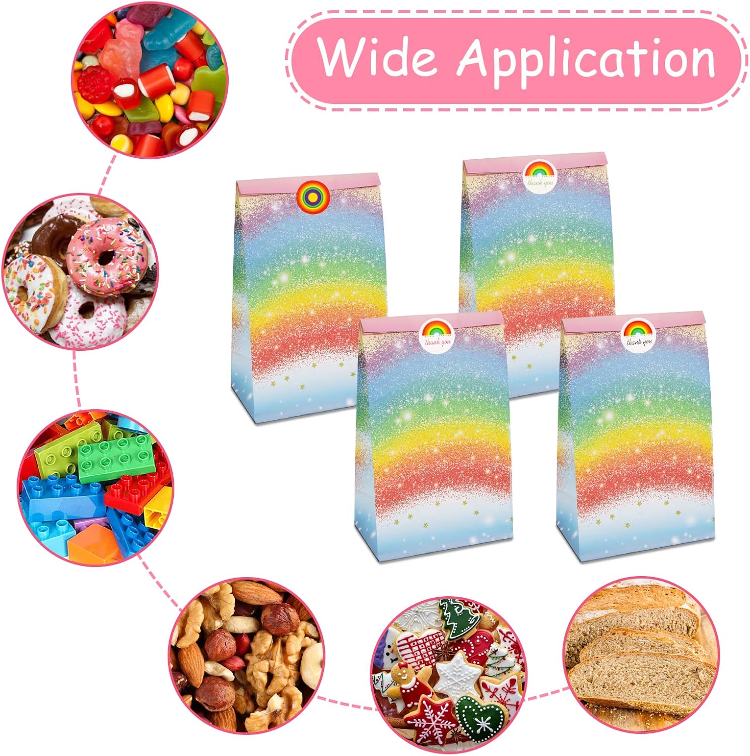 NOTA: questi sacchetti per caramelle arcobaleno sono ideali se stai pianificando una festa di compleanno, un baby shower o un altro evento o celebrazione. Porteranno sicuramente sorrisi alla tua famiglia e ai tuoi ospiti. La confezione include: 24 sacchetti regalo arcobaleno per feste e 30 adesivi arcobaleno con disegni arcobaleno molto carini e belli. Borse da festa arcobaleno: 12,8 * 8 * 24 cm per borsa. Questi sacchetti per dolcetti arcobaleno sono realizzati in carta kraft riciclabile di alta qualità, il fondo rinforzato lo rende molto resistente e non facile da rompere, inoltre non tossico. Adesivi arcobaleno: 30 pezzi, stampati su carta adesiva premium con graziosi disegni arcobaleno in un cerchio da 1,16 pollici. Per sigillare inviti a feste, bottiglie d'acqua, buste, sacchetti arcobaleno, sacchetti festivi, sacchetti di bottino, sacchetti di caramelle e altro ancora!!!
