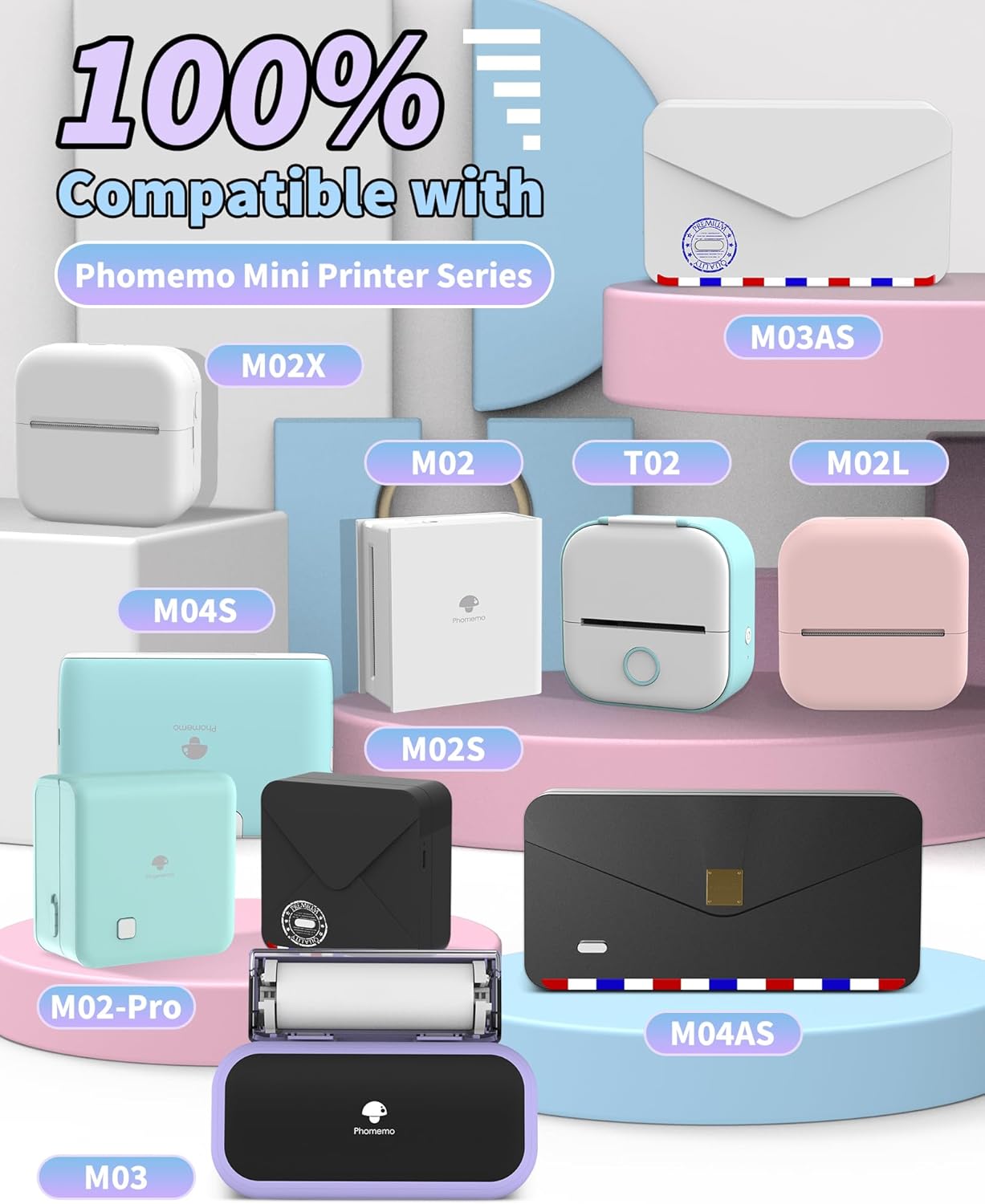 Cosa ottieni: 3 rotoli di carta adesiva multicolore. Rosa chiaro, viola chiaro, azzurro. Stampe in bianco e nero. Il contenuto stampato può essere salvato per 20 anni. Compatibile con - Stampante termica Phomemo M02, M02PRO, T02, M02S, M02X, M02L, M03, M03AS, M04S, M04AS. Uso multiplo - Ideale per la creazione fai da te, foto in bianco e nero, piano di lavoro, promemoria, appunti di riunioni, appunti di studio, lista della spesa. Adatto per ufficio, studenti, archivisti dilettanti, ecc. Buona viscosità - Non preoccuparti che i tuoi adesivi cadano. Puoi stampare la foto come preferisci e usarla per decorare il diario dei proiettili, i regali, ecc. Rendi la tua vita più interessante! Materiale di sicurezza - Questa carta termica realizzata con materiale privo di BPA, economica ed ecologica, per un uso sicuro.