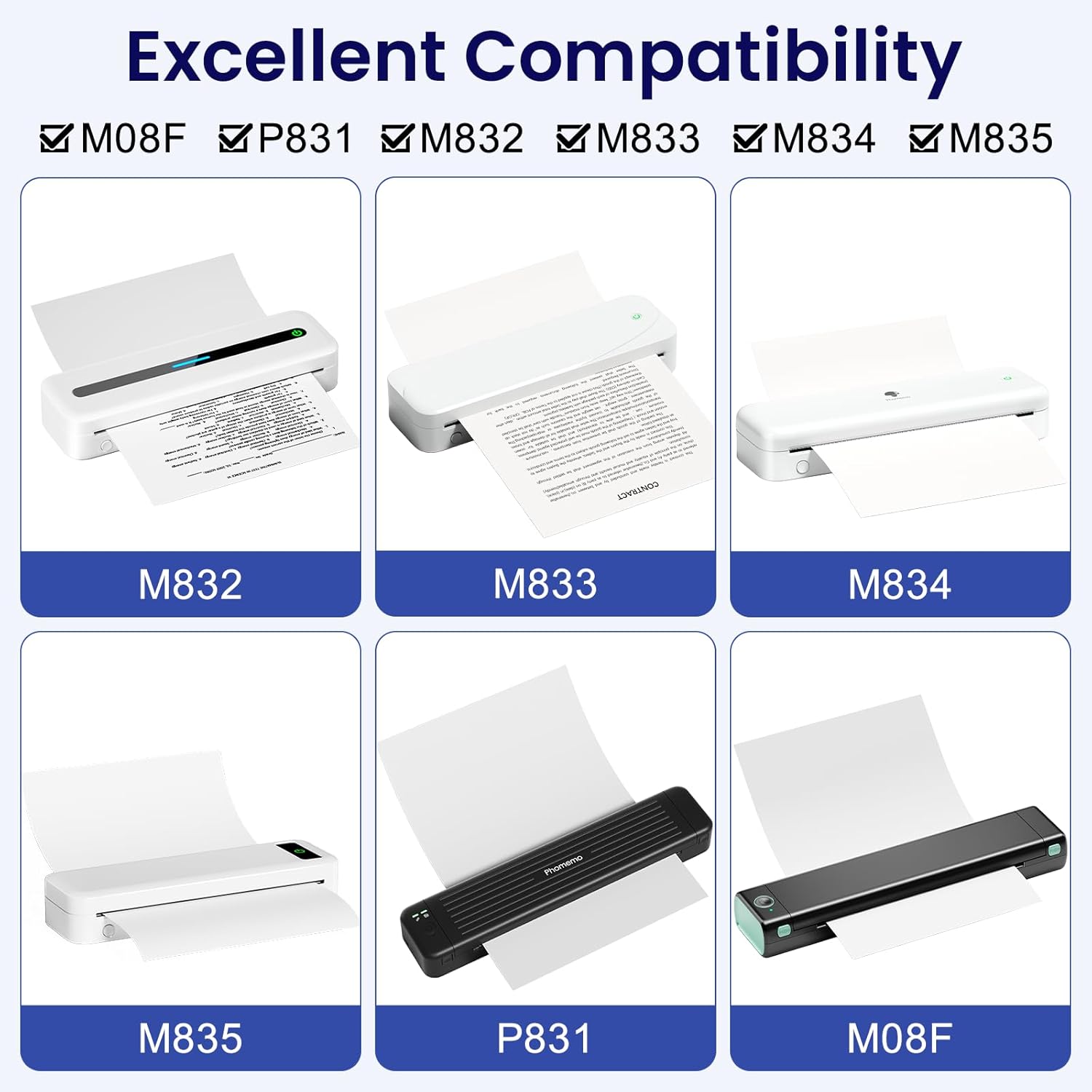 Contenuto della confezione - 100 fogli singoli di carta termica per stampanti A4 non adesiva Phomemo. Dimensioni del prodotto - 210 mm x 297 mm (8,27" x 11,69"). Compatibile con la stampante termica portatile Phomemo M08/M08F/M831/M832/M833/M834/M835 Modello compatibile - Compatibile con la stampante termica portatile Phomemo M08F/P831/M832/M833/M834/M835. Avviso: Non funziona con stampanti laser, stampanti a getto d'inchiostro, fotocopiatrici e stampanti non di marca Phomemo Materiale di alta qualità - Senza BPA, robusto e durevole, liscio e piatto, senza asperità, impermeabile, antiolio, antistrappo e antigraffio Stampa chiara e pulita - La tecnologia di stampa termica diretta fornisce testi, parole e immagini chiare. Non utilizza inchiostro o toner, è pulita ed economica Ampio utilizzo - Adatto per viaggi, ufficio, documenti, contratti, tatuaggi. Testimonia i tuoi risultati nella vita quotidiana