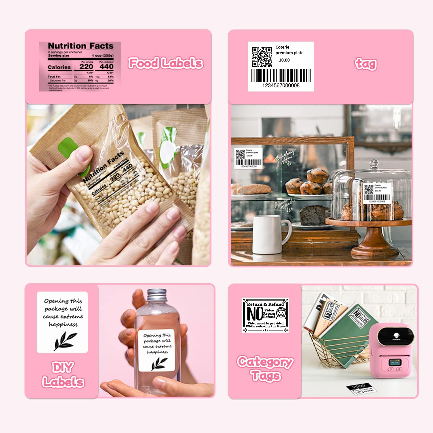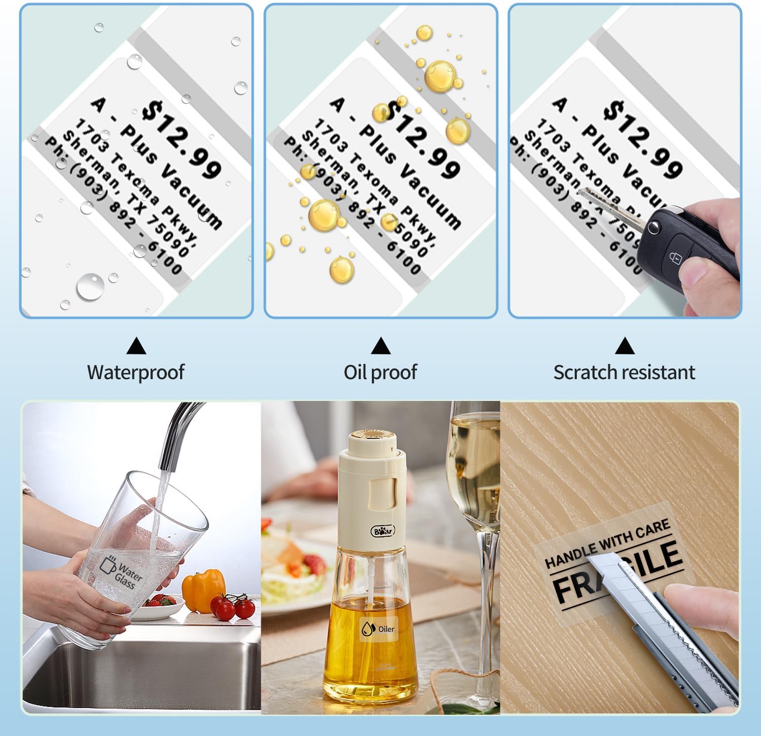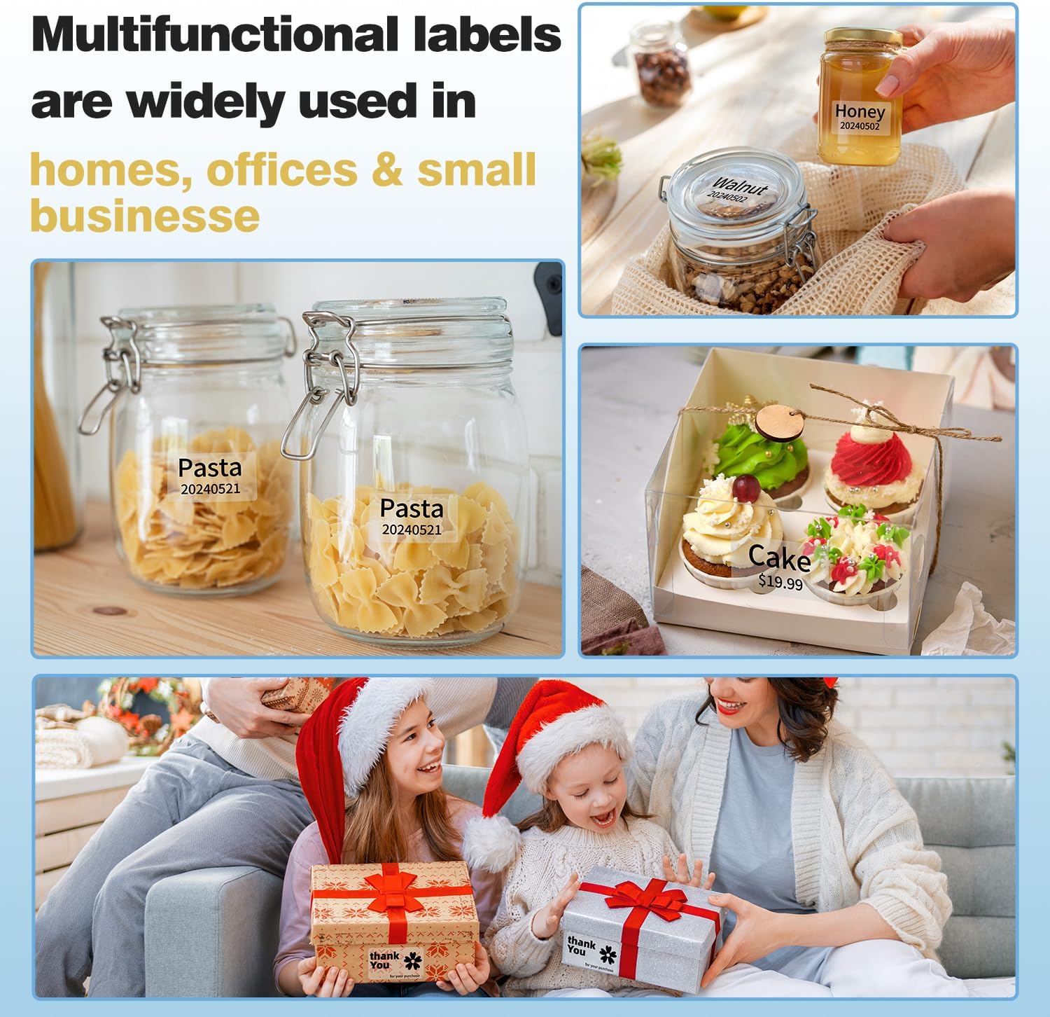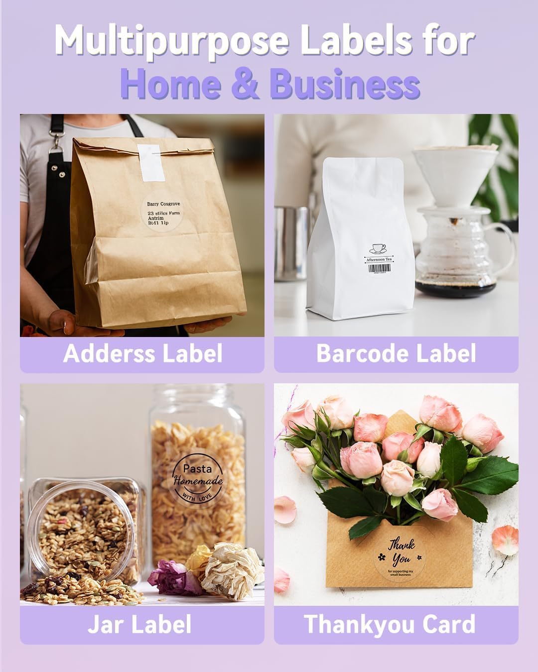 √ Specifiche delle etichette termiche - Etichette trasparenti autoadesive Phomemo, dimensioni: 1,57“ x 1,18” (40 x 30 mm), 230 etichette/rotolo. Colore: etichette rettangolari trasparenti. Ideali per cartellini dei prezzi, codici a barre/codici QR, design di loghi fai-da-te, cartellini dei nomi, cartellini dei prezzi, biglietti di ringraziamento, indirizzi, design di marchi e altro ancora! √Le etichette termiche Phomemo utilizzano la tecnologia di stampa termica diretta e sono compatibili con le stampanti di etichette termiche Phomemo M110/M221/M220/M120/M200. Stampa di lettere nitide senza l'uso di inchiostro o toner costosi, perfetta per la stampa di pacchetti regalo, adesivi per biglietti d'auguri, buste per biglietti di ringraziamento, bouquet, borse, sacchetti di caramelle, bomboniere, saponi da bagno profumati, bottiglie e vasetti di vino e altro ancora. √Forte adesione, durevole e trasparente - Le etichette Phomemo sono realizzate in carta termica sintetica che aderisce a diverse superfici come carta, metallo, plastica, vetro e altro. I bordi resistenti garantiscono che le etichette non si arriccino anche dopo un uso prolungato. Etichette ideali per forniture per ufficio, accessori elettronici, strumenti, utensili da cucina, attrezzature per garage, contenitori, cestini, oggetti personali, artigianato, regali, documenti! √Le etichette Phomemo sono impermeabili, resistenti all'olio, agli strappi, ai graffi, si staccano facilmente e non lasciano segni, per cui potete stare tranquilli nell'utilizzarle in azienda e a casa. Il rivestimento superficiale protegge il contenuto dallo sbiadimento o dal danneggiamento. √L'etichetta termica Phomemo è perfetta per etichette di prodotti, adesivi aziendali, artigianato, adesivi per panifici, adesivi per matrimoni o sigilli per buste. Possono essere utilizzate non solo a casa, ma anche in un'ampia gamma di applicazioni come uffici, scuole, supermercati, negozi al dettaglio, gioiellerie, biblioteche, farmacie e altro ancora.