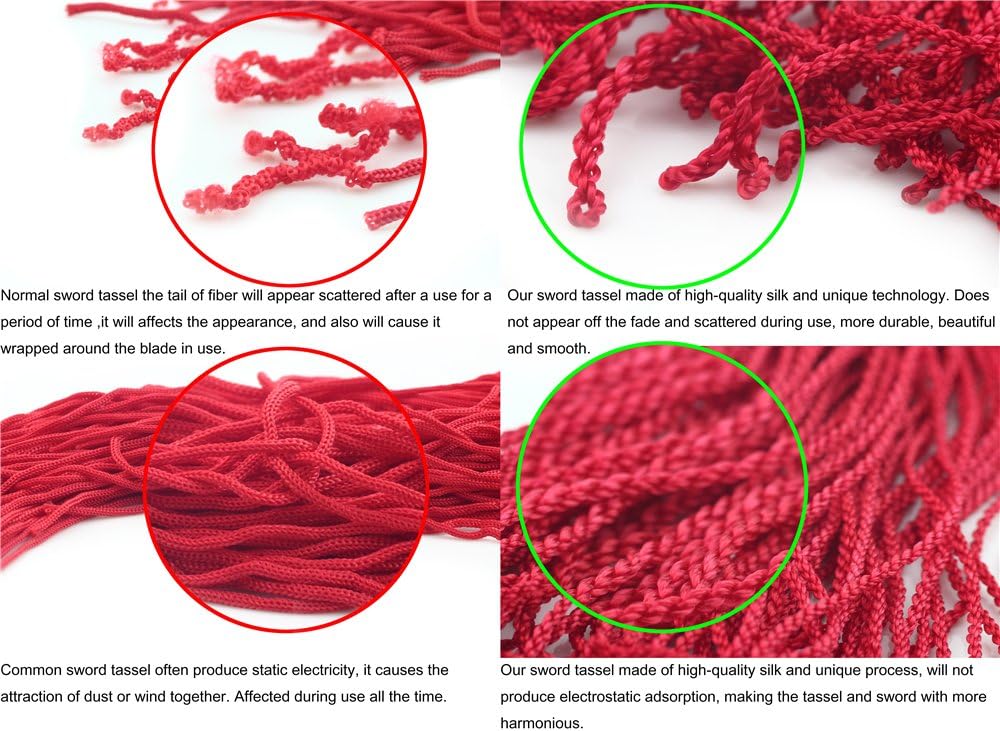 ▶ Design: la nappa di lusso cinese PhysCool è realizzata per migliorare la bellezza della danza della spada, rende la danza della spada più elegante. ▶ Materiale: la nappa spada è realizzata in seta antistatica e anti-biforcazione, resistente e liscia a lungo termine. ▶ Caratteristiche: la coda della nappa è completamente chiusa e non ci saranno biforcazioni. Indipendentemente dal tipo di pieghe appaiono, devi solo appendere per 24 ore per ripristinare la levigatezza. ▶ Specificazione◀ Ci sono 3 diverse lunghezze tra cui scegliere, coprendo la maggior parte della gamma di altezza e adatte a una varietà di esigenze. Contenuto della confezione: 1 nappa di lusso selezionata.