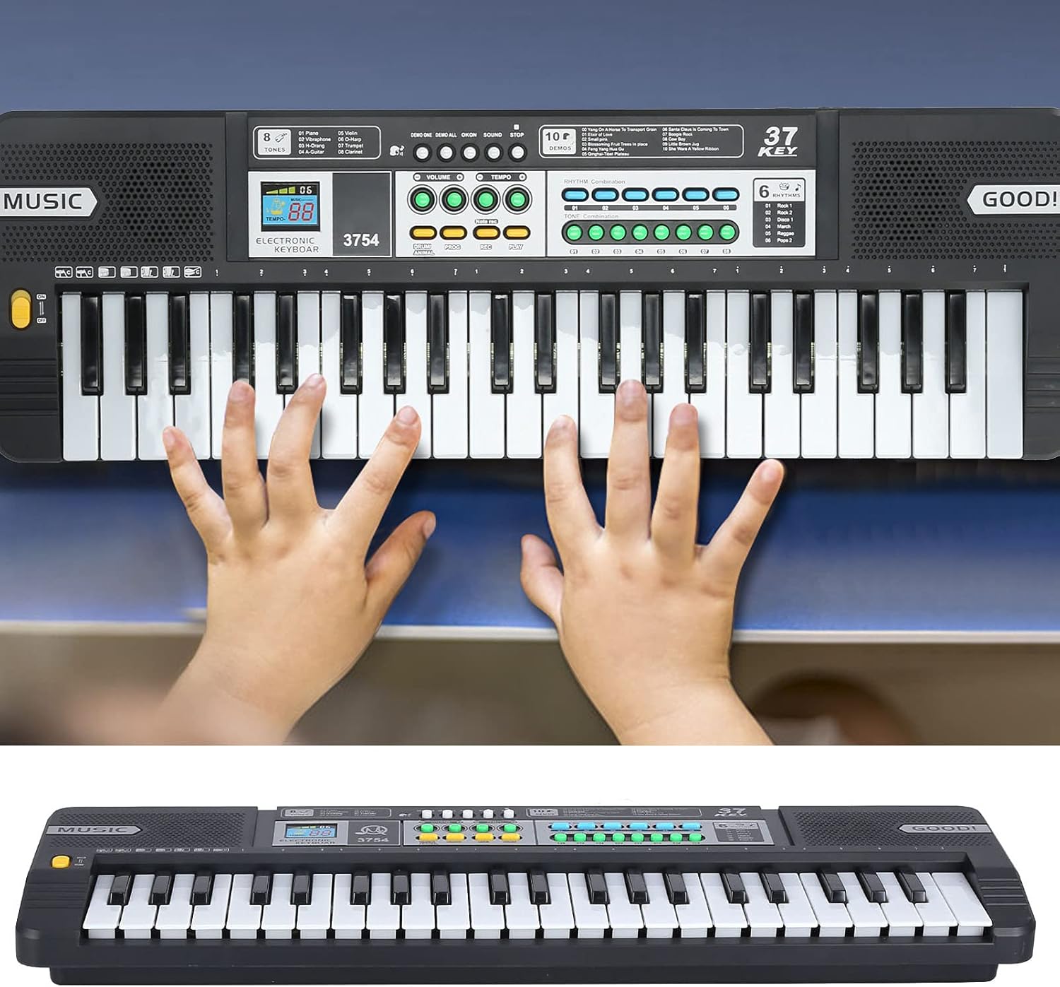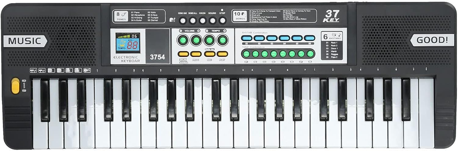 Multifunzionalità-La nostra tastiera elettronica a 37 tasti è lo strumento introduttivo ideale per i giovani musicisti. Con una miscela di funzioni di base e avanzate, questa tastiera versatile consente di esplorare una vasta possibilità musicale, contribuendo a sviluppare le proprie capacità e creatività in tenera età. Sviluppo degli interessi - Progettato per favorire l'amore per la musica, questa tastiera incoraggia a cogliere concetti musicali fondamentali mentre si divertono. Impegnando con una varietà di suoni e ritmi, i bambini non impareranno, ma coltizzeranno anche un interesse duraturo per la musica che può loro per gli anni a venire. Dimensioni adatte ai bambini-su misura specificamente per piccole mani, questa tastiera presenta 37 tasti ben spaziati che sono facili da premere. Le sue dimensioni compatte assicurano che i bambini piccoli e i giovani possano giocare comodamente, promuovendo i movimenti delle dita che si allineano con la loro crescita e sviluppo. Design portatile: leggero e portatile, questo piano elettronico è per sessioni musicali in movimento. Sia a casa, in classe o durante le uscite familiari, i giovani musicisti possono facilmente portare la loro tastiera per godersi la musica in qualsiasi momento, ovunque. Potenza: progettata pensando alla sostenibilità, la nostra tastiera può essere alimentata da quattro batterie AA, riducendo la necessità di un gioco di plug -in costante. Questo aspetto assicura che possa godere di ore di esplorazione della musica pur essendo consapevole del consumo di energia.