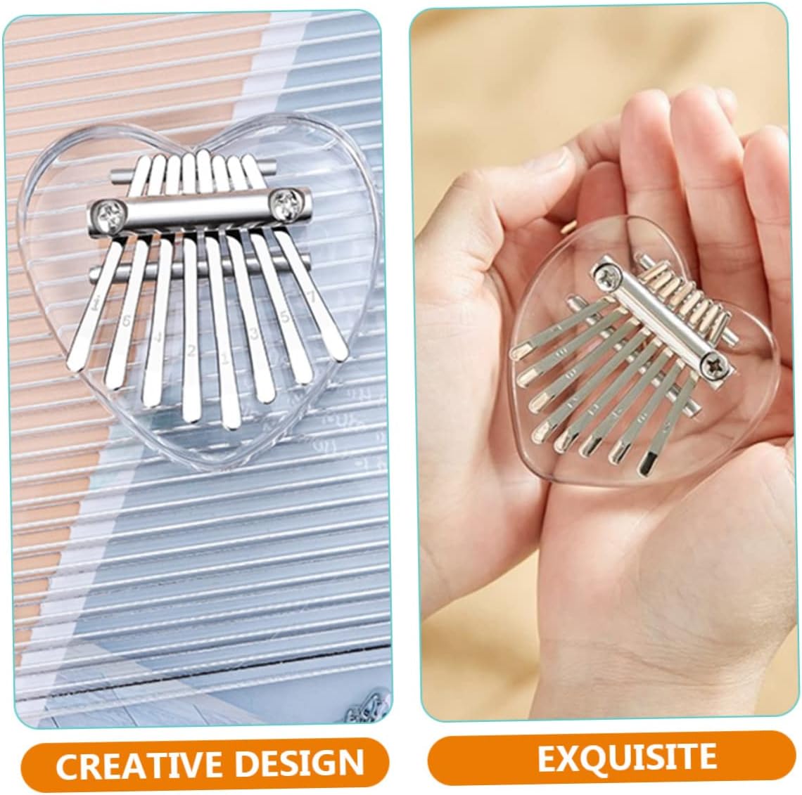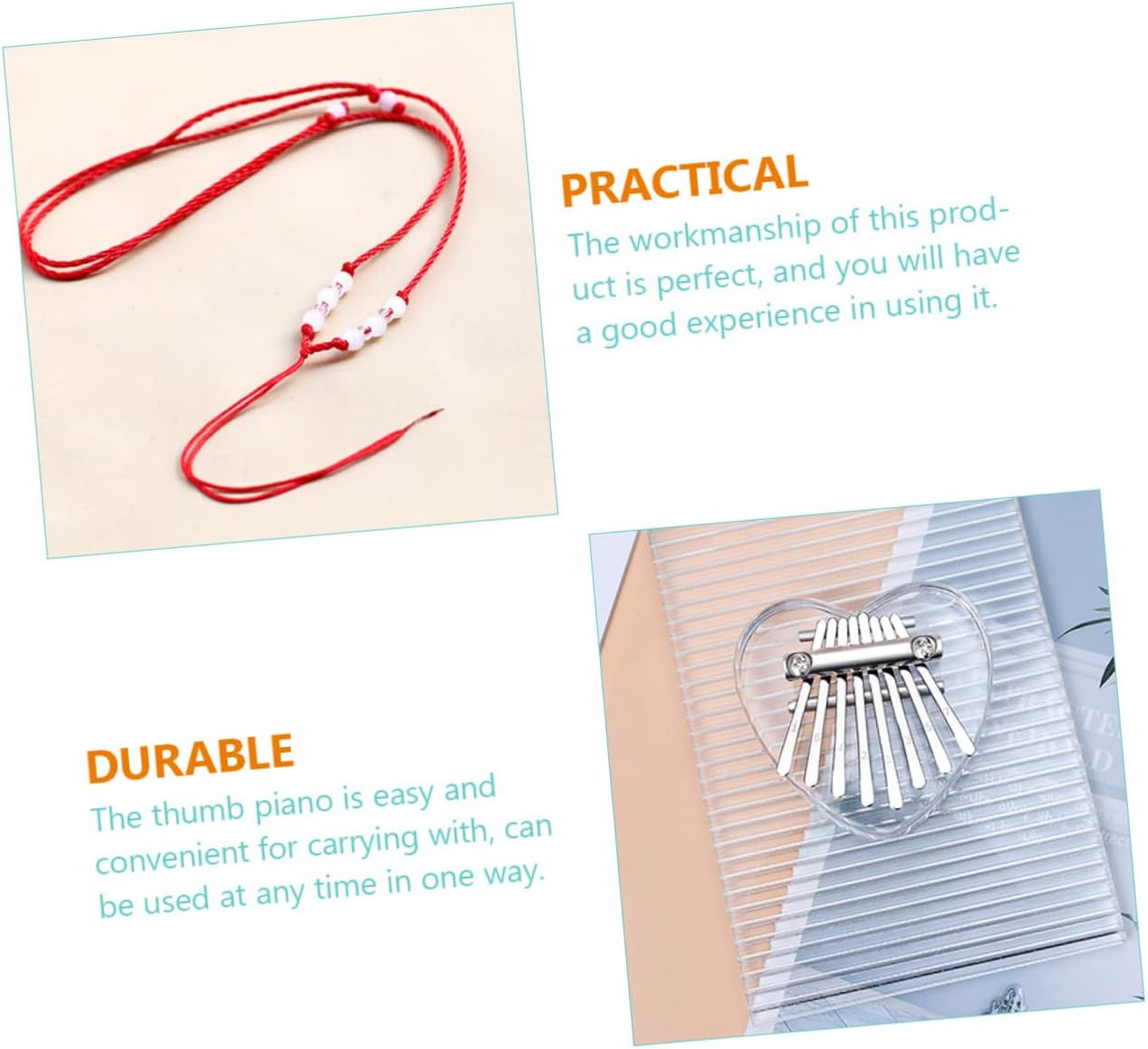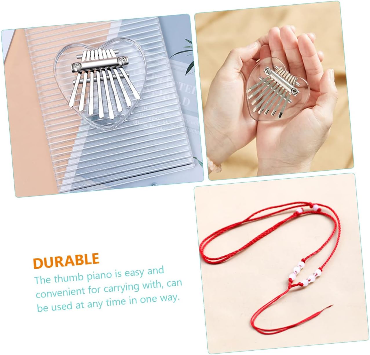 Pianoforte da pollice con cordino: con lavorazione squisita, questo pianoforte da pollice non ha solo un aspetto ma anche una melodia, decorazione in acrilico del pianoforte da pollice Kalimba: è lo strumento musicale per spettacoli, famiglia, attività all'aperto, scuola, feste e tempo libero, Kalimba in miniatura Strumento musicale portatile: il prodotto realizzato in metallo e materiali acrilici è durevole e può essere utilizzato a lungo, strumento musicale Kalimba per principianti: il prodotto può creare un Kalimba bello e naturale e aiutarti a iniziare Kalimba: il design ergonomico e la finitura estetica offrono un'esperienza più comoda e confortevole. Ci sono note incise sulla punta dei tasti, che favoriscono maggiormente la coordinazione occhio-mano rispetto ad altri pianoforti con note adesive e non sono facili da staccare. strumento musicale