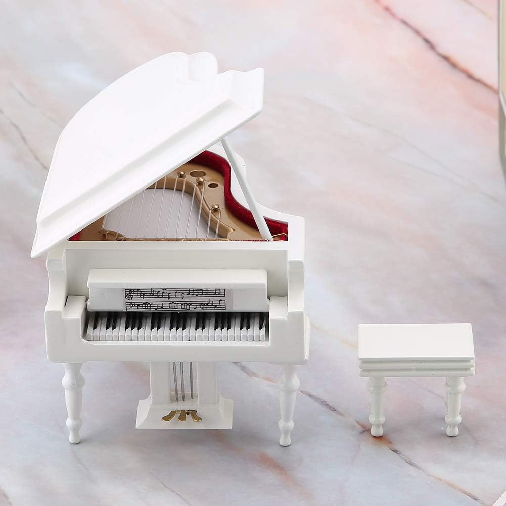 Materiale premium --- Questo modello in miniatura di pianoforte è realizzato in legno di tiglio e plastica, è un artigianato di alta qualità e con una lavorazione della superficie verniciata. Ottimo per un uso prolungato. Le nostre miniature di pianoforte con sedie creano una circostanza romantica e realistica. Esecuzione squisita e design innovativo --- Questo modello è una replica del vero pianoforte. Viene fornito con una panca, può essere posizionato sulla libreria, sulla scrivania, sul tavolino e sulla stanza della musica come decorazione. Contenuto della confezione --- Riceverai 1 pezzo di modello in miniatura di pianoforte nero + sedia. Il modello di pianoforte perfetto è un regalo fantastico per cerimonia di laurea, compleanno, Natale, ecc. Il modello di pianoforte unico è un ottimo regalo per i tuoi amici amanti della musica. Ampia applicazione --- Perfetto per accessori per la casa delle bambole/regali di Natale/regalo di compleanno/regalo per gli amanti della musica/decorazione del desktop per l'home office. Sono ottimi accessori decorativi per scrivania, comodino, armadio da soggiorno, libreria, ufficio, vetrina, auto e così via. Applicabile per: casa delle bambole 1:12 --- Squisita collezione di bambole, un'ottima aggiunta a qualsiasi casa delle bambole tradizionale. Ottimo per aggiungere un'atmosfera di vita alla tua casa delle bambole.