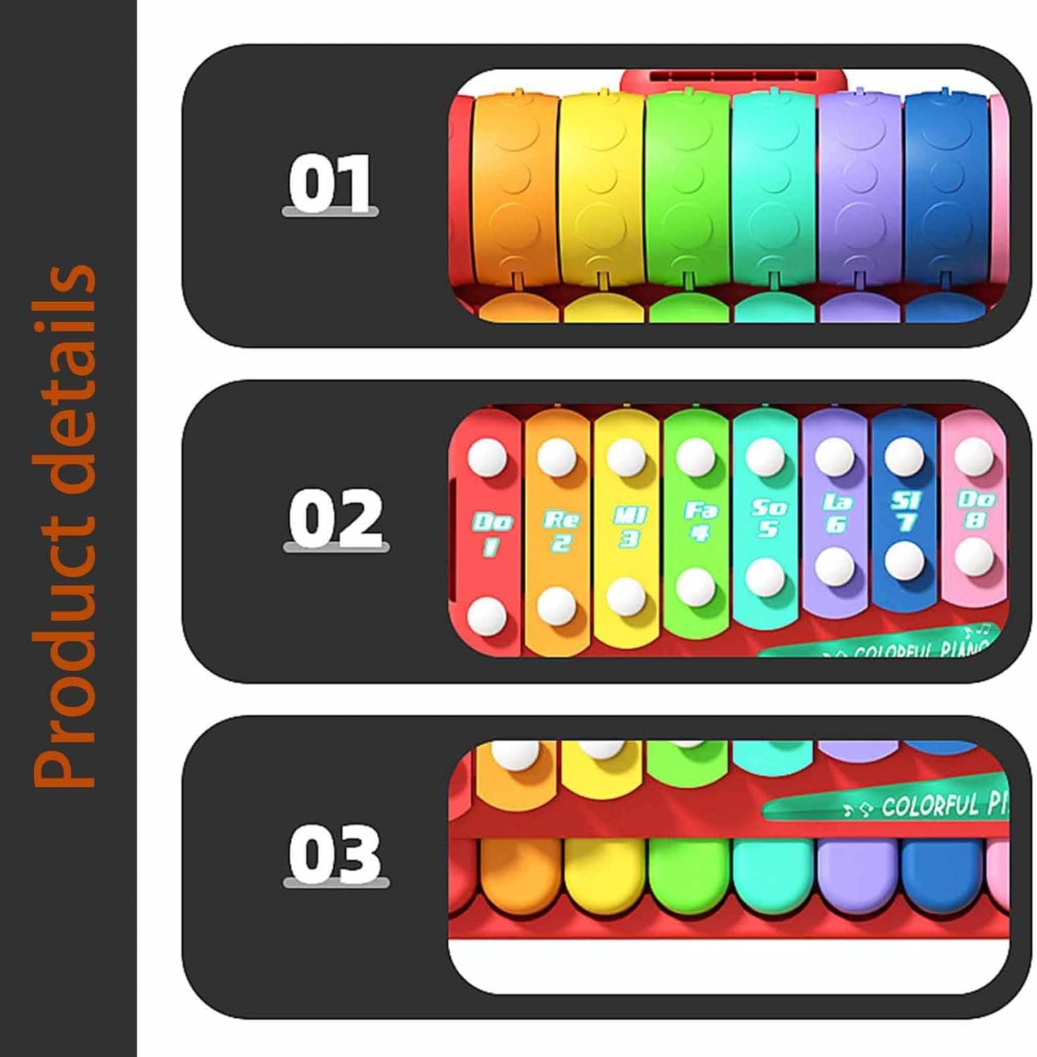 【Design compatto e portatile】: con dimensioni di 20 cm x 19 cm x 13 cm / 7,87 pollici x 7,48 pollici x 5,12 pollici, questo xilofono leggero è facile da trasportare e riporre, ottimo per giocare a casa o in viaggio 【Gioco di apprendimento interattivo】: dotato di mazze facili da impugnare per un gioco coinvolgente che migliora le capacità motorie fini e lo sviluppo cognitivo attraverso divertenti giochi musicali 【Xilofono arcobaleno】: presenta tasti colorati che ispirano la creatività musicale, consentendo ai bambini di esplorare scale, e fantastiche performance, ideali per accendere musicali del tuo piccolo 【Costruzione】: Realizzato in materiale PP di qualità con bordi lisci, garantendo ore di gioco sicuro per neonati e bambini piccoli 【Scelta regalo ideale】: un regalo meraviglioso per compleanni o festività, che unisce intrattenimento e valore educativo per deliziare sia i bambini che i genitori