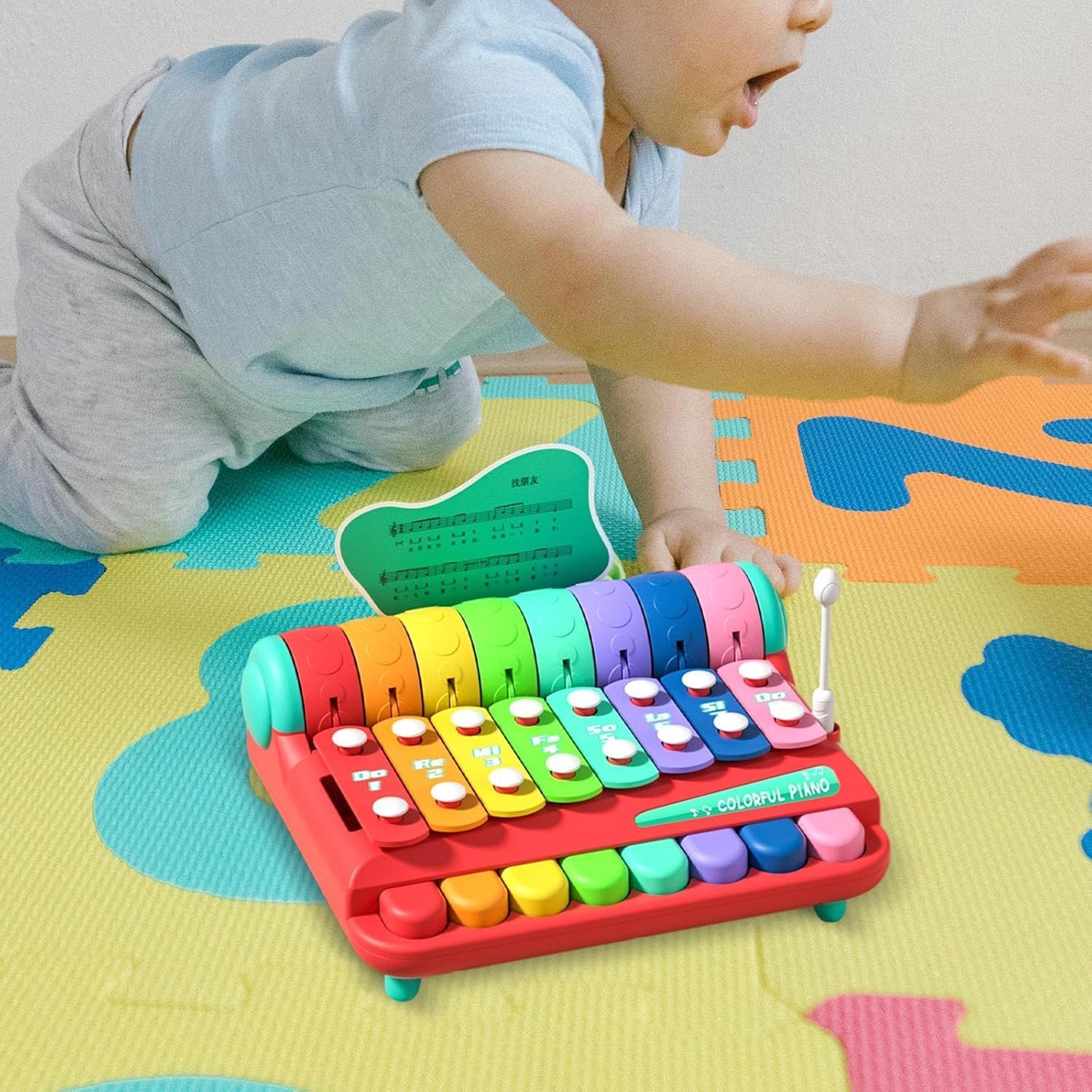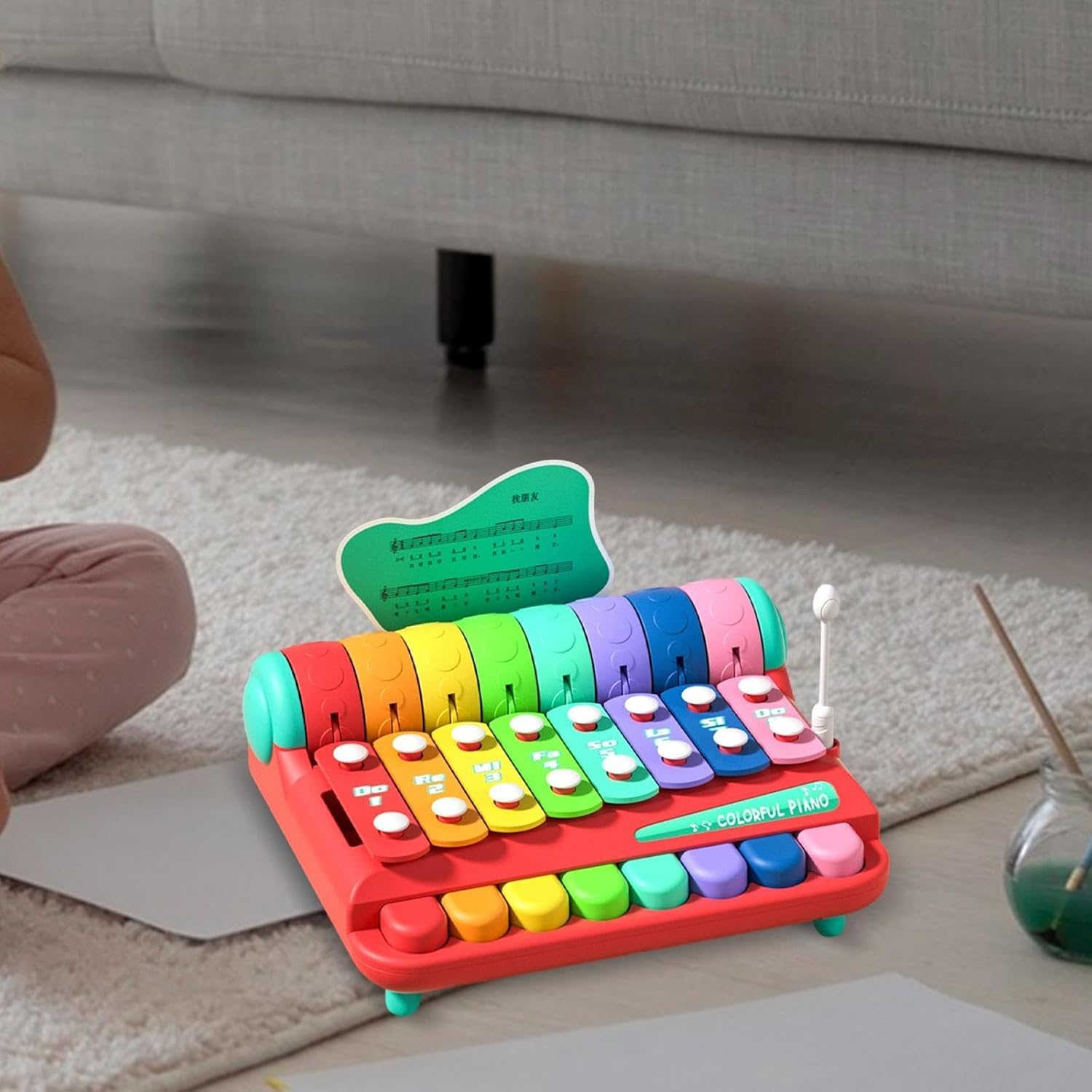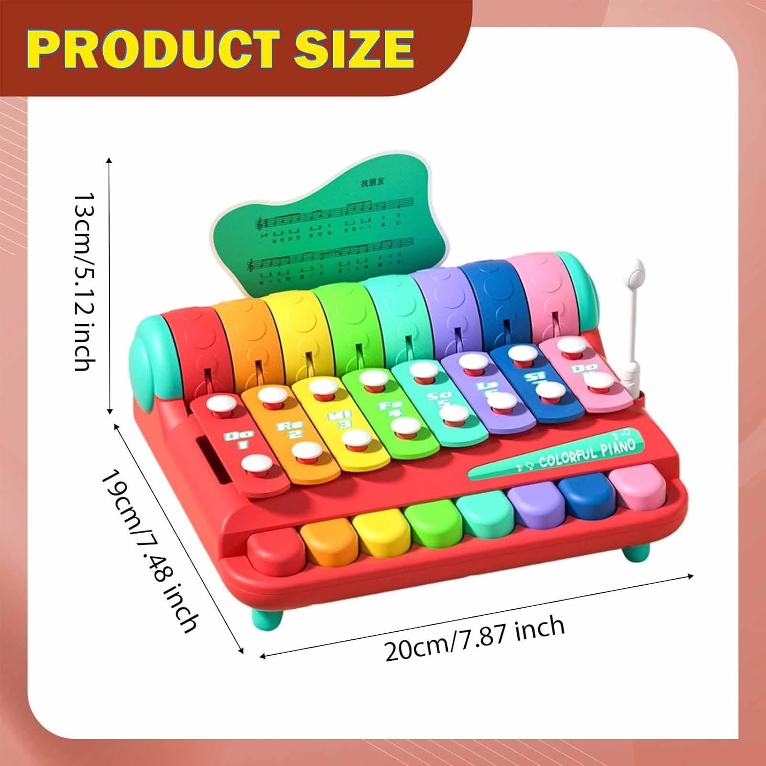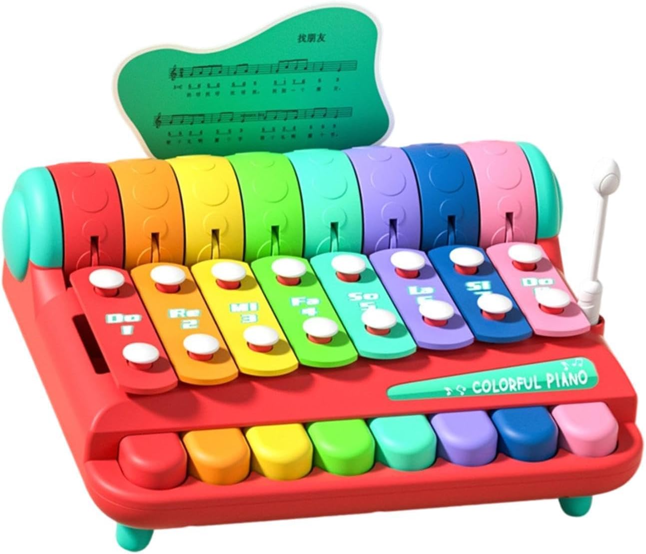 【Xilofono arcobaleno】: presenta tasti colorati che ispirano la creatività musicale, consentendo ai bambini di esplorare scale, e fantastiche performance, ideali per accendere musicali del tuo piccolo 【Gioco di apprendimento interattivo】: dotato di mazze facili da impugnare per un gioco coinvolgente che migliora le capacità motorie fini e lo sviluppo cognitivo attraverso divertenti giochi musicali 【Scelta regalo ideale】: un regalo meraviglioso per compleanni o festività, che unisce intrattenimento e valore educativo per deliziare sia i bambini che i genitori 【Design compatto e portatile】: con dimensioni di 20 cm x 19 cm x 13 cm / 7,87 pollici x 7,48 pollici x 5,12 pollici, questo xilofono leggero è facile da trasportare e riporre, ottimo per giocare a casa o in viaggio 【Costruzione】: Realizzato in materiale PP di qualità con bordi lisci, garantendo ore di gioco sicuro per neonati e bambini piccoli