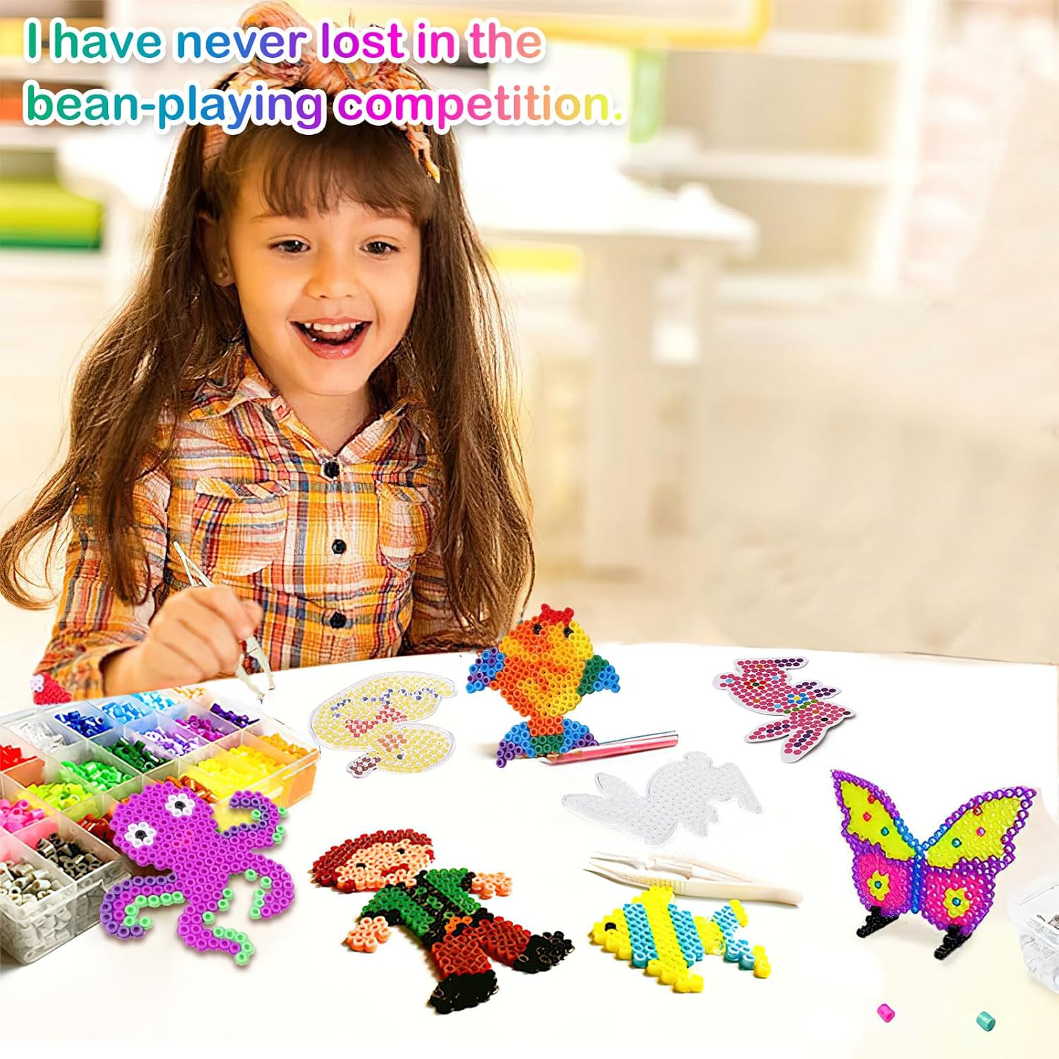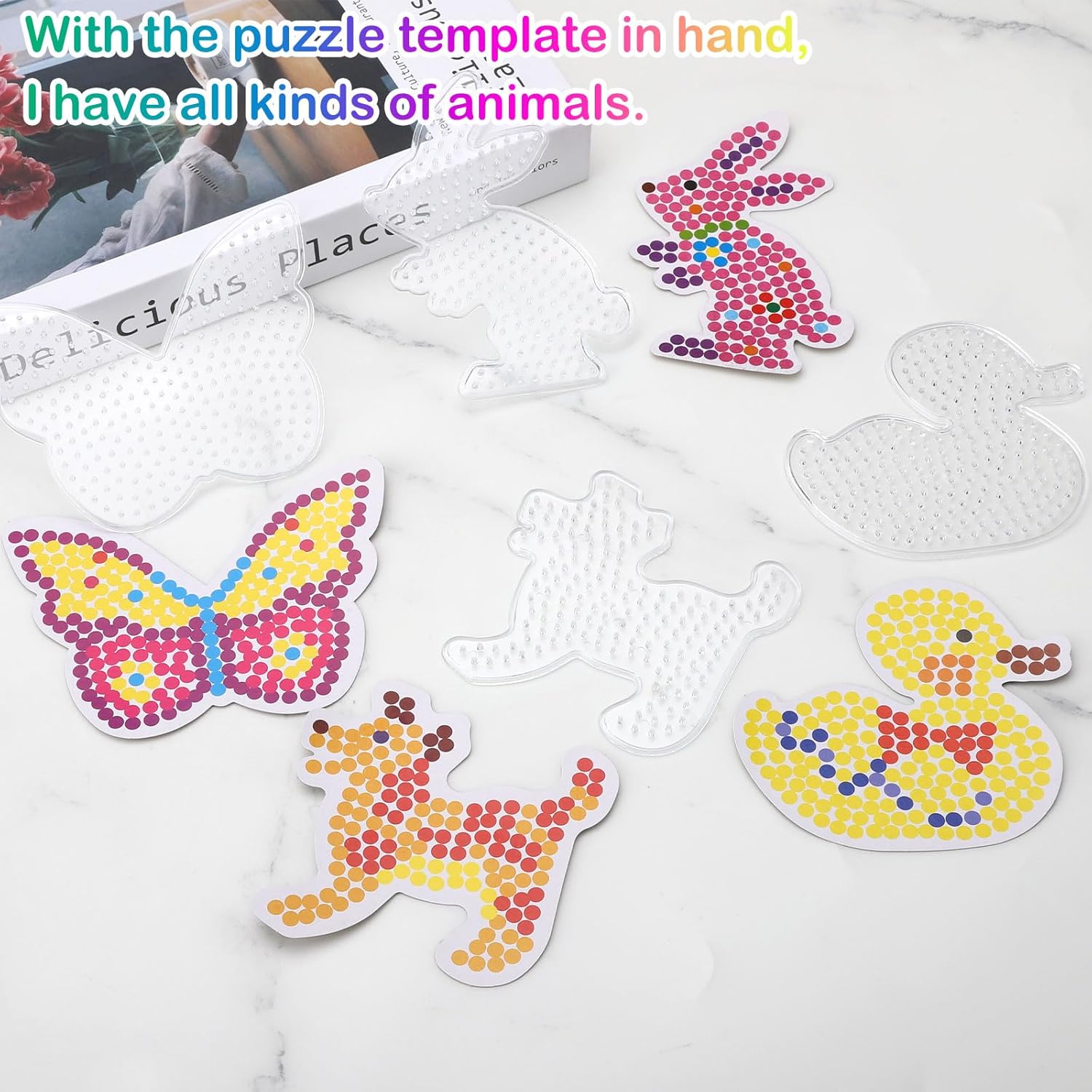 Piastre con perline da stiro, modelli di perline per il fai da te, perline da inserire con accessori in carta da stiro, lavori manuali