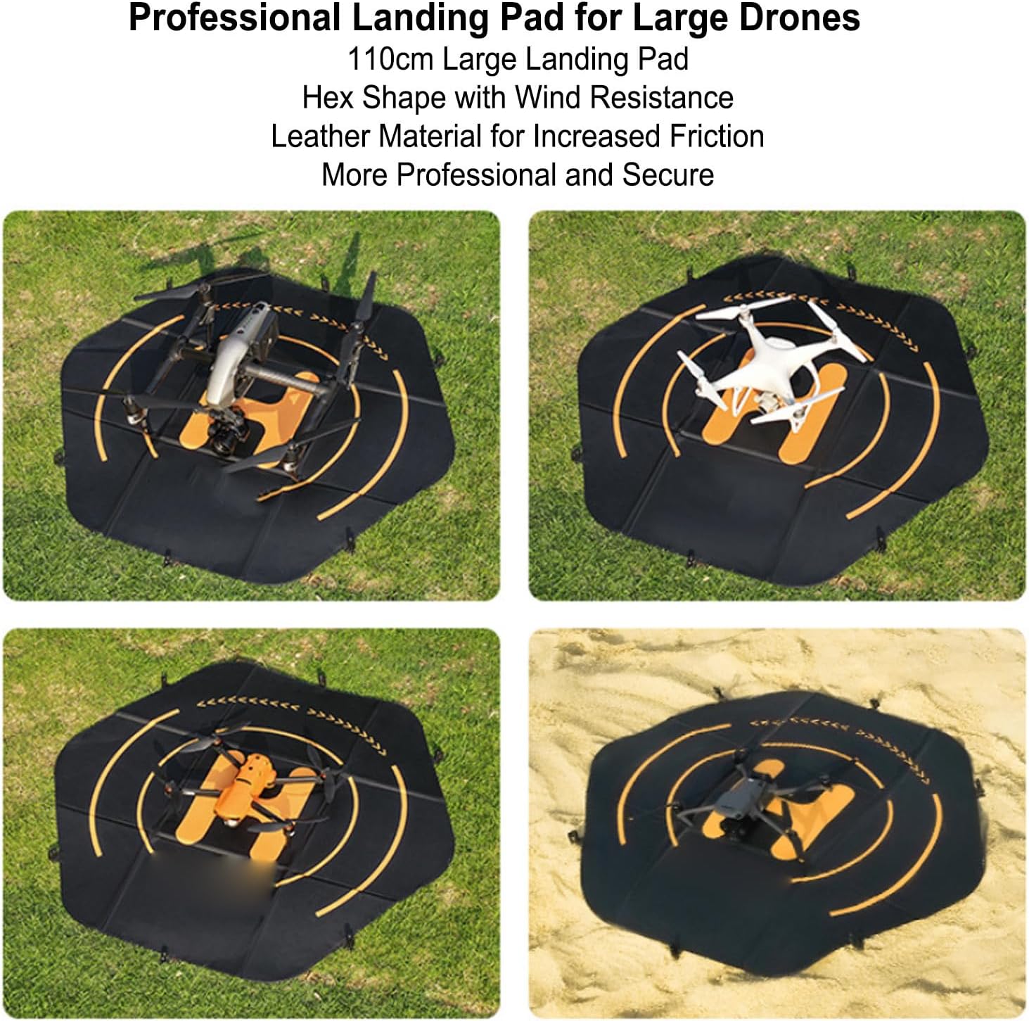 PROTEZIONE EFFICACE: la nostra piattaforma di atterraggio assicura che il tuo drone possa atterrare in sicurezza e previene danni alle lenti e al corpo. Si ripiega rapidamente ed è portatile, con una dimensione simile a un laptop standard per un facile trasporto. BORSA PER IL TRASPORTO INCLUSA: La nostra piattaforma di atterraggio è dotata di una borsa per il trasporto che lo rende facile portare con te durante i servizi fotografici all'aperto. I chiodi a terra sono resistenti al e agli ostacoli, garantendo una maggiore stabilità in ambienti di spiaggia, e foresta. MODELLI DI AEROMOBILI COMPATIBILI: La nostra piattaforma di atterraggio è adatta per droni con un passo inferiore a circa 400 mm, come per la serie Matrice 30, per la serie , per II, per la serie , . DESIGN ESAGONALE: il nostro tappetino di atterraggio professionale è progettato specificamente per droni di grandi dimensioni. La forma esagonale 110 cm è resistente al e agli ostacoli, la stampa esterna a olio è vivida e non facile sbiadire e la superficie in pelle aumenta l'attrito ed è più professionale e . MATERIALE PREMIUM: La nostra piattaforma di atterraggio è realizzata in pelle double face premium che è impermeabile, resistente all'usura e facile pulire. L' di fissaggio in silicone è resistente, durevole e non soggetto a deformazioni, mentre i chiodi a terra sono duri e durevoli.