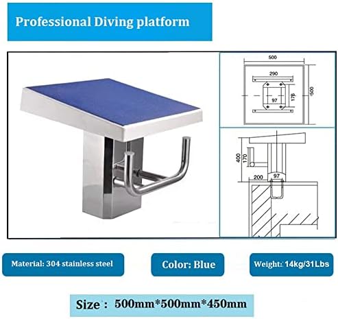 1. [Suggerimenti facili da usare]: le dimensioni sono misurazioni manuali e potrebbero esserci degli errori; assicurarsi che le viti siano saldamente bloccate nella piastra inferiore prima dell'uso e che il terreno sia piano per evitare pericoli; 2. [Comodo da usare]: la piattaforma per tuffi in piscina è stata progettata con una configurazione unitaria, non necessita di assemblaggio. Include quattro bulloni di espansione in acciaio inossidabile per un fissaggio sicuro sul bordo della piscina. Facile da installare sulla piscina attuale e non richiede pretrattamenti durante la costruzione della piscina. 3. [Affidabile da usare]: la base della piattaforma per tuffi in piscina e la stretta di mano per il dorso sono realizzate in robusto acciaio inossidabile 304, antiruggine e durevole per uso esterno. Il materiale e la struttura resistenti consentono una capacità di carico fino a 500 libbre. 4. [Sicuro da usare]: la superficie del blocco di partenza della piattaforma per tuffi in piscina è realizzata in resina antiscivolo con particelle dense concavo-convesse, che aumenta notevolmente la forza di attrito per ridurre il rischio di scivolamenti e cadute. Il bordo della piattaforma è trattato in modo uniforme per prevenire ammaccature e graffi durante l'uso. 5. [Uso professionale]: la parte superiore della piattaforma per i tuffi è inclinata di 10° rispetto alla superficie dell'acqua, in modo che i nuotatori possano afferrarla stabilmente e sporgersi in avanti. I parametri del blocco di partenza sono in linea con gli standard FINA e adatti a singoli atleti professionisti e a competizioni.