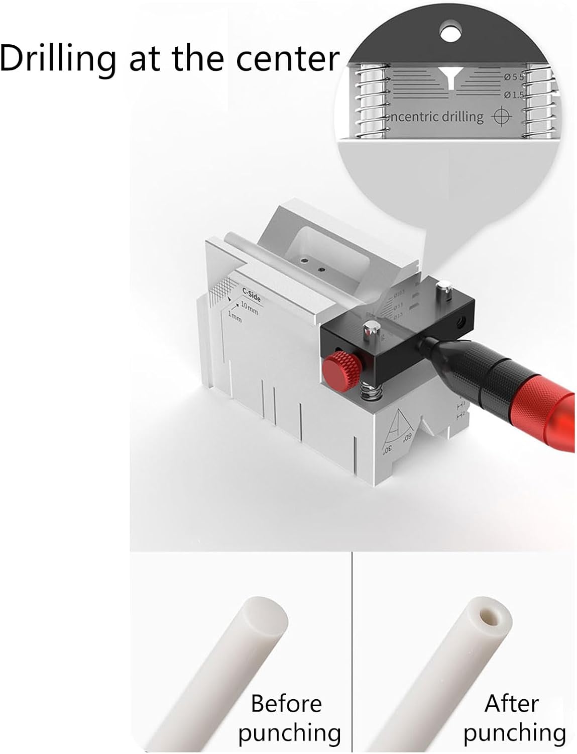 La piattaforma multiuso di supporto per la lavorazione per attività di foratura verticale, smussatura e allineamento, realizzata in una lega di alluminio leggera ma resistente per prestazioni di lunga durata. Per basi di officina o stazioni di modellazione, questo strumento semplifica la foratura angolata e la smussatura dell'asta in scenari di prototipazione o riparazione. Per trapani standard con gambo da 3.175 mm e bordi larghi 6 mm facilmente sostituibili, fornisce foratura e finitura dei bordi Blocco scorrevole regolabile con scala incisa per un allineamento preciso dell'asta (diametro 1,5-10,5 mm), mentre gli attacchi per righello da 0-34 mm consentono una spaziatura uniforme dei fori per progetti ripetitivi. Ideale per modellisti, fai da te e hobbisti che necessitano di strumenti affidabili e precisi per la produzione dettagliata o l'ingegneria in miniatura