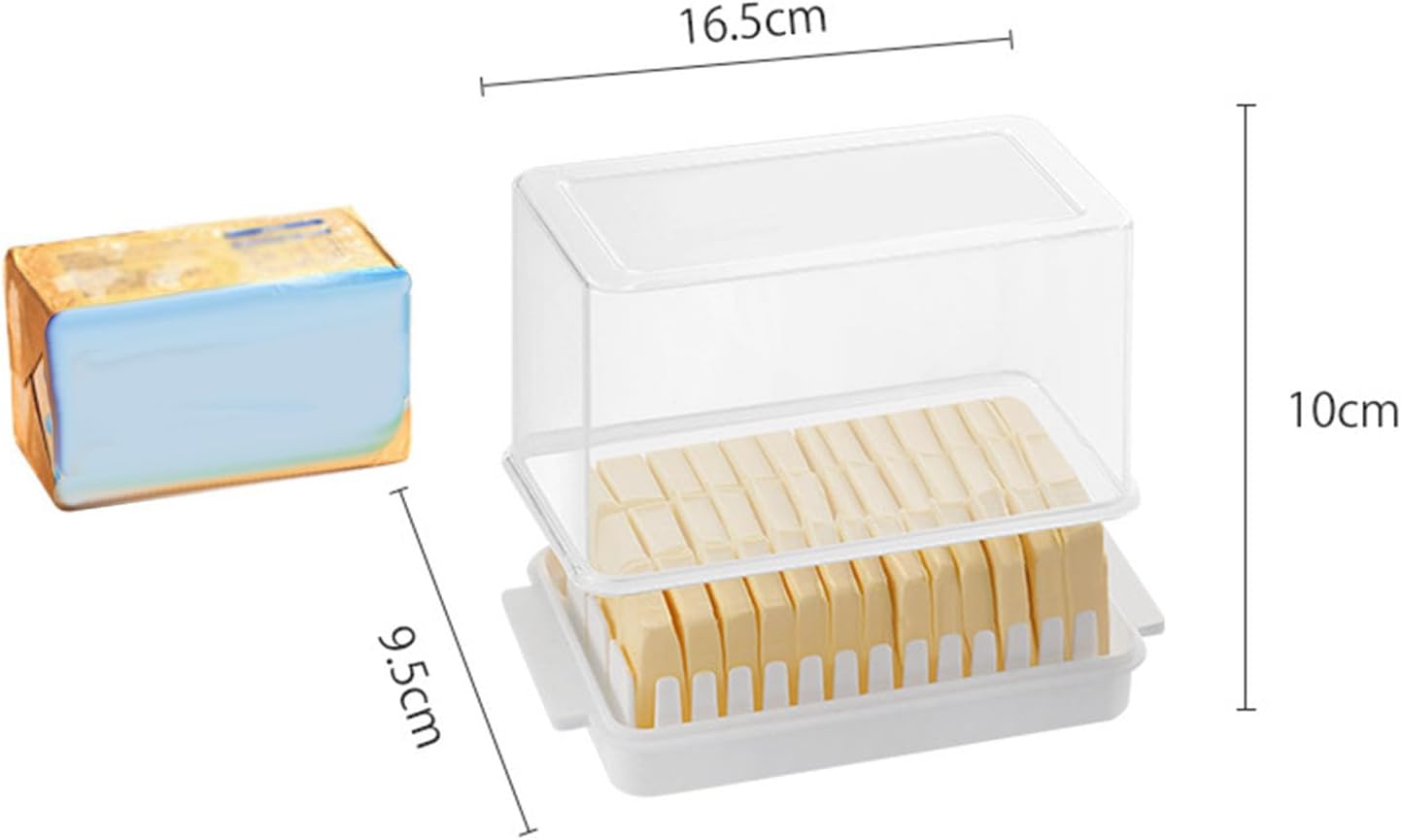[Materiale durevole premium] realizzato con materiale PP di alta qualità Questo piatto da taglio del burro con coperchio è costruito per durare la costruzione robusta assicura che sia impermeabile e resistente alla deformazione che garantisce un uso a lungo termine in cucina o congelatore il suo design robusto resiste a usura quotidiana e lacrime. [Taglio uniforme preciso] Progettato per l'accuratezza Questa scatola di taglieri di burro garantisce tagli uniformi e coerenti ogni volta che il design innovativo rende senza sforzo tagliare il burro in porzioni perfette che ti risparmiano tempo e fatica in cucina i bordi lisci e la superficie facile da pulire aggiungi alla sua comodità che lo faceva avere un utensile [Comoda soluzione di stoccaggio] Questa scatola di burro è perfetta per mantenere il burro fresco e organizzato sia in frigorifero che in cucina controso [Coperchio di vista facile trasparente] Il coperchio trasparente trasparente consente di identificare rapidamente il contenuto all'interno senza aprire la scatola Questa funzione è particolarmente utile quando è necessario afferrare il burro in fretta, il coperchio è anche progettato per sigillare strettamente il tuo burro. [Cucina versatile essenziale] Oltre allo stoccaggio del burro Questo contenitore è per organizzare il tofu del formaggio e altri oggetti simili il suo design multifunzionale lo rende un'aggiunta versatile a qualsiasi cucina per la preparazione dei pasti o l'uso quotidiano questa scatola aiuta a mantenere i tuoi ingredienti ordinatamente immagazzinati e facilmente accessibili