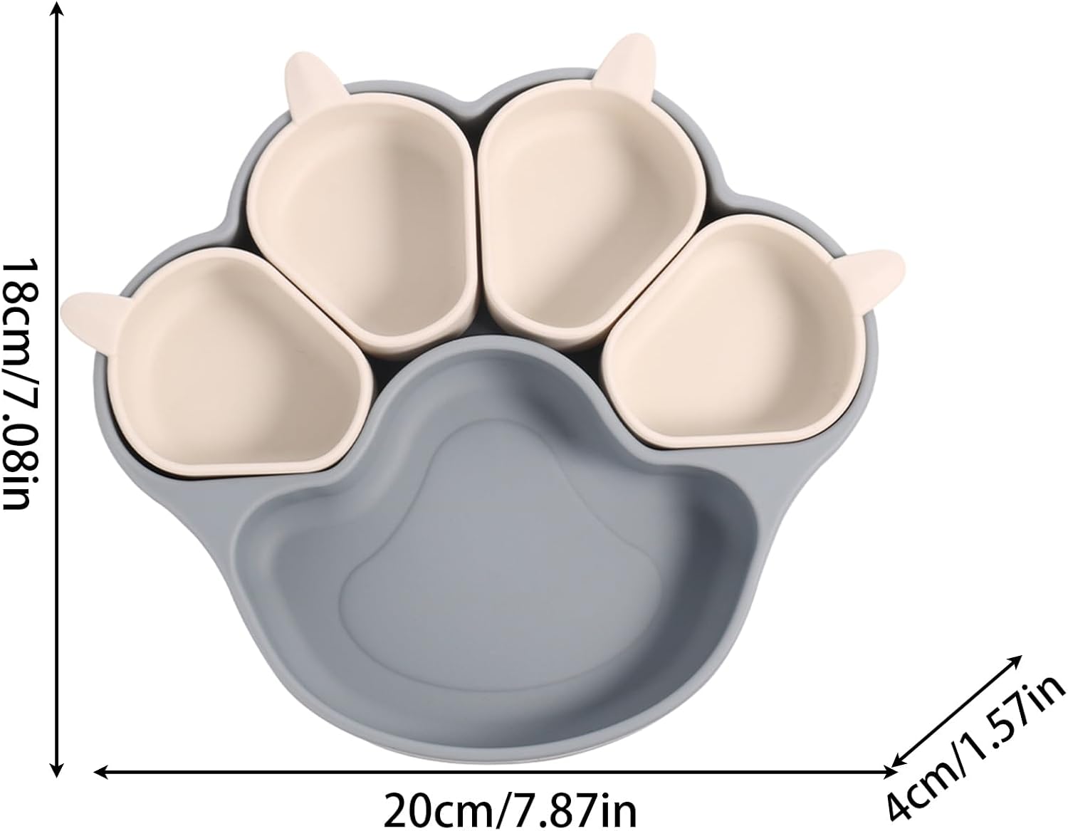 Materiale sicuro: la nostra piastra a ventosa è realizzata in silicone alimentare di alta qualità, caratterizzato da elevata durata e sicurezza. Resiste e offre alla tua famiglia una lunga durata. Forma innovativa: la piastra a ventosa con la sua attraente forma ad artiglio di gatto rende questa attività giocosa per i bambini. Il suo design carino aggiunge un tocco divertente al tavolo da pranzo e fa sì che i bambini possano godersi il pasto con più entusiasmo, con il risultato di abitudini alimentari più sane. Multiuso: grazie al suo design versatile a ventosa, il nostro piatto si adatta a tutti i tipi di eventi. Perfettamente adatto per le esigenze di ristorazione in famiglia, al picnic e all'asilo Stabilità ideale: dotato di una potente ventosa, il design a ventosa di grandi dimensioni può essere fissato saldamente al tavolo da pranzo, impedendo ai bambini di spingere o ribaltare il piatto. Sviluppare abitudini gustose: il nostro piatto a ventosa ha scomparti indipendenti per diversi alimenti, che promuovono abitudini alimentari più sane e sviluppano preferenze di gusto nei bambini piccoli.