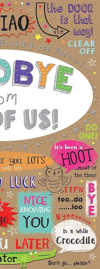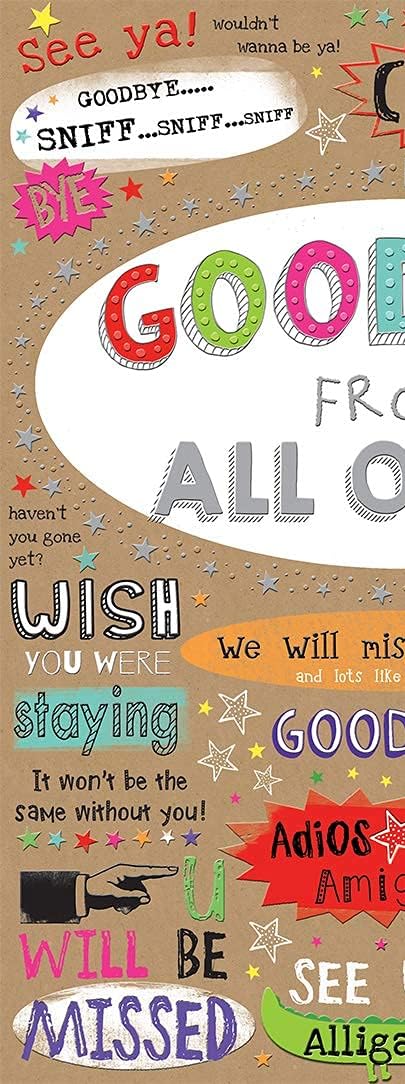 Biglietto d'auguri e busta di alta qualità Didascalia: Arrivederci da tutti noi Descrizione: Testo completo Dimensioni: circa 12 x 9 pollici Progettato e prodotto nel Regno Unito