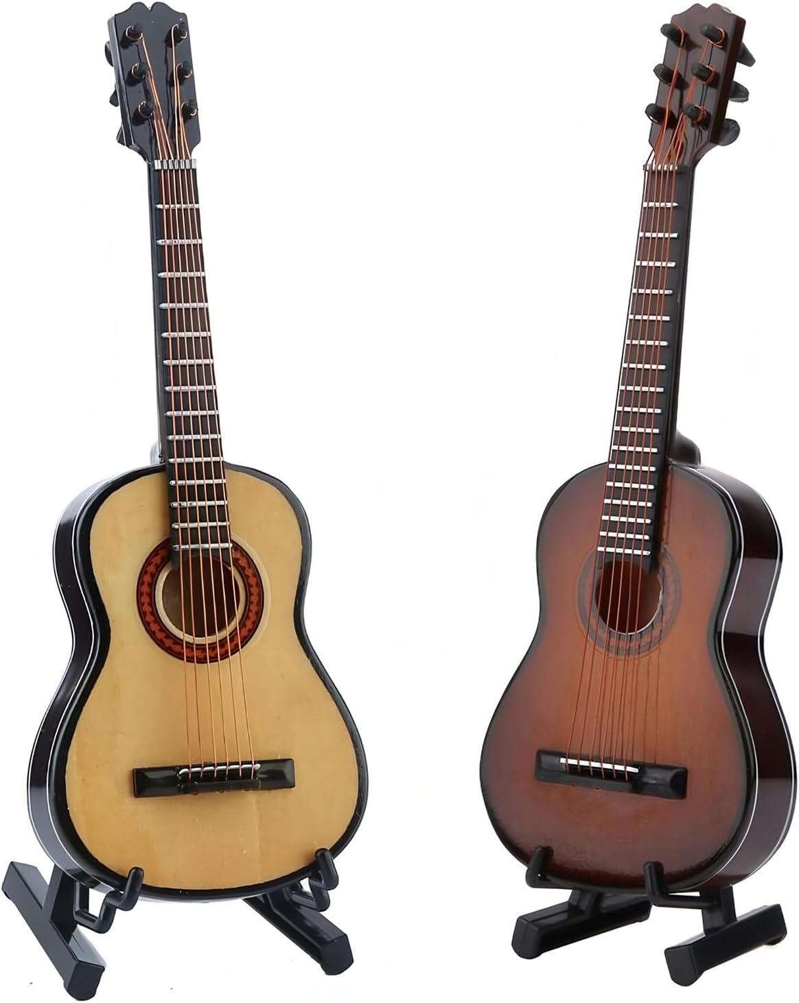 Migliora la tua casa, ufficio o spazio studio esponendo questa statuetta decorativa di chitarra su scrivanie, scaffali o con il espositore incluso. Queste robuste repliche di chitarra sono realizzate in legno per migliorare la durata e l'impatto visivo. Mantengono la loro integrità strutturale come decorazione musicale duratura Un regalo premuroso per compleanni o vacanze, che unisce artigianato artistico e passione musicale in una scultura in legno in miniatura senza tempo Ideale per amanti della musica, hobbisti e interior designer alla ricerca di strumenti musicali unici da collezionare o esporre pezzi che stimoleranno conversazioni Modello squisitamente realizzato da 15 cm di una chitarra classica in miniatura in legno con dettagli intricati tra cui corde, piroli e tastiera, perfetta per gli amanti degli strumenti e i collezionisti