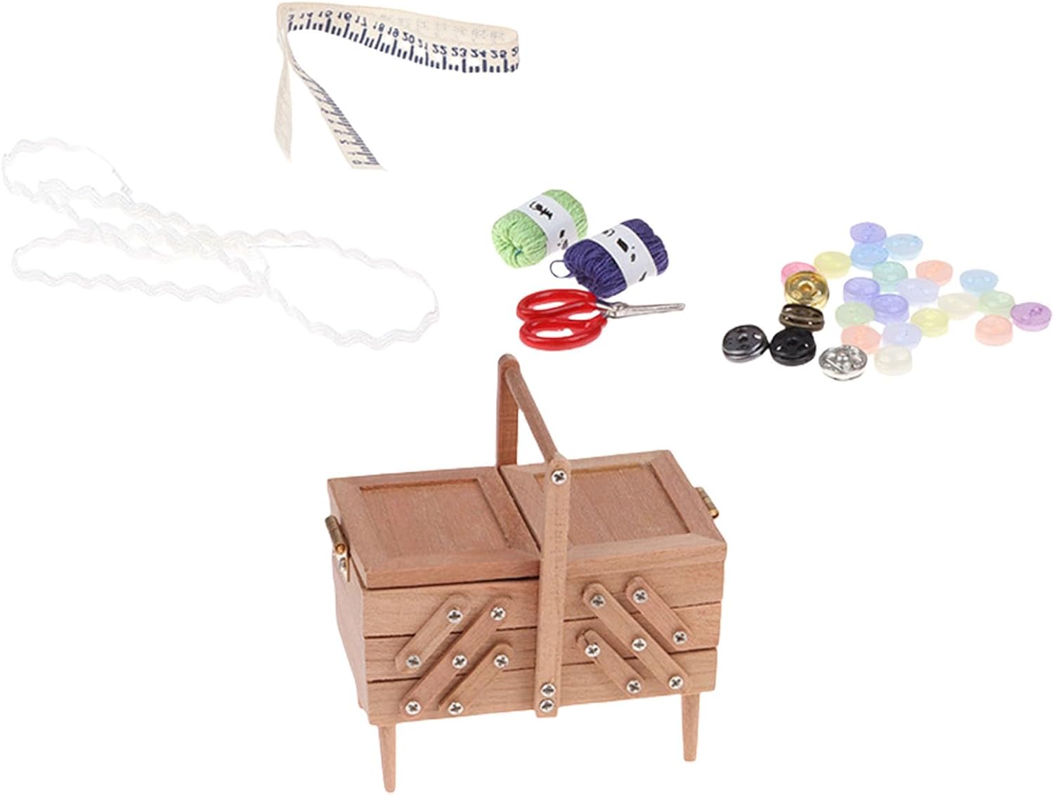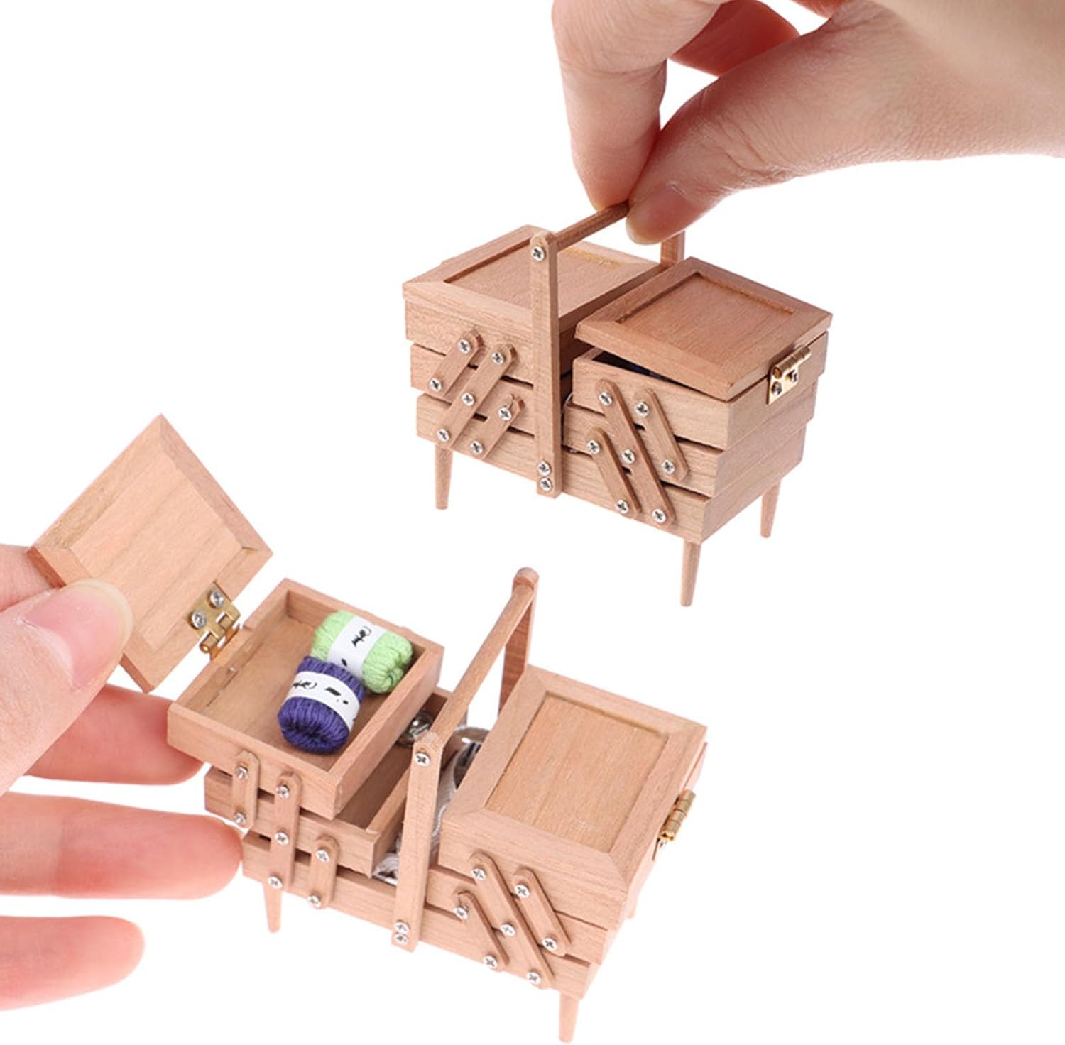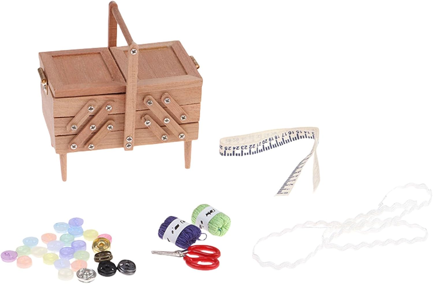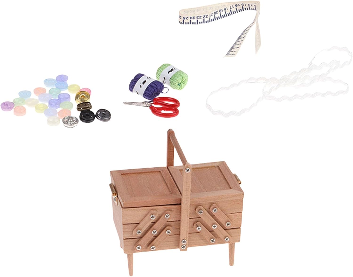 Realizzato in legno liscio con una forma retrò di strumenti da cucito, questa miniatura include fessure per aghi realistiche e scanalature per bobine di filo, catturando il fascino degli accessori da cucito antichi Elaborato 1/12 case delle bambole vintage strumenti da cucito scatola da cucito, texture in legno e intricati dettagli in miniatura per un tocco nostalgico Perfettamente dimensionato per case delle bambole tavoli da toeletta o angolo di artigianato. Ottimi oggetti di scena fotografici Il design vintage si armonizza con vari decori per case delle bambole, offrendo sia un fascino decorativo che uno spazio funzionale per piccoli accessori da cucito Ideale per gli appassionati di case delle bambole, collezionisti di miniature e hobbisti che cercano mobili vintage per la loro piccola scena domestica
