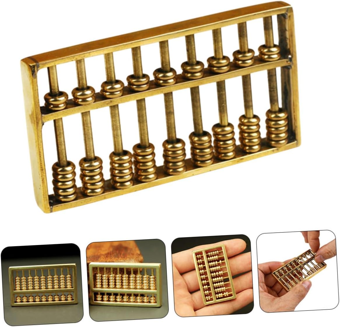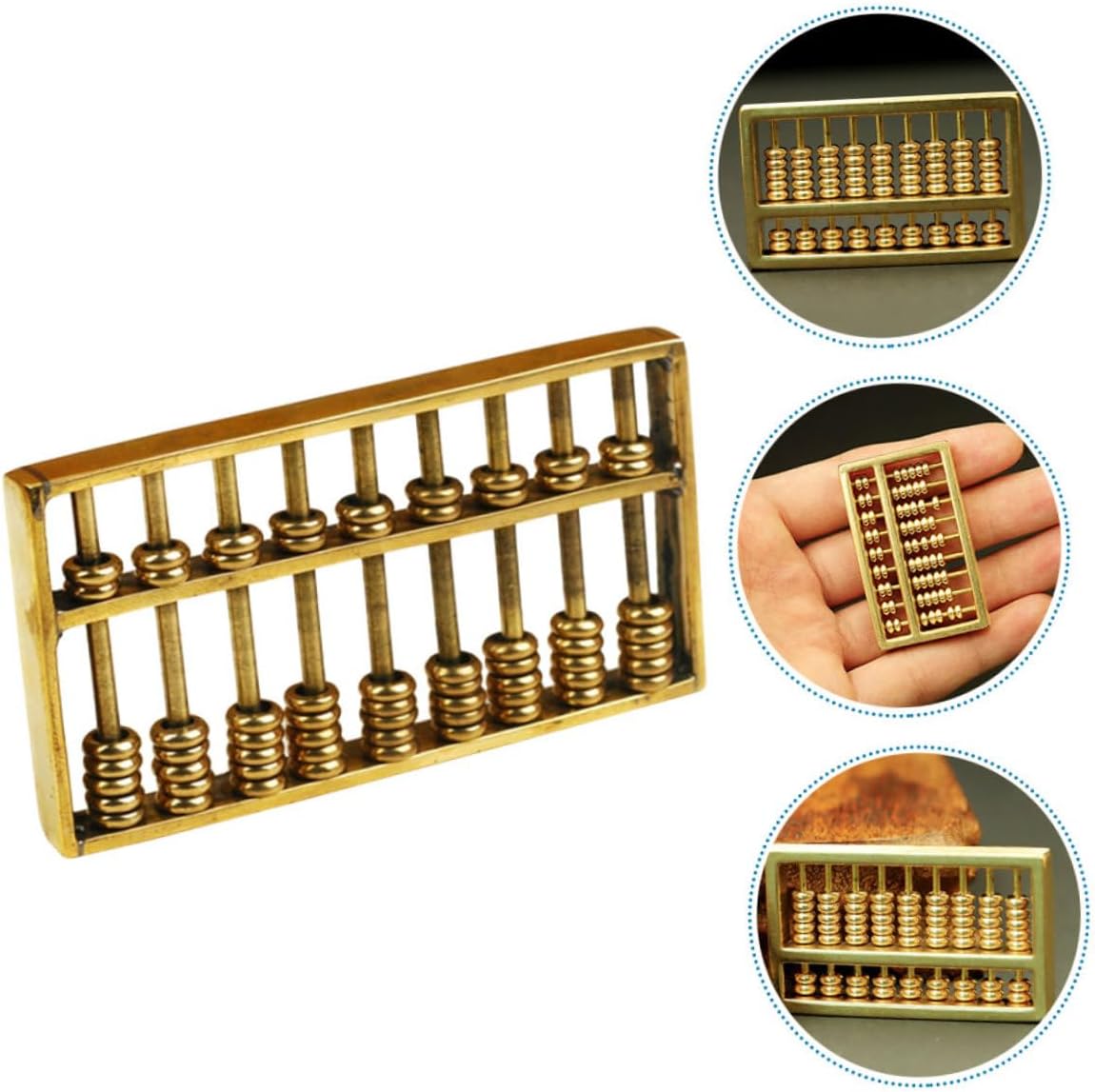 Abaco cinese per bambini - Delicato e compatto, questo mini abaco giocattolo in ottone può essere utilizzato anche come portachiavi per decorare la tua borsa e borsetta, ornamento per abaco in stile cinese Abaco in ottone retrò - Può essere utilizzato per decorare la tua casa, ufficio, hotel, ristorante, sala da tè, ecc., portando fortuna a te o ai tuoi ospiti e permettendoti di imparare l'abaco matematico. Abaco decorativo - la pregevole fattura mantiene i dettagli semplici e generosi nel design, linee morbide, scultura in ottone dell'abaco Mini abaco - finemente lavorato, questo abaco in ottone ha una superficie liscia, confortevole al tatto e delicata, piccole figurine di abaco Decorazione dell'abaco - il nostro modellismo di abaco ben fatto ha una dimensione piccola e compatta, che è salvaspazio, decorazione della statua dell'abaco da tavolo