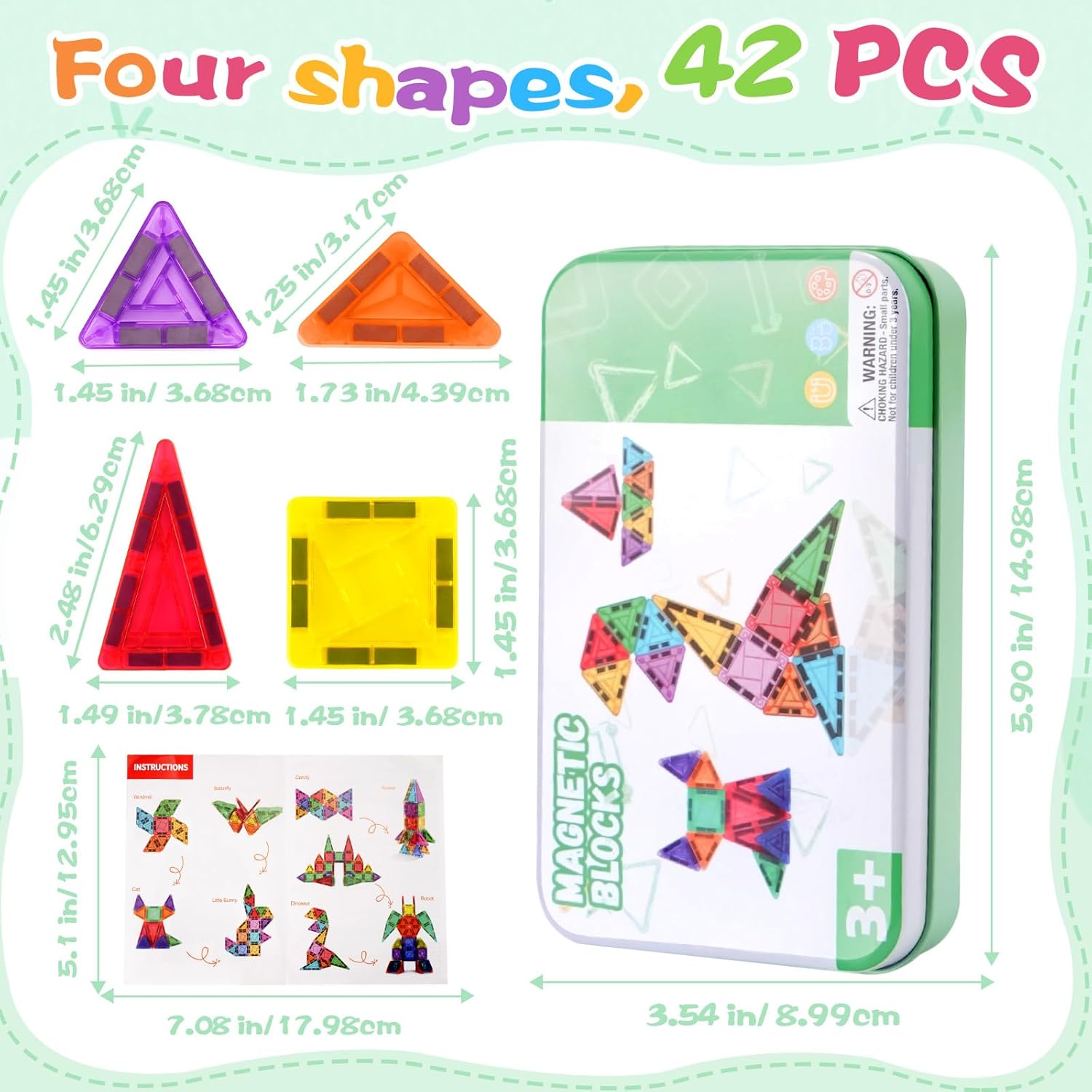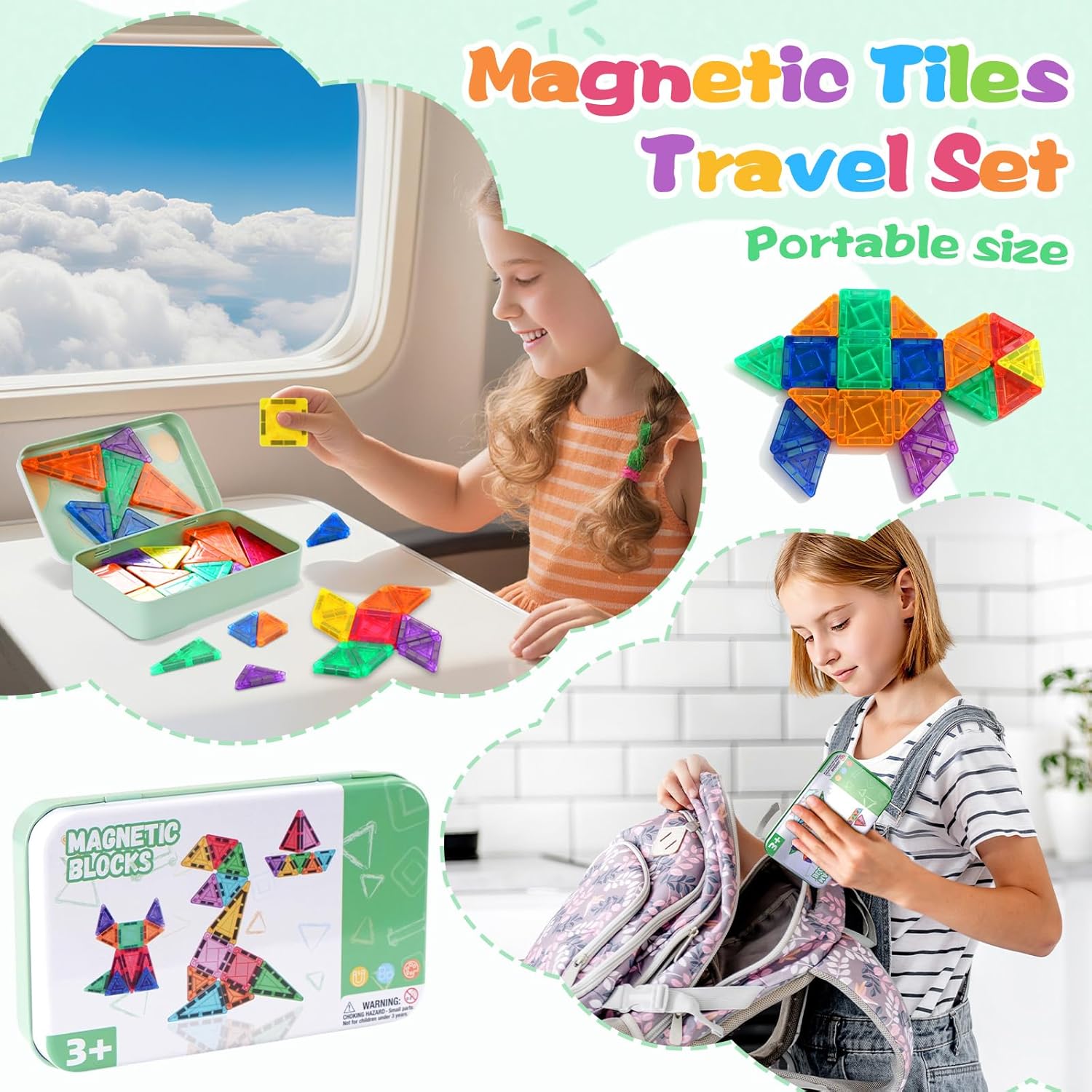 【Set Mini Ispirazione Creativa con Mattoncini Magnetici】Questo set di 42 mini mattoncini magnetici è una versione ridotta, progettata appositamente per i giovani costruttori. Con diverse forme compatte, i bambini possono creare piccole case, animaletti, mini torri e divertenti razzi 3D — liberando una grande immaginazione in un formato ridotto. Una splendida opzione di gioco da viaggio. 【Apprendimento STEM & Gioco Sensoriale】Progettati come giochi magnetici educativi, questi pezzi rafforzano la consapevolezza spaziale, le capacità di problem-solving, la coordinazione mano-occhio e l’amore precoce per le materie STEM attraverso la costruzione pratica. Perfetti anche come giochi da viaggio. 【Creati per le piccole mani, costruiti per durare】Con bordi lisci e arrotondati e magneti interni potenti, questi blocchi magnetici offrono sicurezza e solidità per un gioco creativo senza fine. Perfetti per bambini da 3 a 8 anni. 【Set di mattoncini magnetici portatile da viaggio】9,5 cm × 15,2 cm – leggero e facile da riporre. La scatola di metallo inclusa funge sia da contenitore sicuro che da piattaforma di costruzione. Perfetto per viaggi, classi prescolari, attività indoor o gite in famiglia. 【Ottimo regalo di giochi magnetici per bambini】Un’idea regalo pensata per bambini e bambine dai 3 anni in su. Questi giochi magnetici versatili ispirano immaginazione, creatività e condivisione. Ideali per compleanni, festività o come gioco quotidiano.