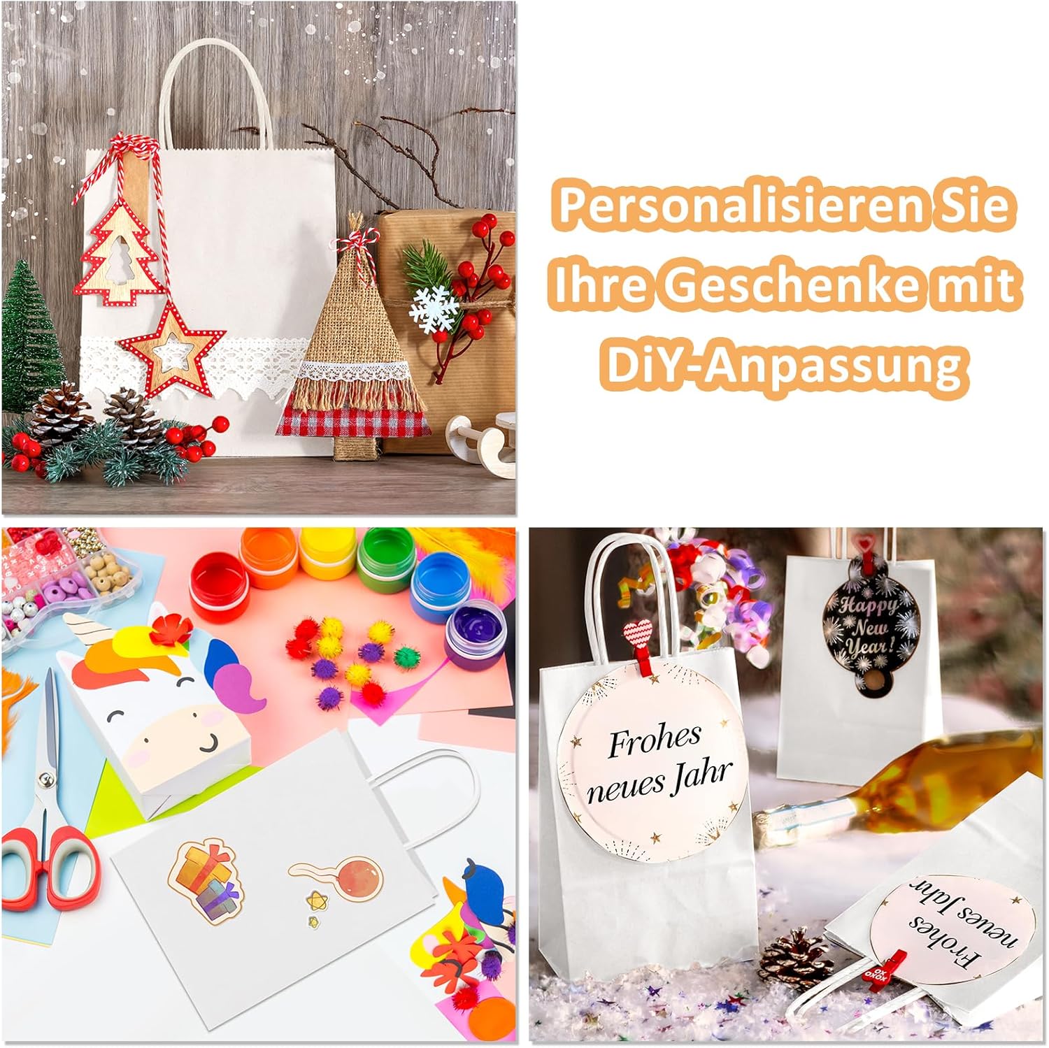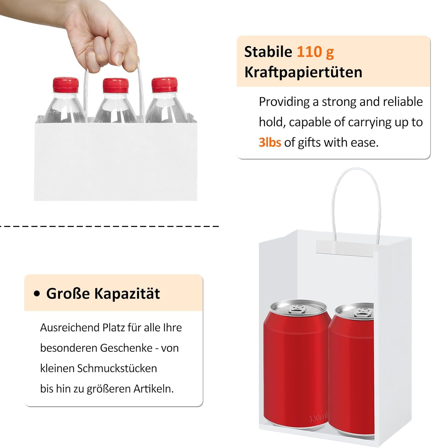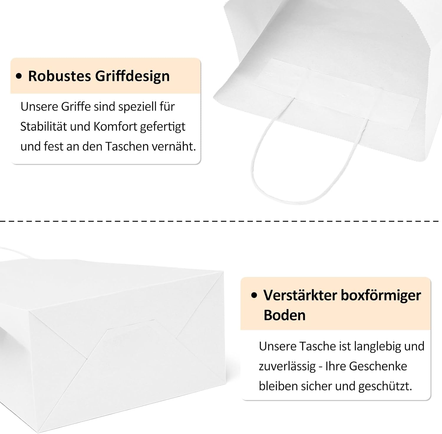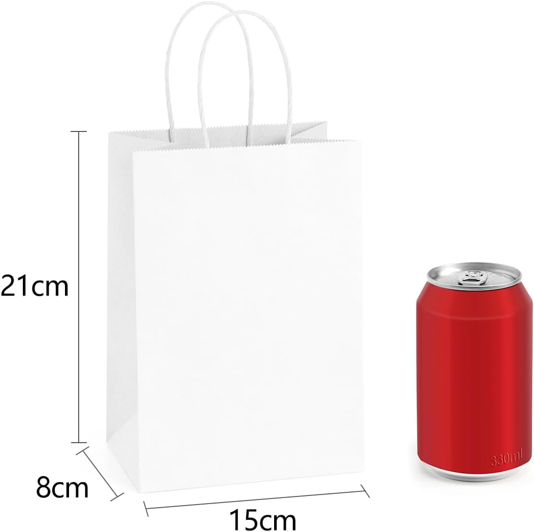 BORSA REGALO ECOLOGICA: le buste regalo in carta kraft Eupako sono realizzate con carta riciclata e soddisfano gli standard FSC. Rispetto ai sacchetti di plastica, i piccoli sacchetti regalo bianchi offrono una qualità superiore e un aspetto più attraente. Inizia una vita verde: i sacchetti di carta Eupako sono la tua prima scelta. Robusta carta Kraft da 110 G: i nostri sacchetti regalo in carta bianca offrono una qualità eccellente a un prezzo interessante. Sono saldamente incollati, inodori e possono sopportare facilmente 4 libbre. La robusta struttura della base e le maniglie in carta di facile presa forniscono ulteriore stabilità e facilità d'uso. Scatena la tua creatività: questi eleganti sacchetti regalo in carta kraft bianca offrono una superficie semplice e non stampata, perfetta per progettare e decorare tutte le festività e le occasioni. Che si tratti di regali personali o di materiale pubblicitario per la vostra azienda: personalizzabili individualmente con le vostre decorazioni o la stampa del logo. Sacchetti regalo versatili da 15x8x21 cm: questi sacchetti di carta kraft bianca sono ideali per confezioni regalo, borse della spesa, sacchetti per regali e sacchetti per feste. Sono ideali anche come buste per la vendita di prodotti al dettaglio in occasione di fiere dell'artigianato, festival d'arte e soprattutto durante le vacanze. Acquista senza preoccupazioni: non vogliamo mai deludere i nostri stimati clienti. Se non sei soddisfatto dei nostri sacchetti regalo, inviaci semplicemente un'e-mail: ce ne occuperemo immediatamente e risolveremo le tue preoccupazioni il più rapidamente possibile.
